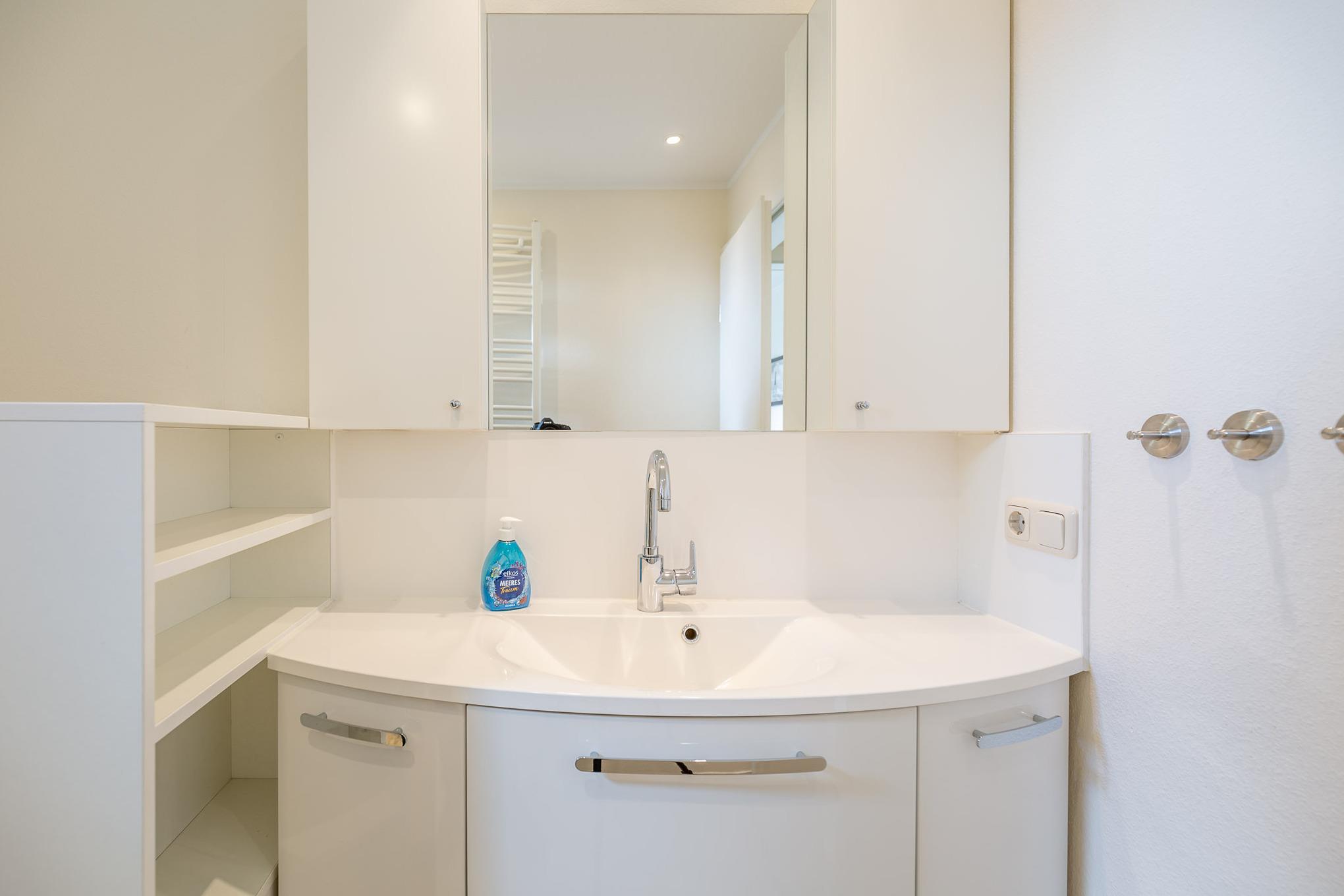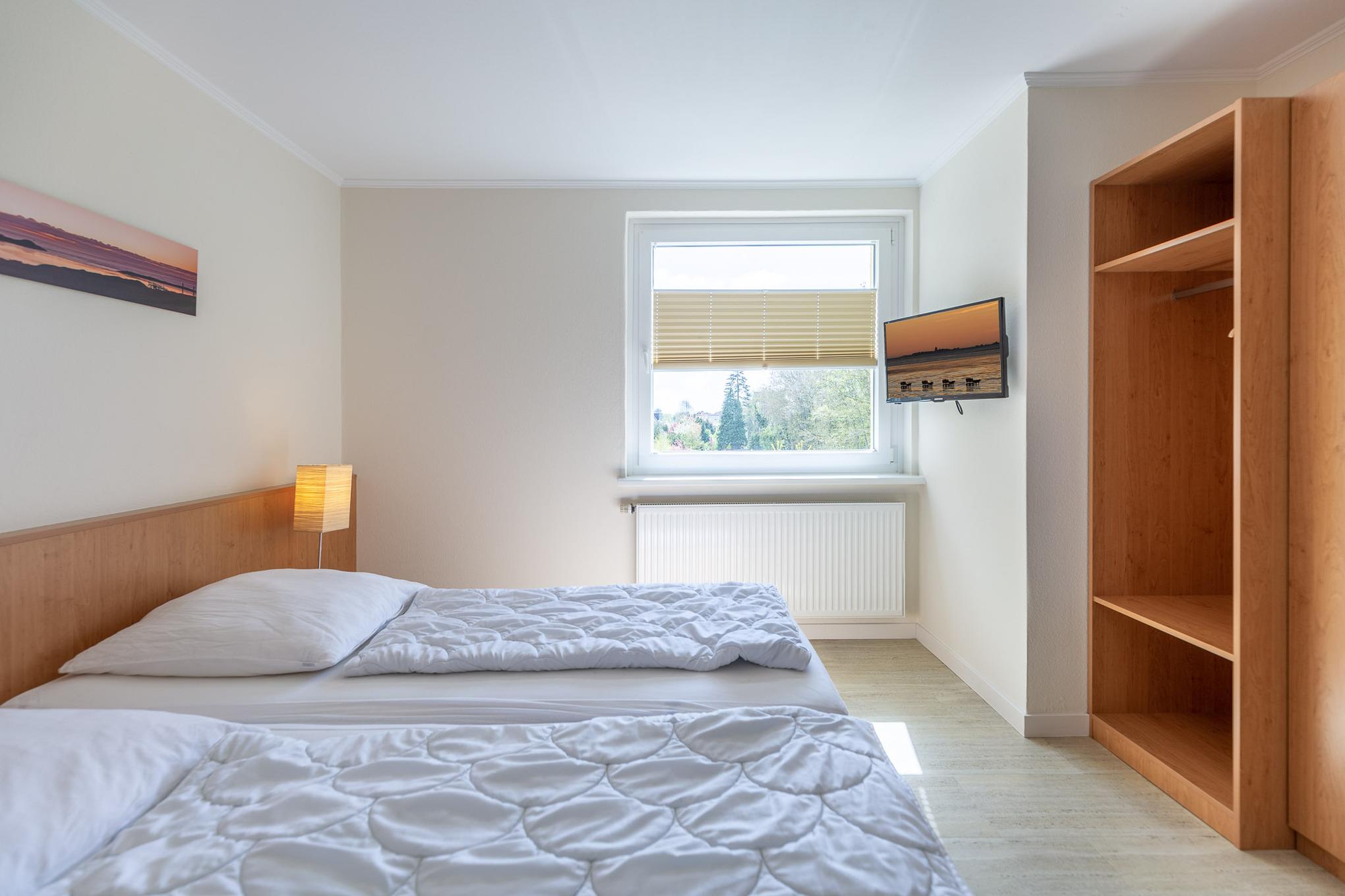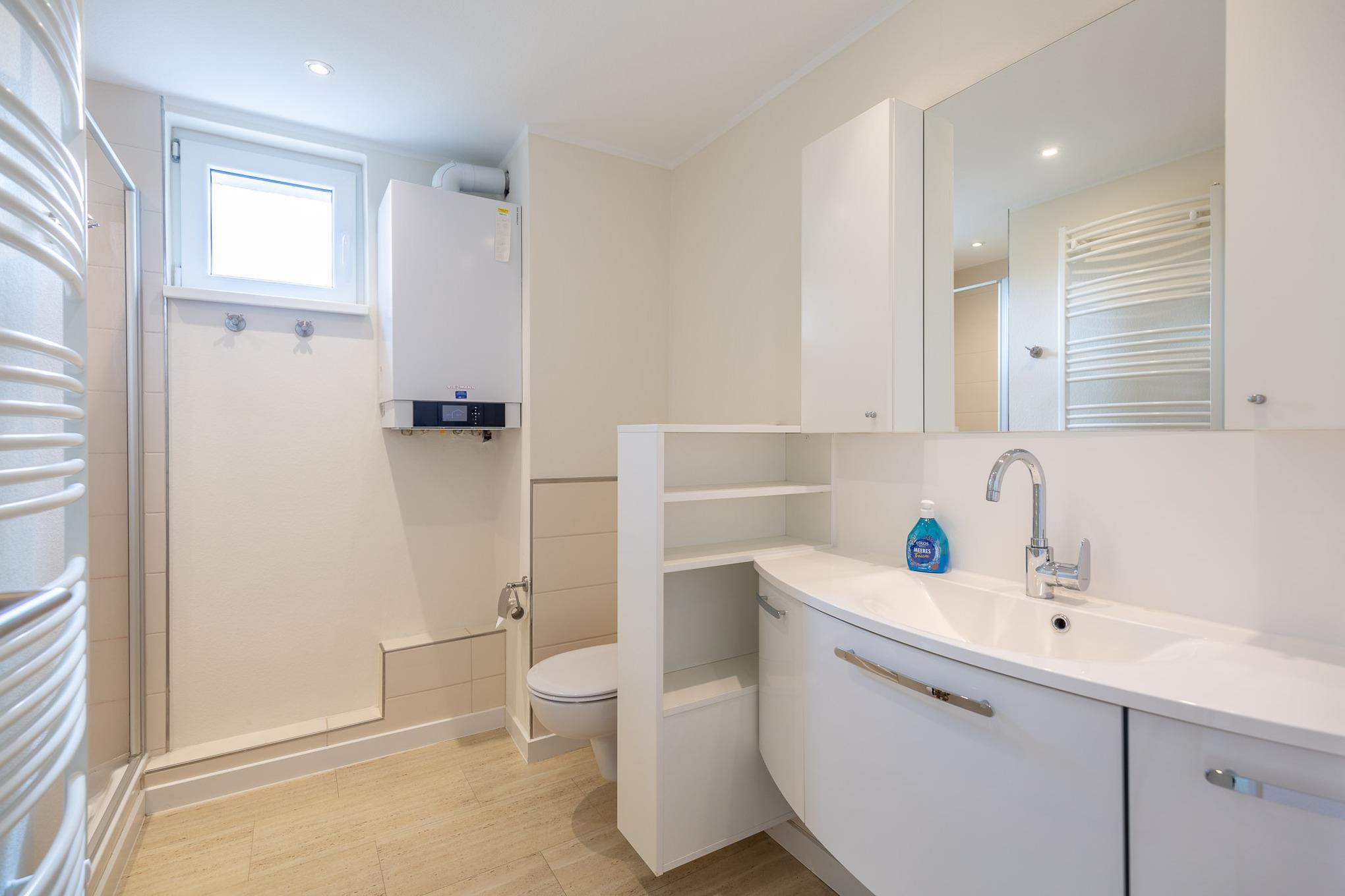 In den separaten Schlafzimmern sorgen ein großes Boxspringbett (2x100x210) und ein komfortables Kingsizebett (2x90x200) für einen erholsamen Schlaf. Darüber hinaus gehört ein modernes Bad mit flachem Duscheinstieg zum Standard dieser Ferienwohnung. Auch vom Balkon genießen Sie den schönen Meerblick. Zur Wohnung gehört ein KFZ-Stellplatz.