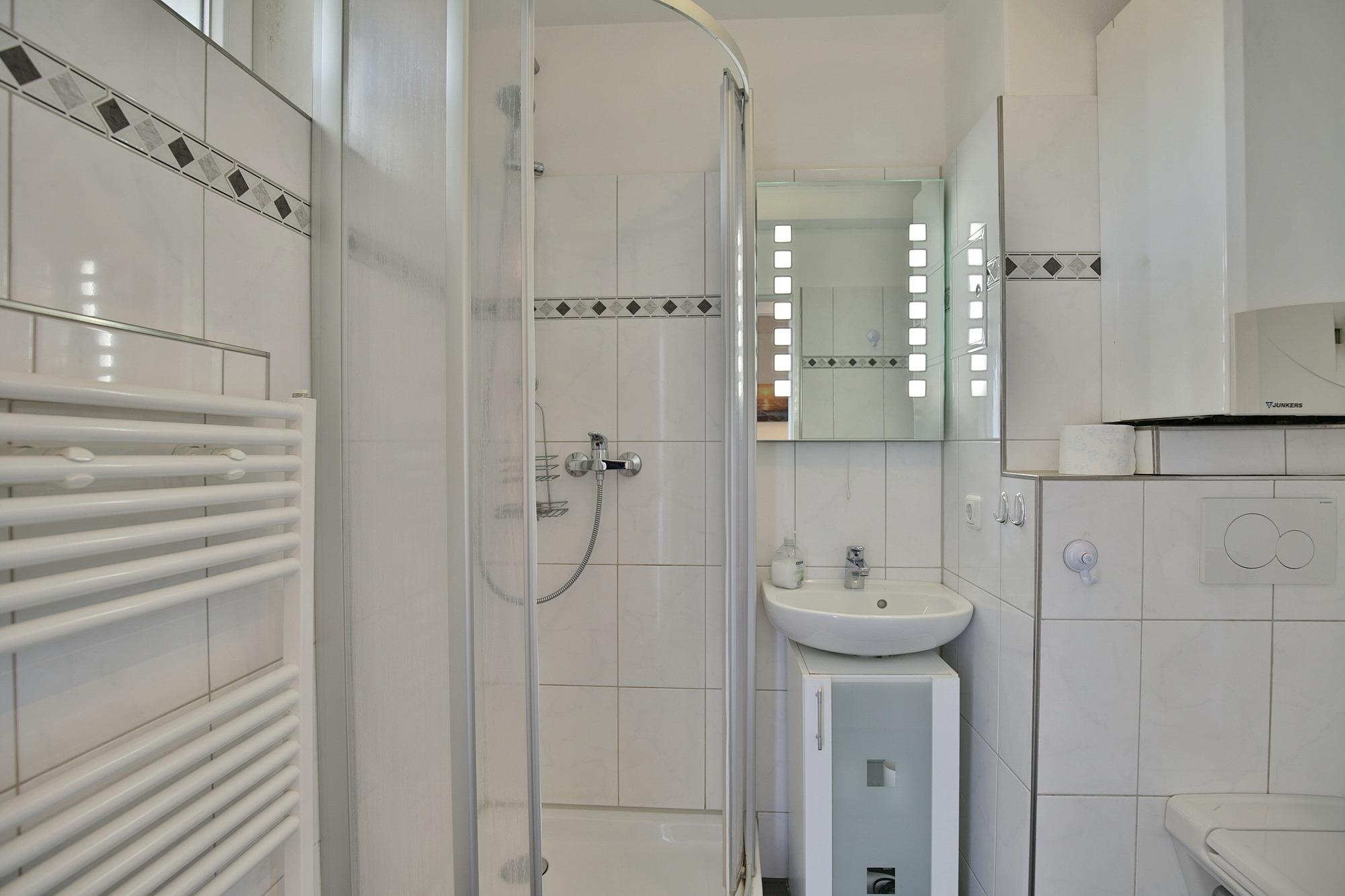 Das moderne Bad mit Dusche und WC verfügt über ein Fenster zum Belüften. Der möblierten Balkon mit Bangkirai Holzboden bietet ein wohnliches Ambiente und einen fantastischen Meerblick. Zu Ferienwohnung 308 gehört eine Garage. Das Haus Nautic liegt in der schönsten Lage Cuxhavens. Fuß- und Radwege beginnen direkt vor der Haustür. Sollte das Wetter einmal nicht mitspielen, so können Sie das hauseigene Schwimmbad sowie die Sauna kostenlos nutzen.