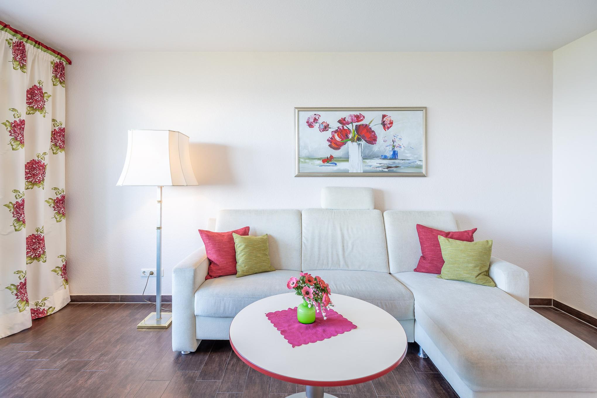 Schiffchen anstatt Schäfchen zählen. Morgens wachen Sie auf und sehen das Meer. Dafür müssen Sie noch nicht einmal aus Ihrem Bett aufstehen. Die 2-Zimmer Ferienwohnung bietet im separaten Schlafzimmer ein Doppelbett (2x90x200) mit rückenschonender Komfortliegehöhe, hochwertigen Matratzen und spektakulärem Meerblick. Genießen Sie schon beim Aufstehen den atemberaubenden Meerblick. Alle Fenster sind mit elektrischen Außenjalousien ausgestattet, so dass Sie nicht von der Morgensonne geweckt werden.