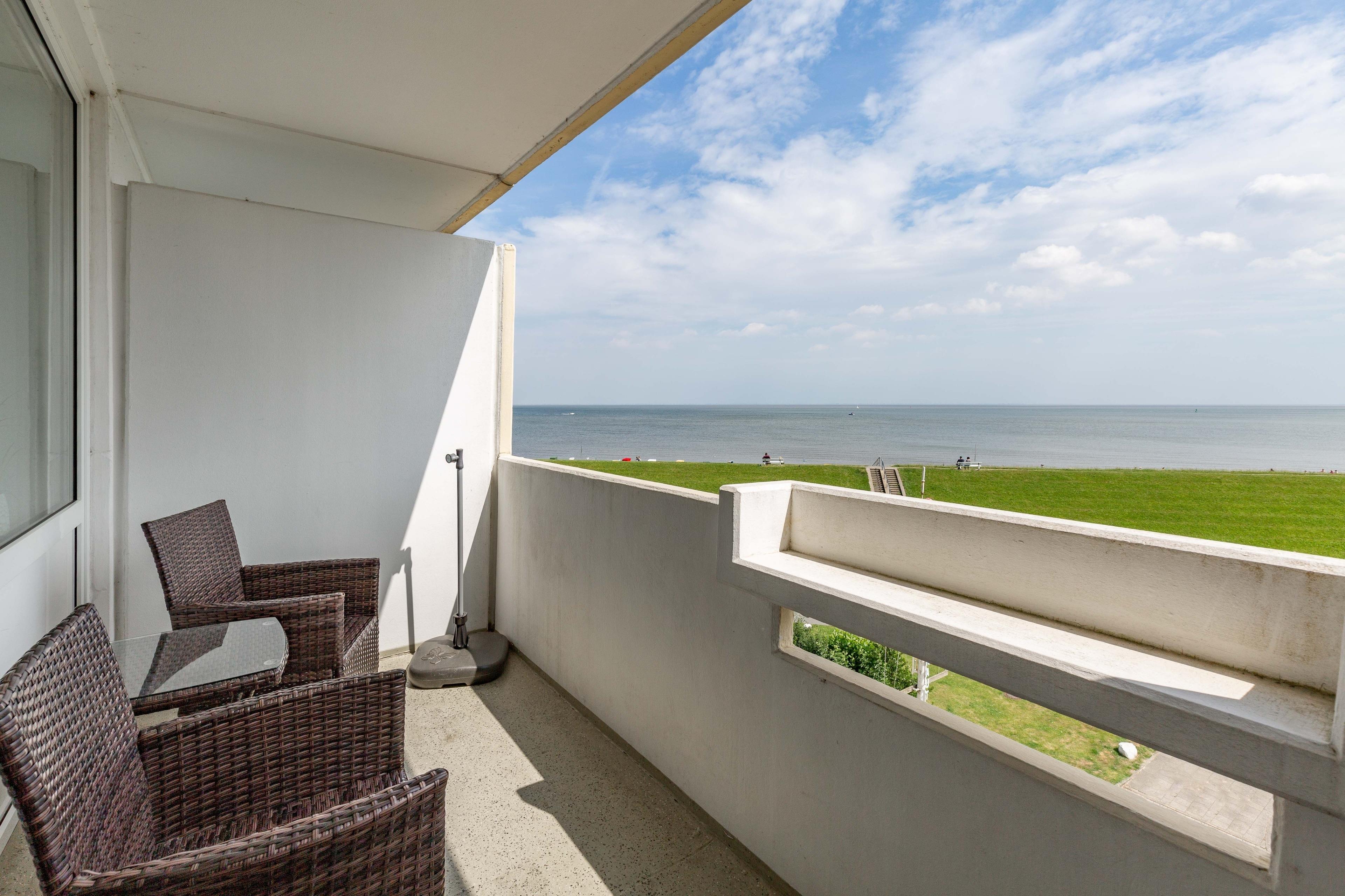 Nach einer erlebnisreichen Fahrradtour, können Sie den Abend entspannt mit einem Glas Wein ausklingen lassen und den traumhaften Meerblick aus Ferienwohnung Nautic 410 genießen.