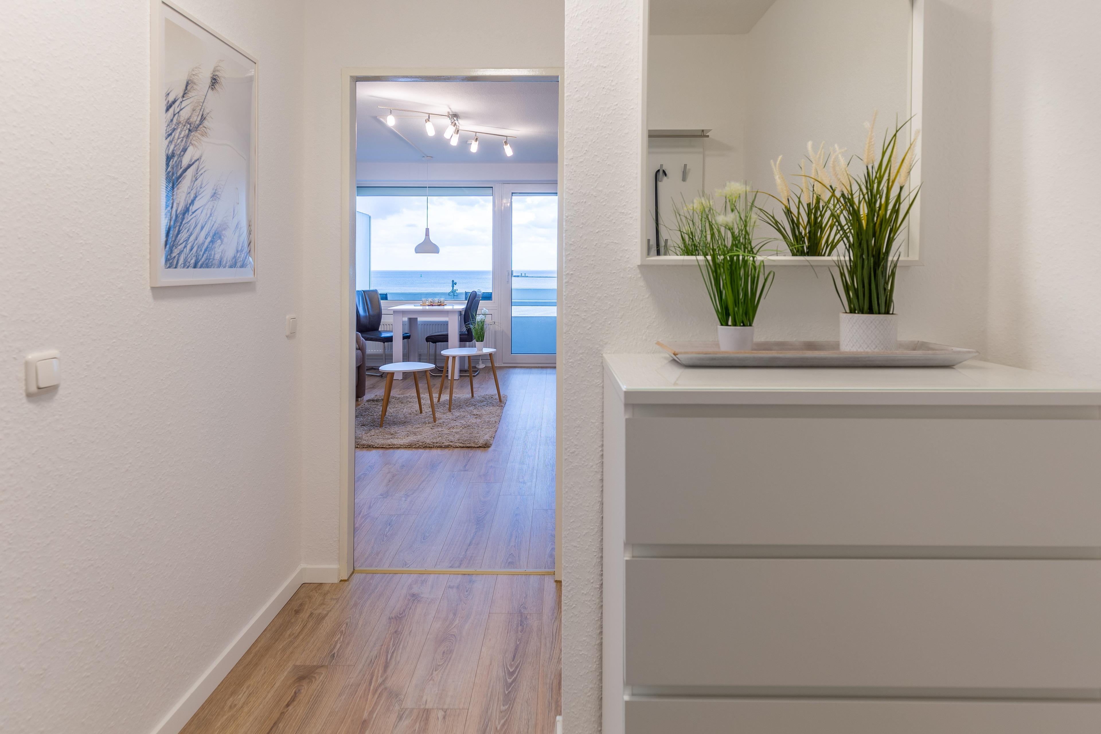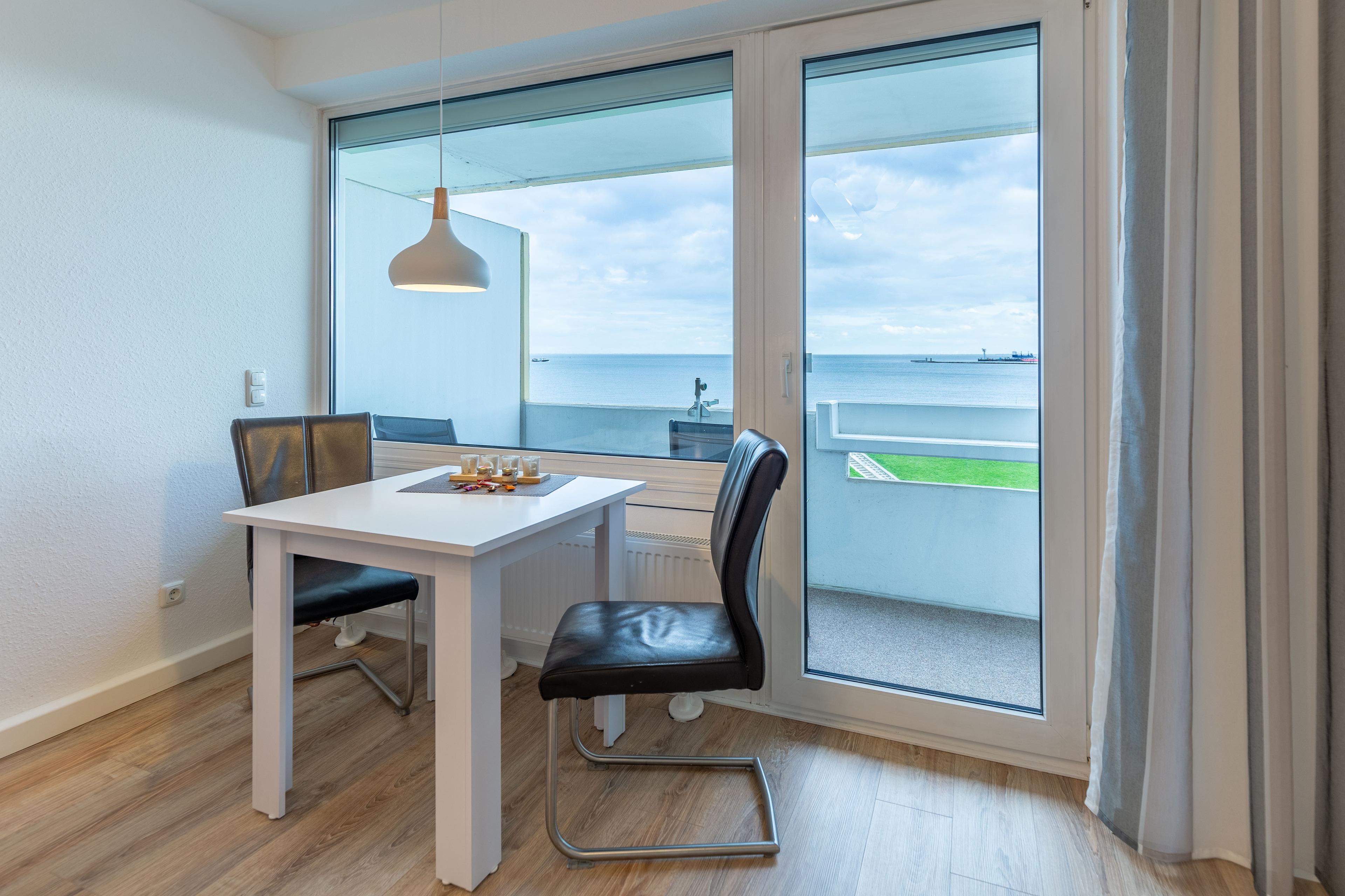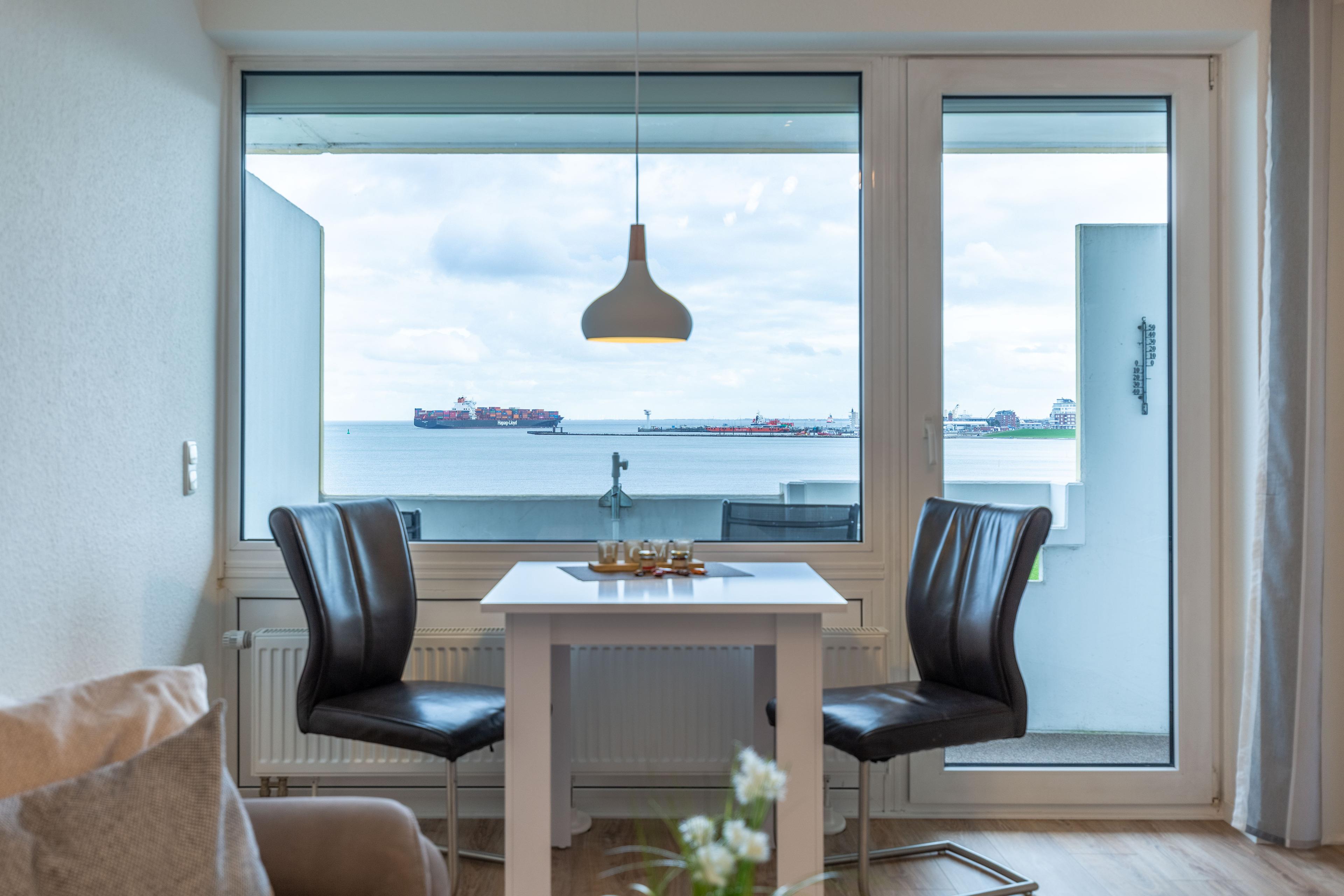 Ferienwohnung Nautic 516 bietet Ihnen schon beim allmorgendlichen Kaffee einen traumhaften Ausblick auf den Weltschifffahrtsweg, die Badebucht und den Hafen. Auch vom Balkon genießen Sie den traumhaften Meerblick.