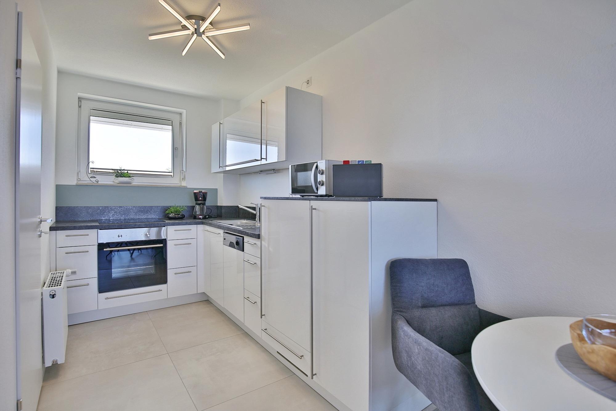 Genießen Sie die schönsten Tage des Jahres in unserer 59 m² Ferienwohnung. Optimal für 2 bis 3 Personen. Nach einem erlebnisreichen Tag können Sie den Abend auf dem bequemen Sofa ausklingen lassen. Der Flachbildfernseher sorgt dafür, dass Sie auch im Urlaub nicht auf Ihre Lieblingsserie verzichten müssen. Die moderne und offen gehaltene Küche ist mit einem Backofen und einem Geschirrspüler sowie einem Kühlschrank mit Gefrierfach ausgestattet.