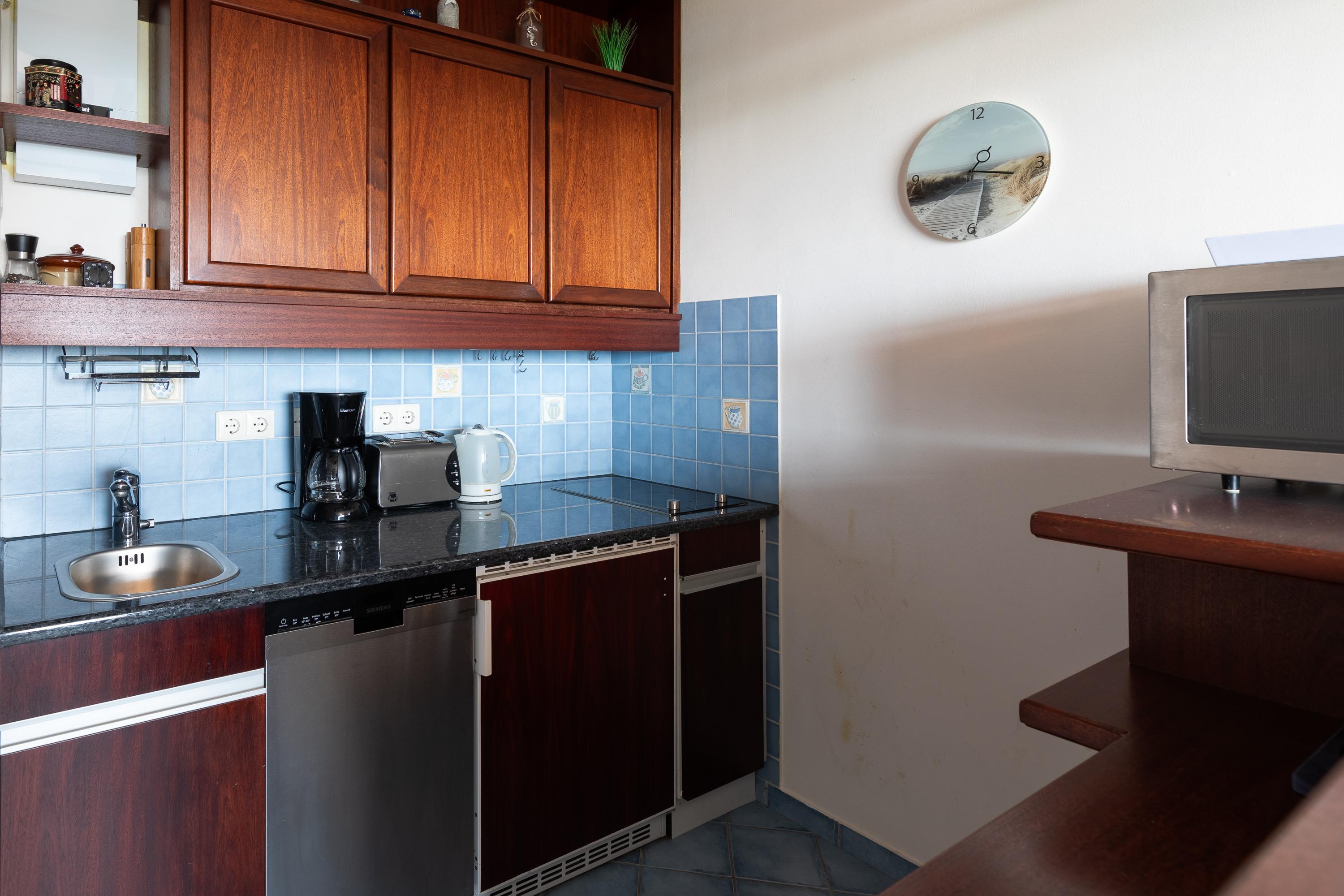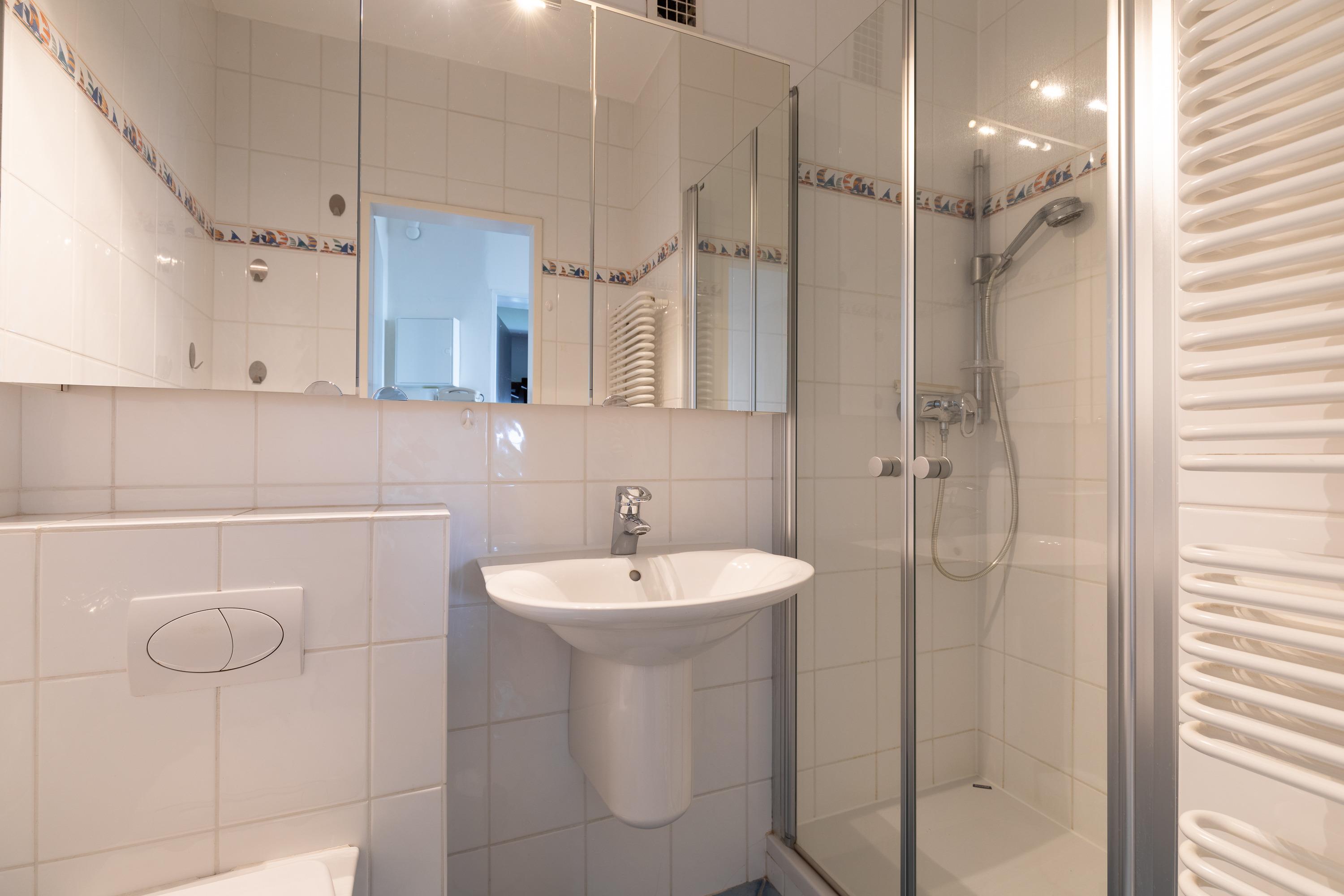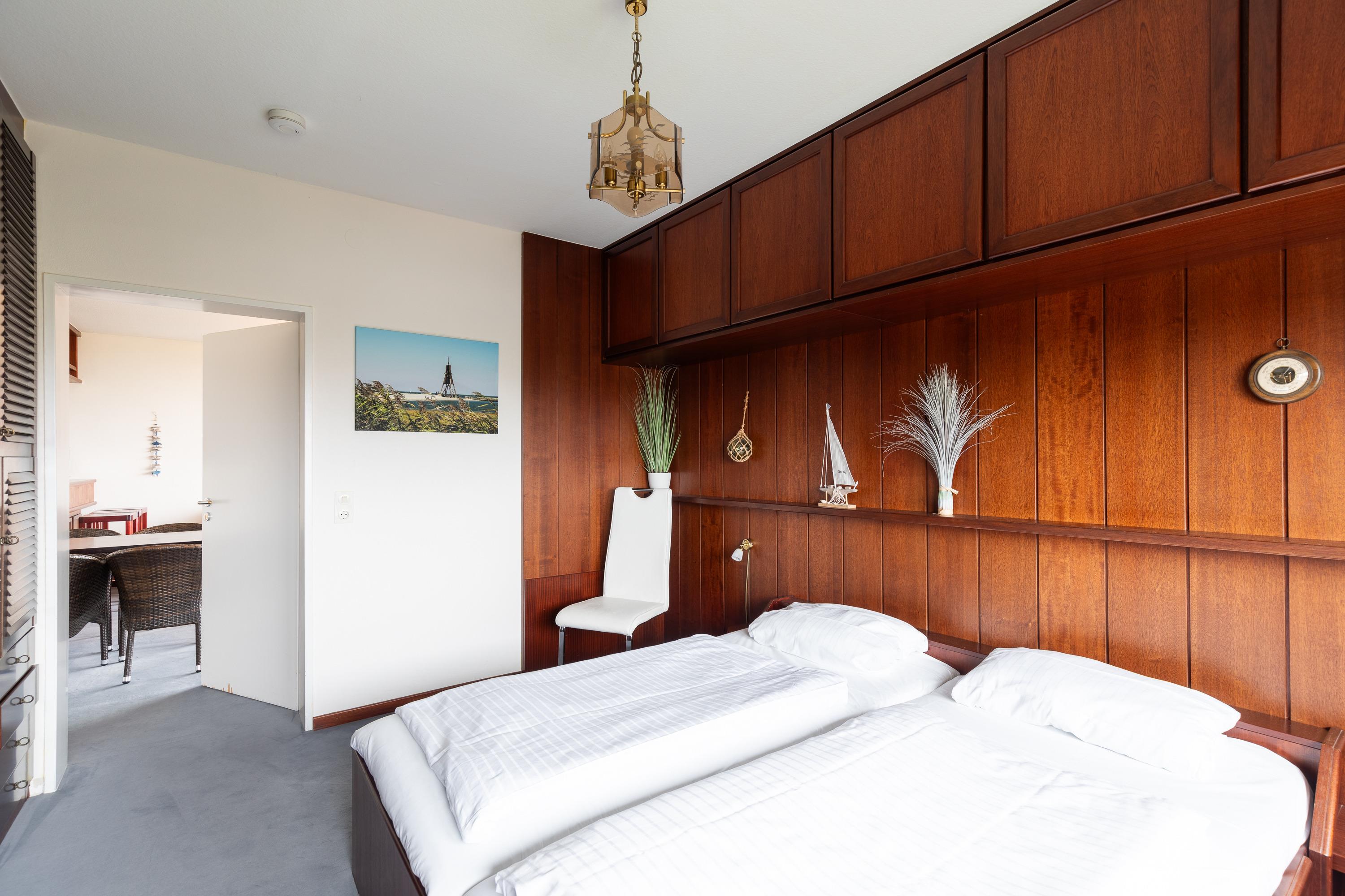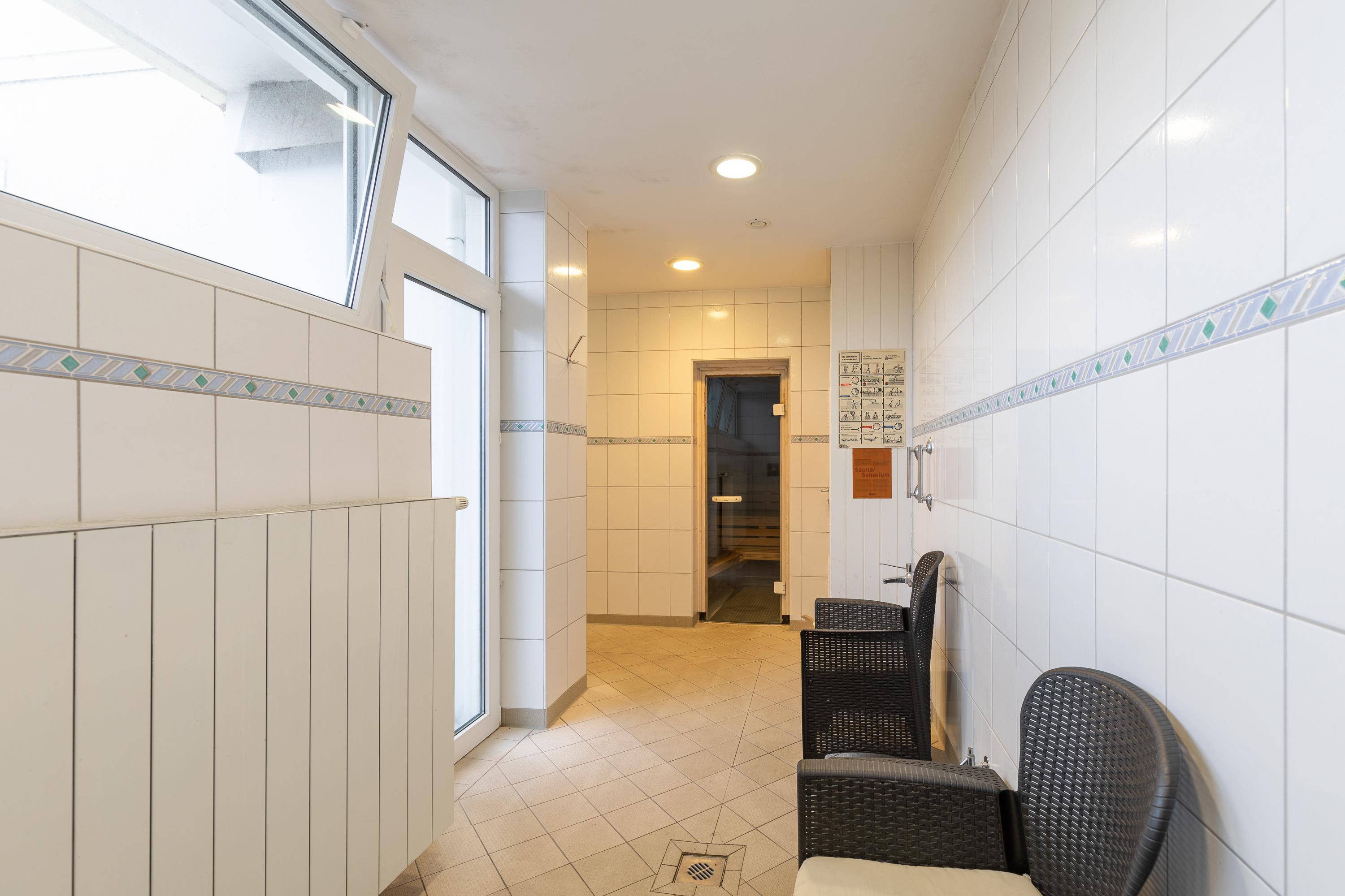 Die 3 Raum Wohnung mit einer Größe von ca. 55 m² Wohnfläche ist komplett bis zu 4 Personen ausgestattet. 1 Schlafzimmer mit Doppelbett und Kleiderschrank, 1 Schlafzimmer mit einem Etagenbett, Wohnzimmer mit Küchenzeile (Cerankochfeld - 2 Kochfelder, Mikrowelle, Geschirrspüler, Kühlschrank mit Gefrierfach), gemütlichem Sofa, Essplatz, 1 TV, Zugang zum Balkon (west, mit direkter Seesicht ), ein innenliegendes Bad mit Dusche und WC, Schwimmbad, Sauna, Tischtennisplatte und einige Fitnessgeräte befinden sich im Haus, Fahrstuhl, PKW Garage direkt am Haus. Keine Haustiere erlaubt, Nichtraucher.