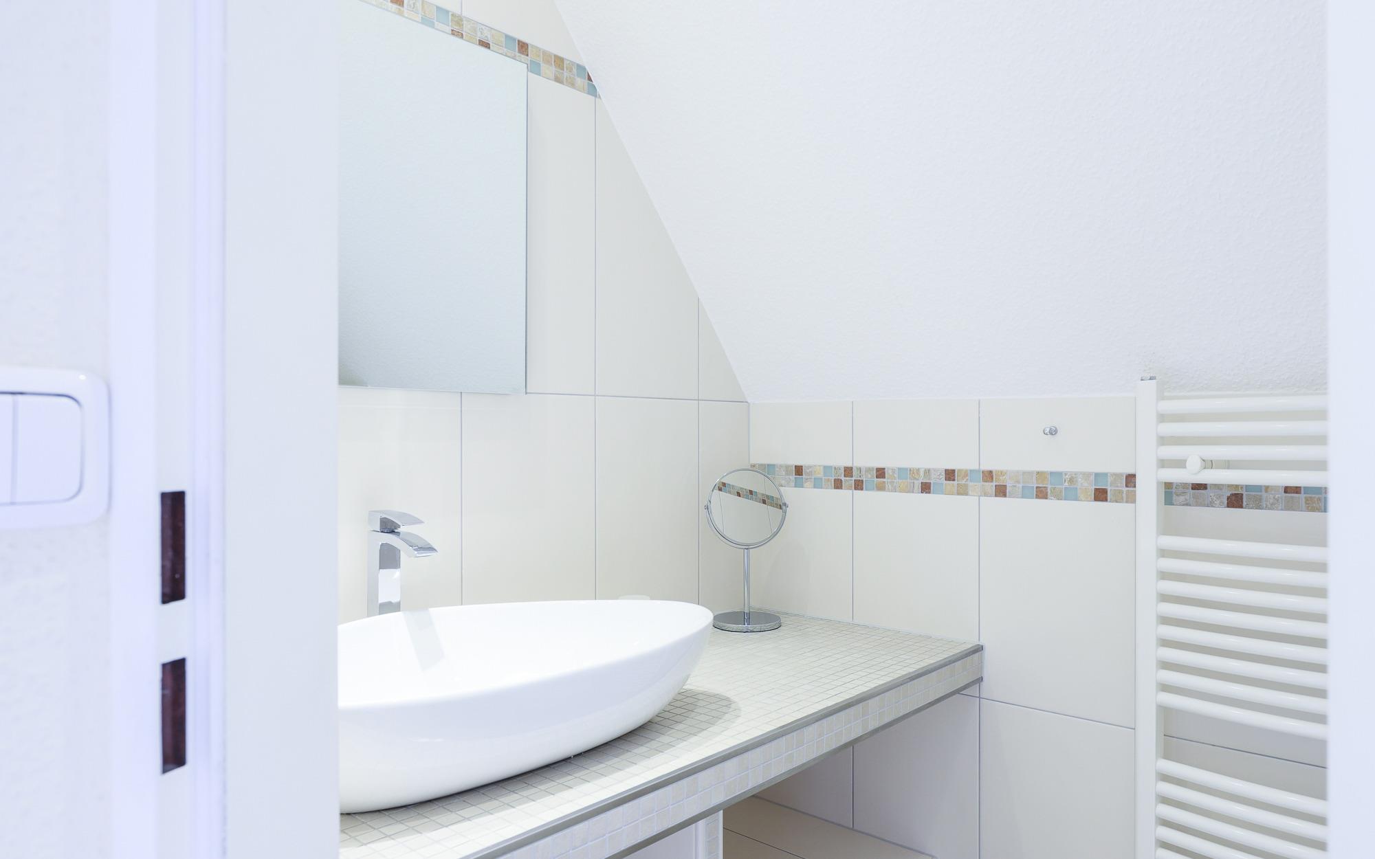Badezimmer: Duschbad mit WC, Doppelwaschbecken, Fußbodenheizung