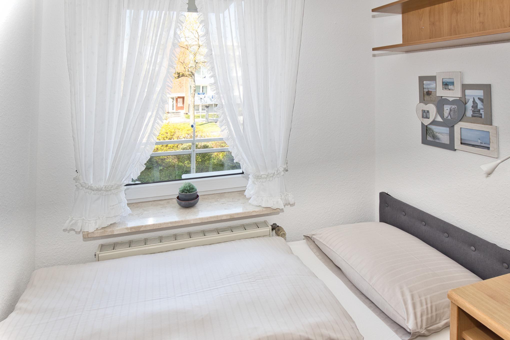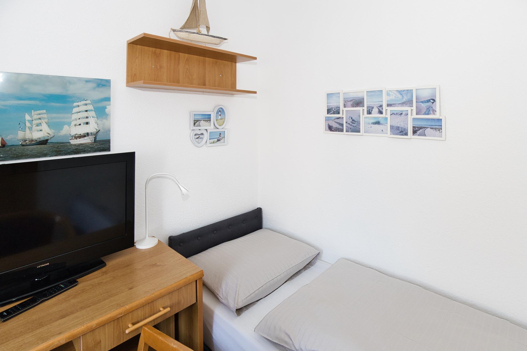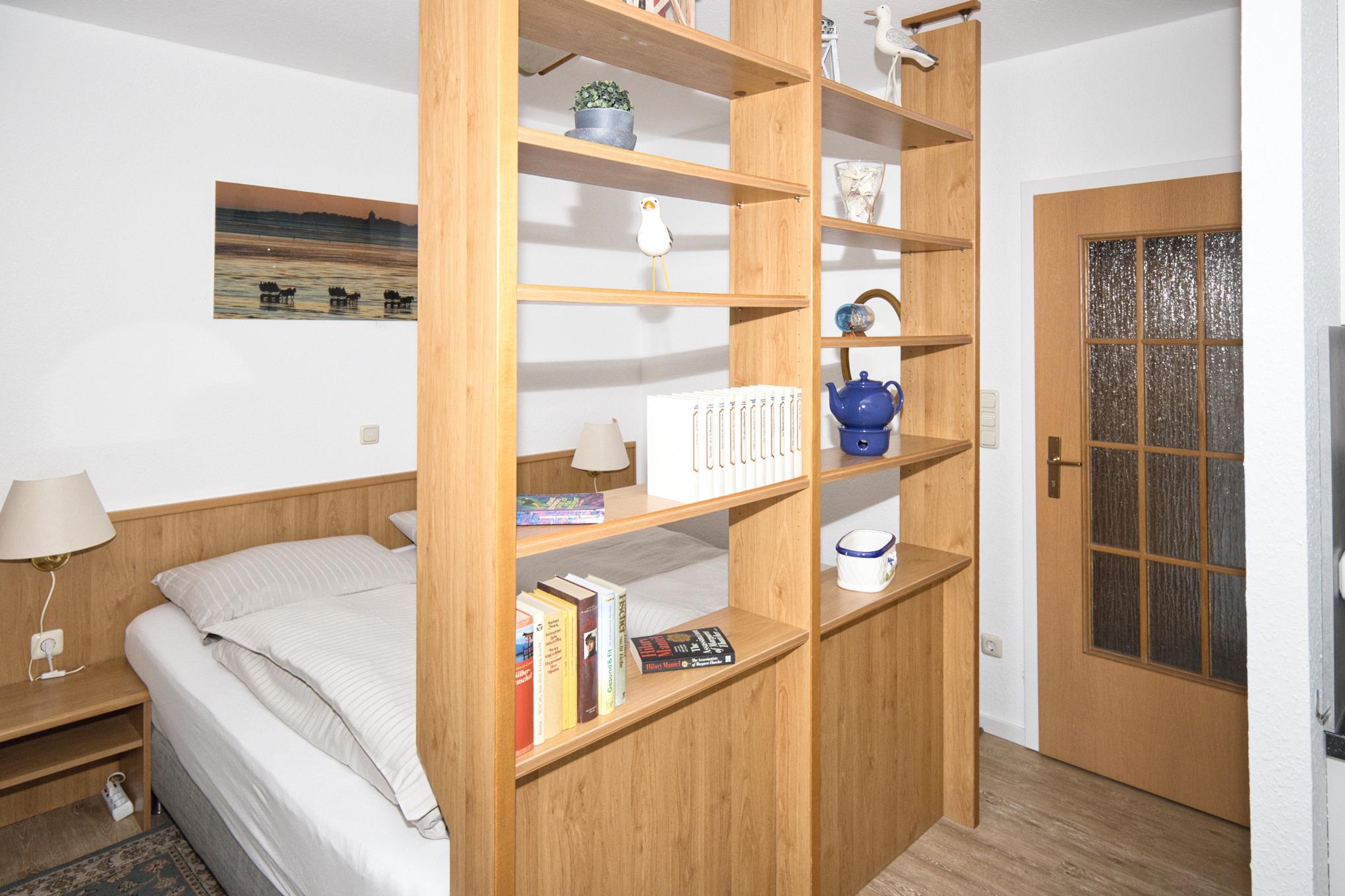 Die Wohnung verfügt über zwei voneinander getrennte Schlafbereiche. Im Wohnraum ist ein Doppelbett in einer Nische untergebracht. Zusätzlich gibt es ein separates Schlafzimmer mit zwei Einzelbetten.