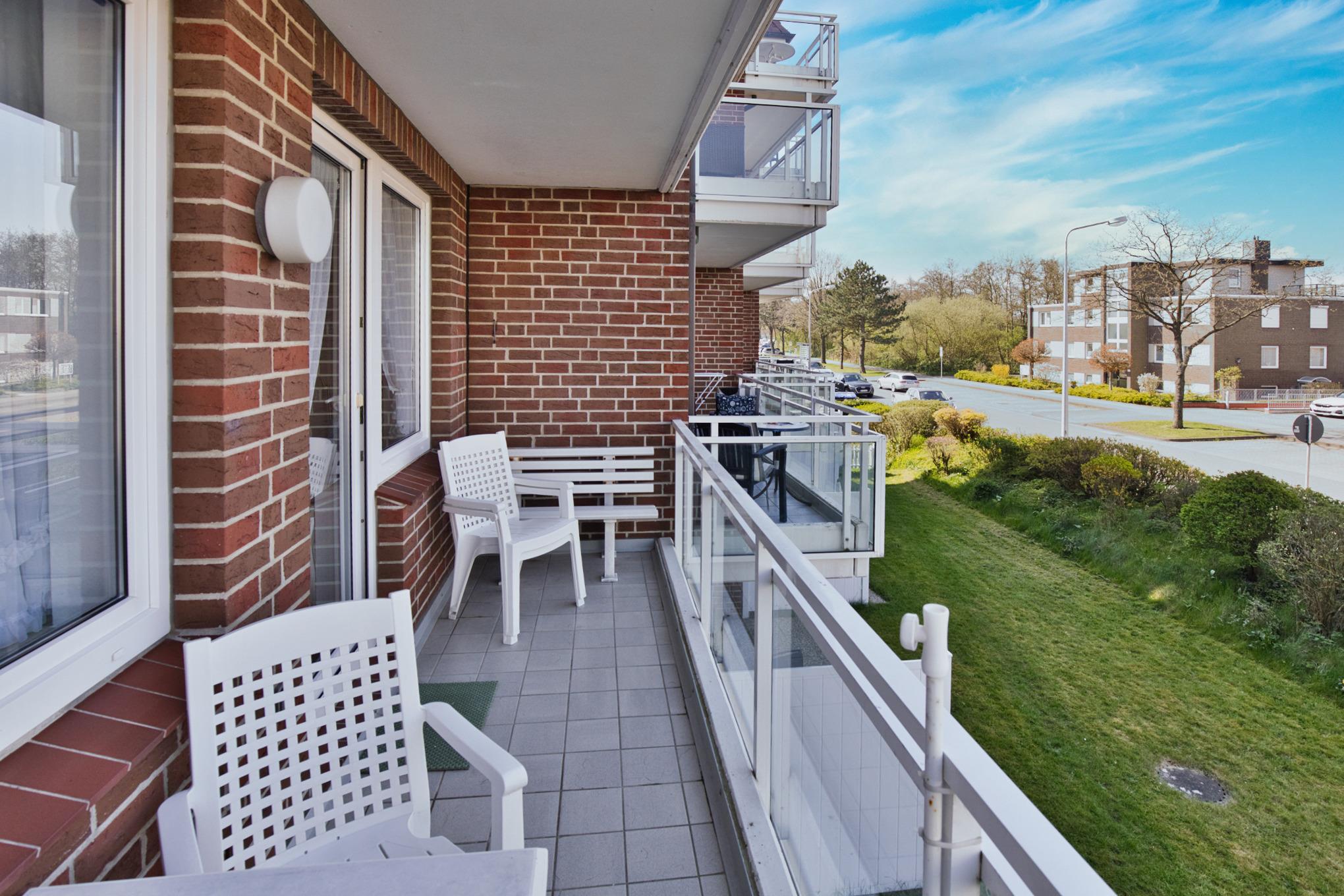 Der Westbalkon bietet nachmittags und abends Sonne und eine einfache Sitzmöglichkeit im Freien.