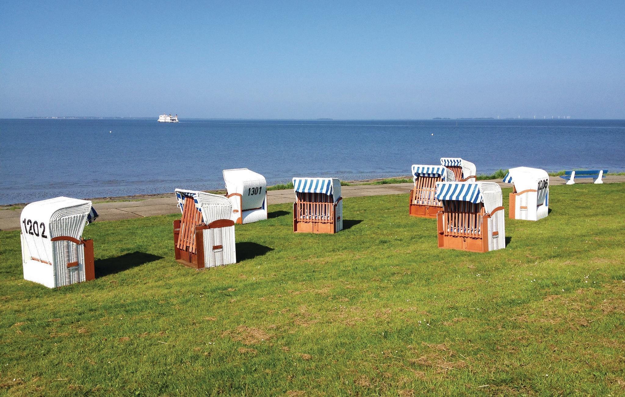Semesterhuset ligger bara 200 meter från Nordsjön och Dagebülls vintergröna strand, som är perfekt för simning. I Dagebülls centrum, i direkt anslutning till semesterhusen, hittar du små butiker, restauranger och en livsmedelsbutik. Färjorna till Nordsjööarna Amrum och Föhr avgår rakt mittemot.