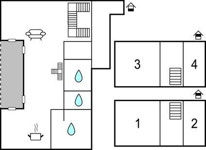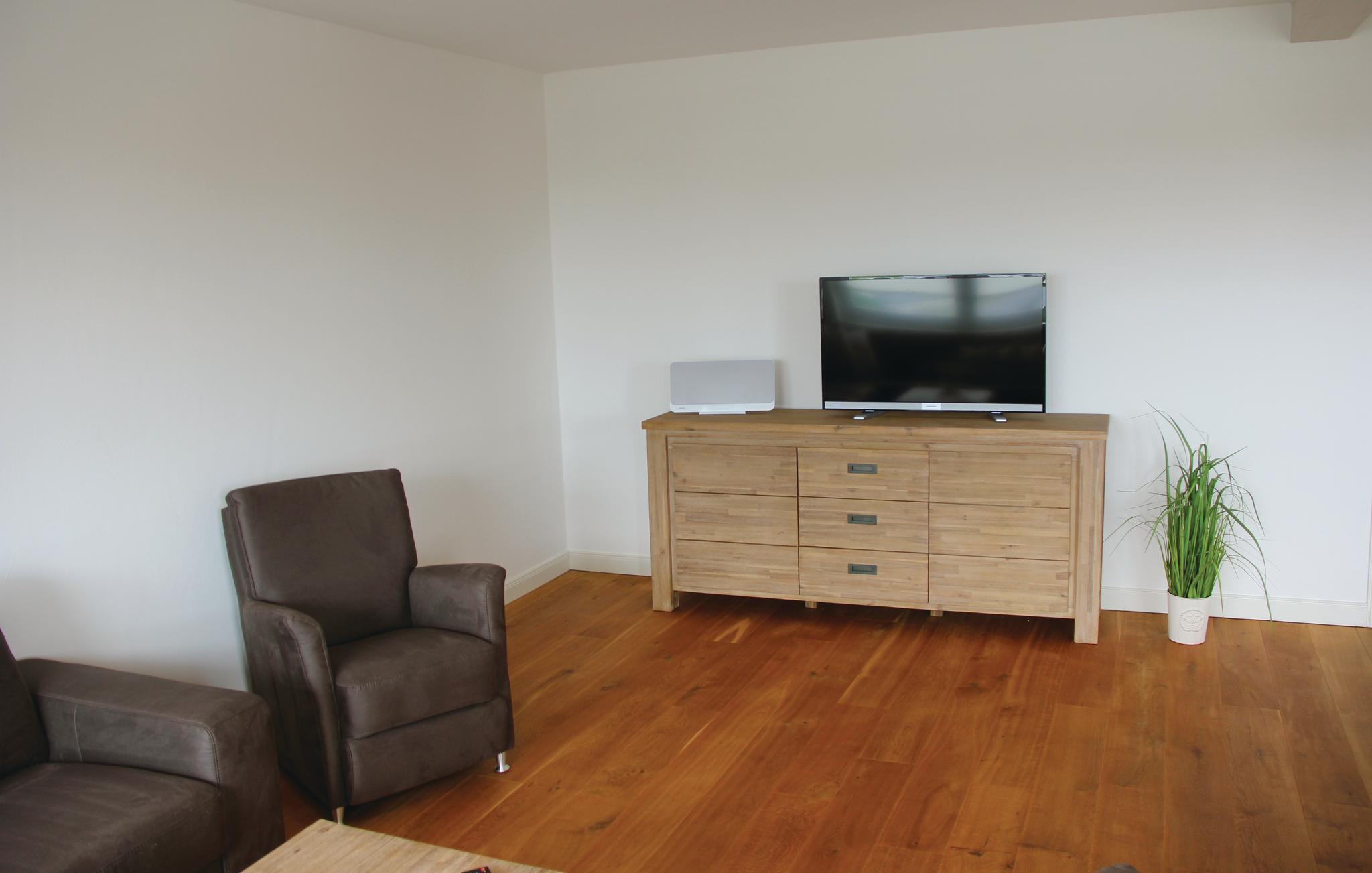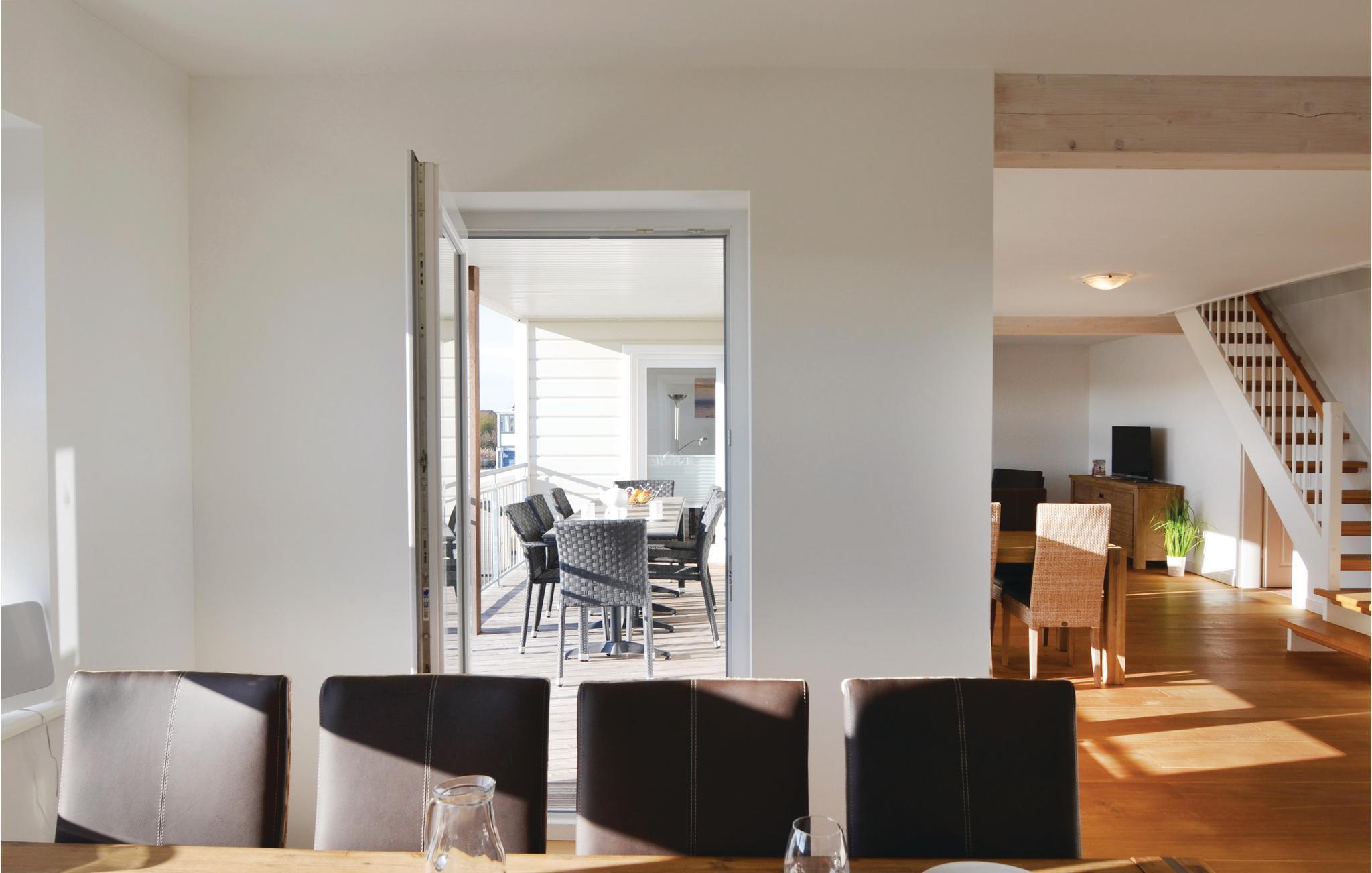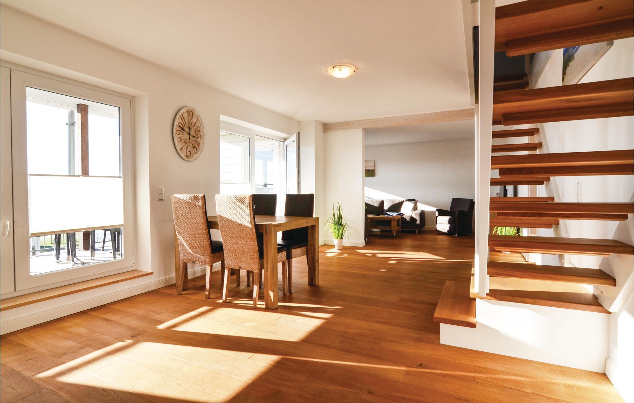 I vardagsrummet kan alla göra det bekvämt för sig i den högkvalitativa soffgruppen; ett stort matbord finns naturligtvis också tillgängligt. De fyra sovrummen ligger direkt under taket på 2:a våningen. Observera att sängarna står på det sluttande taket och att sitthöjden vid sänggaveln är ganska låg.