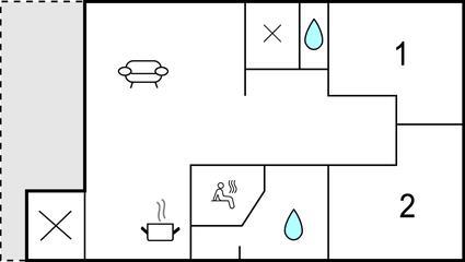 Badrum (nr. 1) - WC: Varmt och kallt vatten. Dusch och badkar