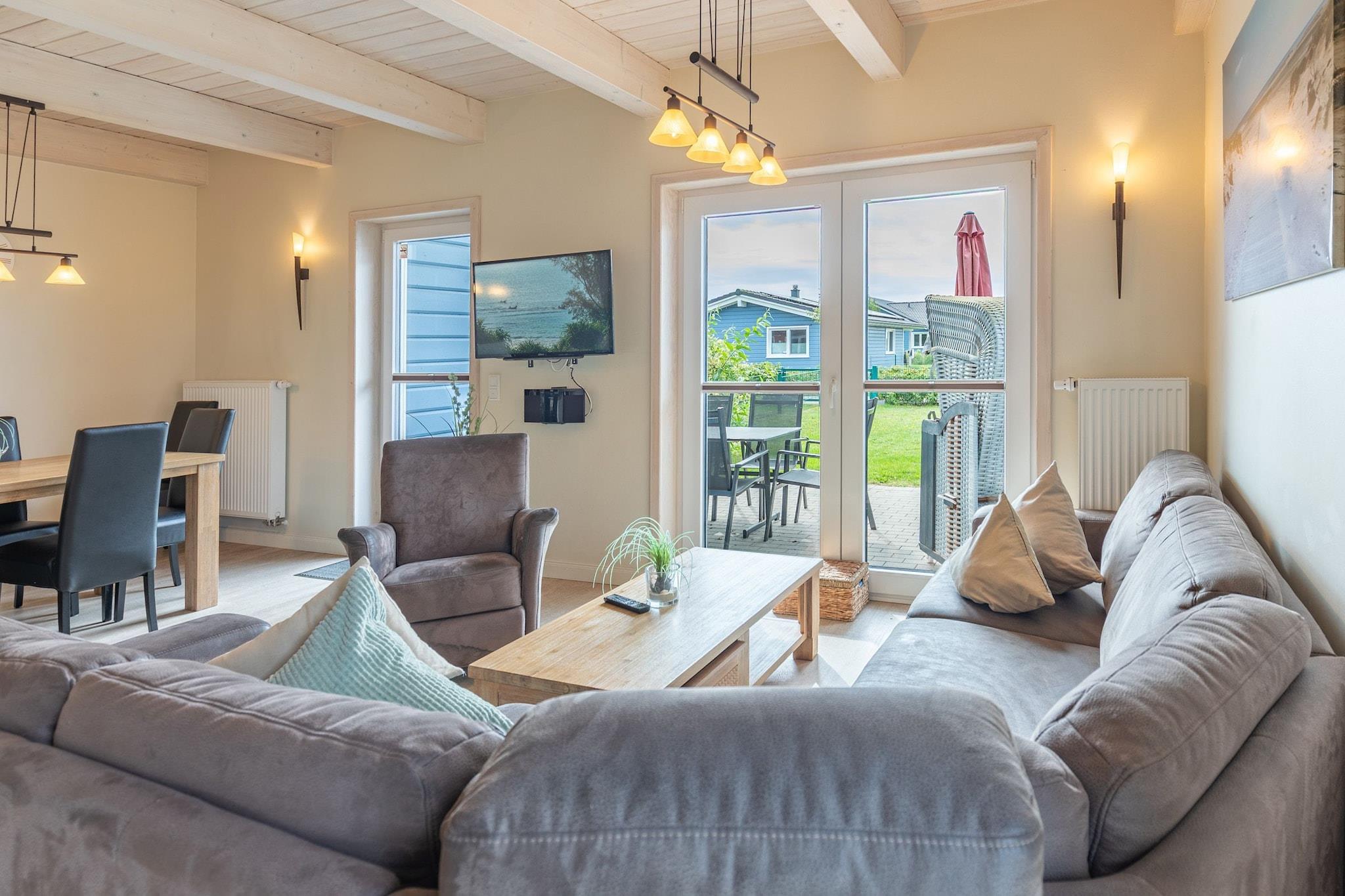 Upplev ren avkoppling i vårt eleganta skandinaviska radhus i Dagebüll vid Nordsjön – perfekt för upp till 4 personer – med tre bekväma sovrum, ett öppet vardagsrum med öppen spis för mysiga kvällar och en privat bastu för avkopplande wellness-stunder. De moderna möblerna kombinerar nordisk design med funktionalitet, stora fönster släpper in gott om ljus och erbjuder utsikt över det unika kustlandskapet, medan du kan trolla fram kulinariska läckerheter i det fullt utrustade köket och njuta av måltider tillsammans vid matbordet i slutet av dagen. Alldeles utanför dörren hittar du den historiska Dagebüll-fyren, ett slående landmärke med karaktär, och den närliggande hamnen inbjuder dig att titta på färjorna som avgår till öarna Föhr och Amrum, vilka lovar utflykter till UNESCO:s världsarv Vadehavet. Bara ett stenkast bort börjar vandringsleder längs diken och lermarker längs saltmarkerna till Hamburger Hallig, där orörd natur väntar dig. Det närliggande Multimar Wattforum, ett fascinerande informationscenter om det unika Vadehavets ekosystem, rekommenderas också starkt. Eller besök den charmiga badvallen i Dagebüll, perfekt för avkopplande timmar med havsutsikt; kulturälskare kommer att uppskatta Sankt Dionysius kyrka i staden, en historisk byggnad från 1700-talet; efter händelserika dagar erbjuder vallen, strandstugorna och de lokala restaurangerna utrymme för avkoppling – ditt semesterhus kombinerar komfort, stil och nordisk mysighet – en plats där du kan koppla av, njuta och ladda batterierna.