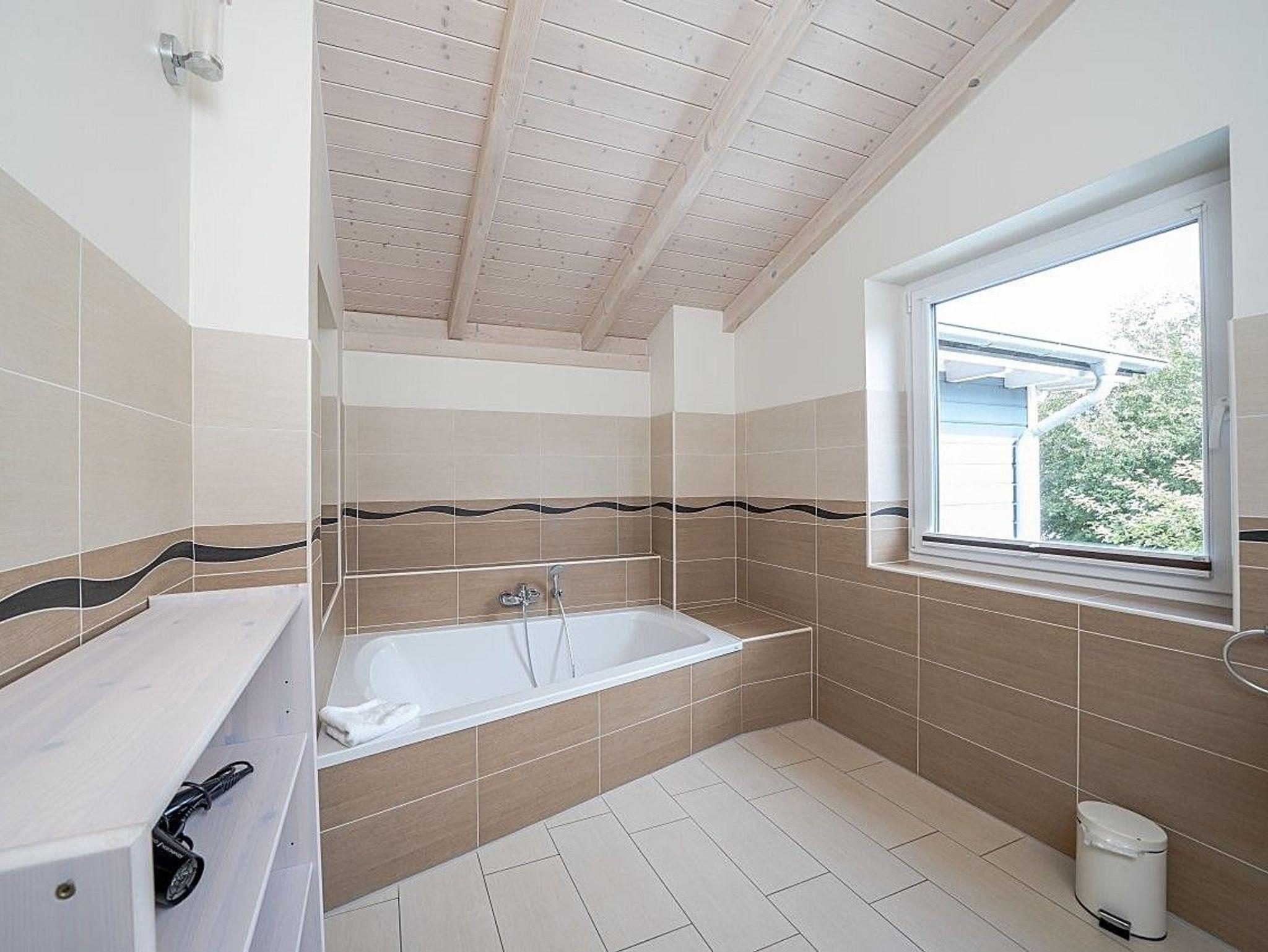 Im Obergeschoss sorgt ein großzügiger Wellnessbereich mit Sauna und einer XXL-Badewanne für zwei Personen für entspannte Stunden. Zwei weitere Schlafzimmer und ein zusätzliches Bad bieten zusätzlichen Komfort.