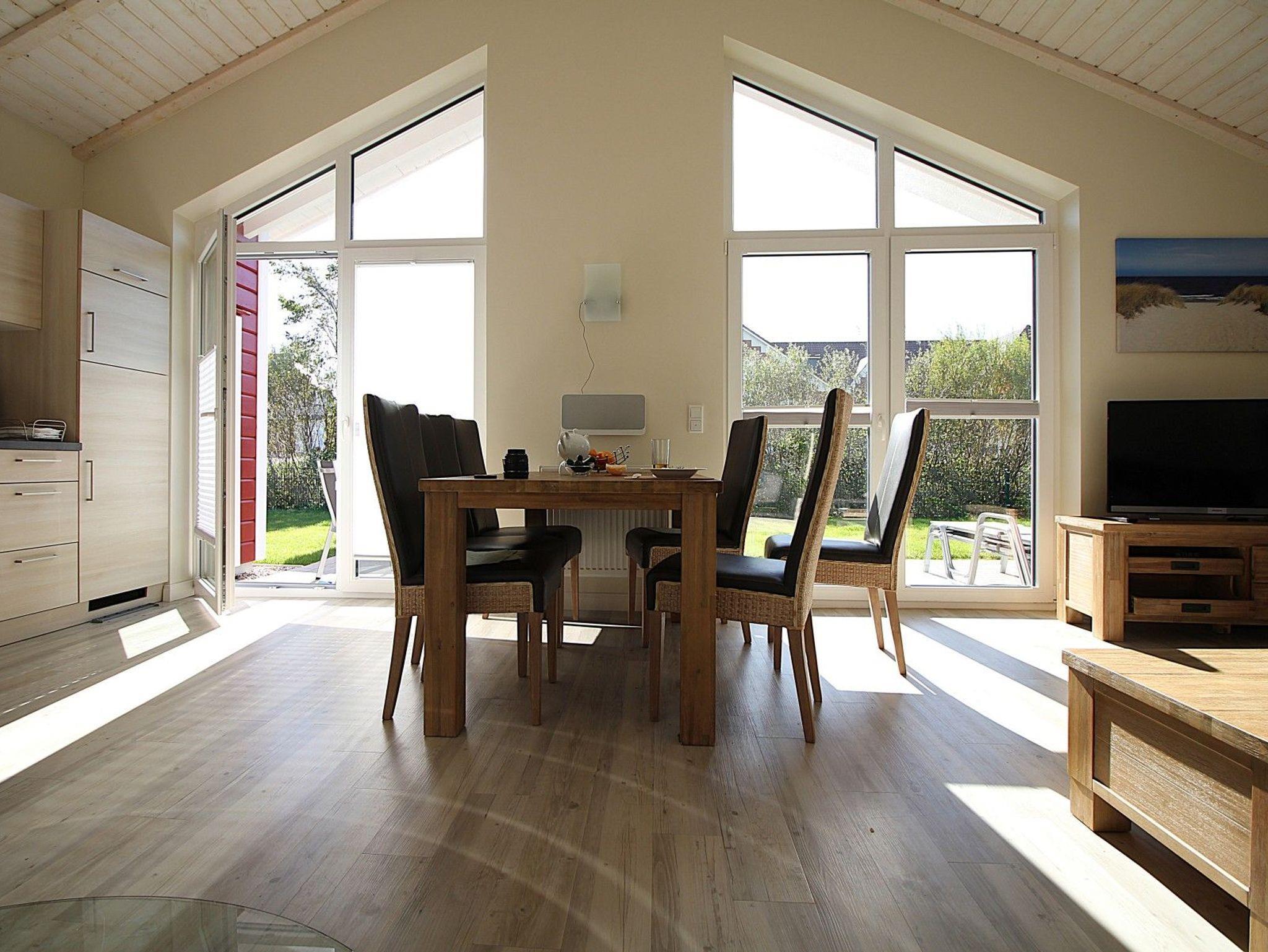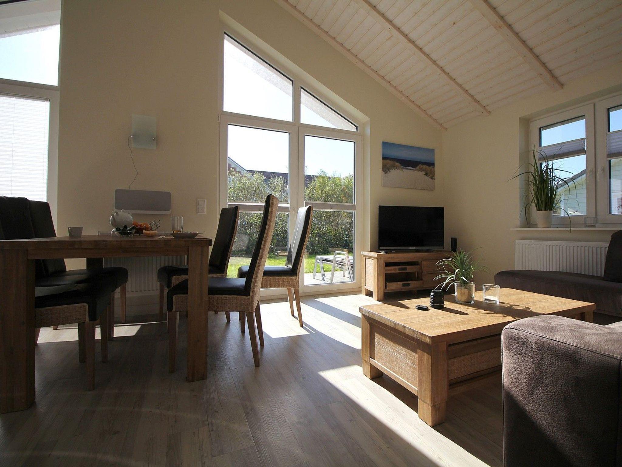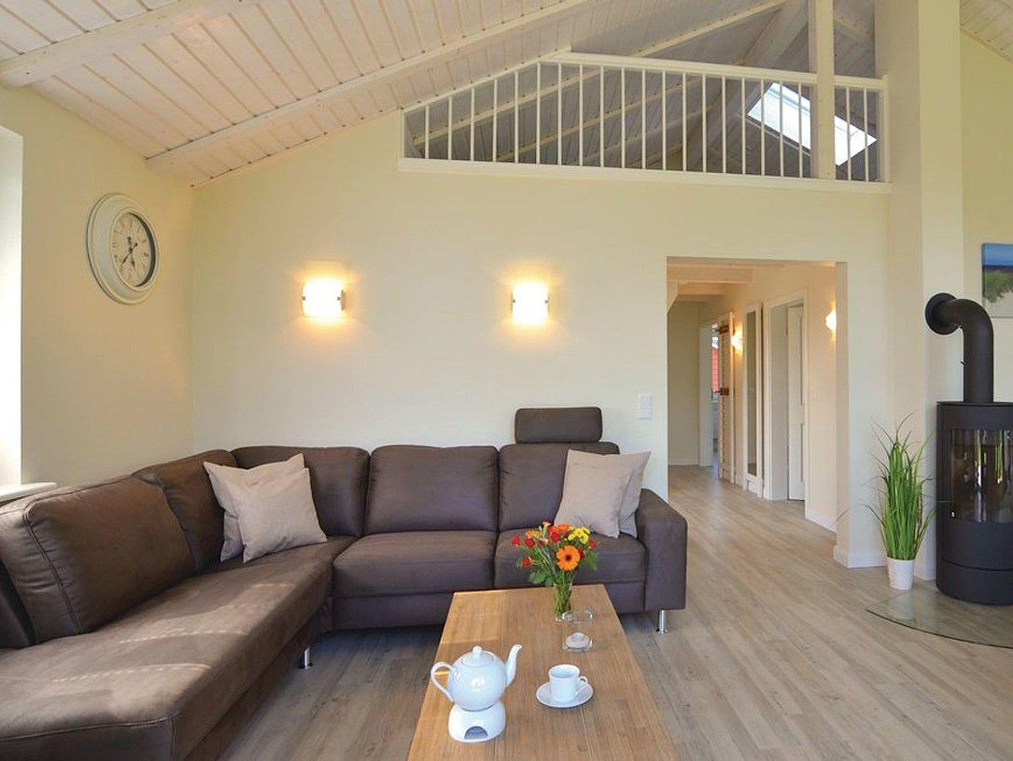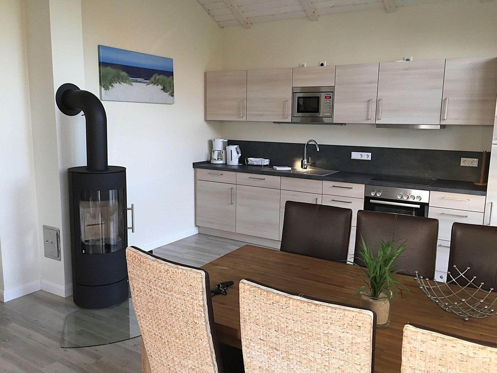 Die beiden Schlafzimmer mit Doppelbetten, das moderne Bad mit Dusche und Badewanne sowie die offene, komplett ausgestattete Küche schaffen eine komfortable Wohnatmosphäre. Nach einem Tag am Meer oder einer Radtour laden die private Sauna und der gemütliche Kaminofen zum Entspannen ein.