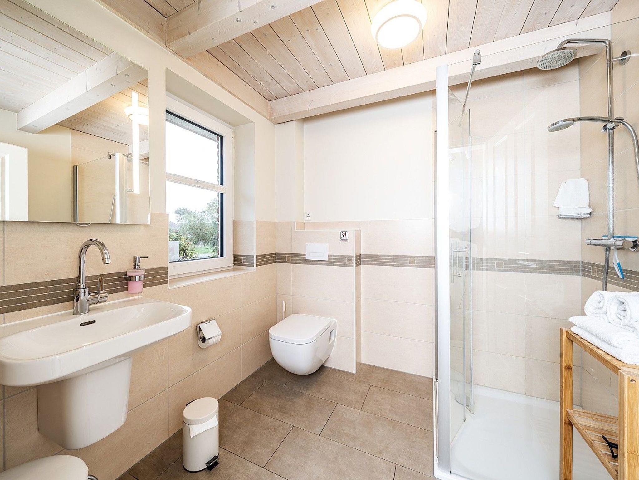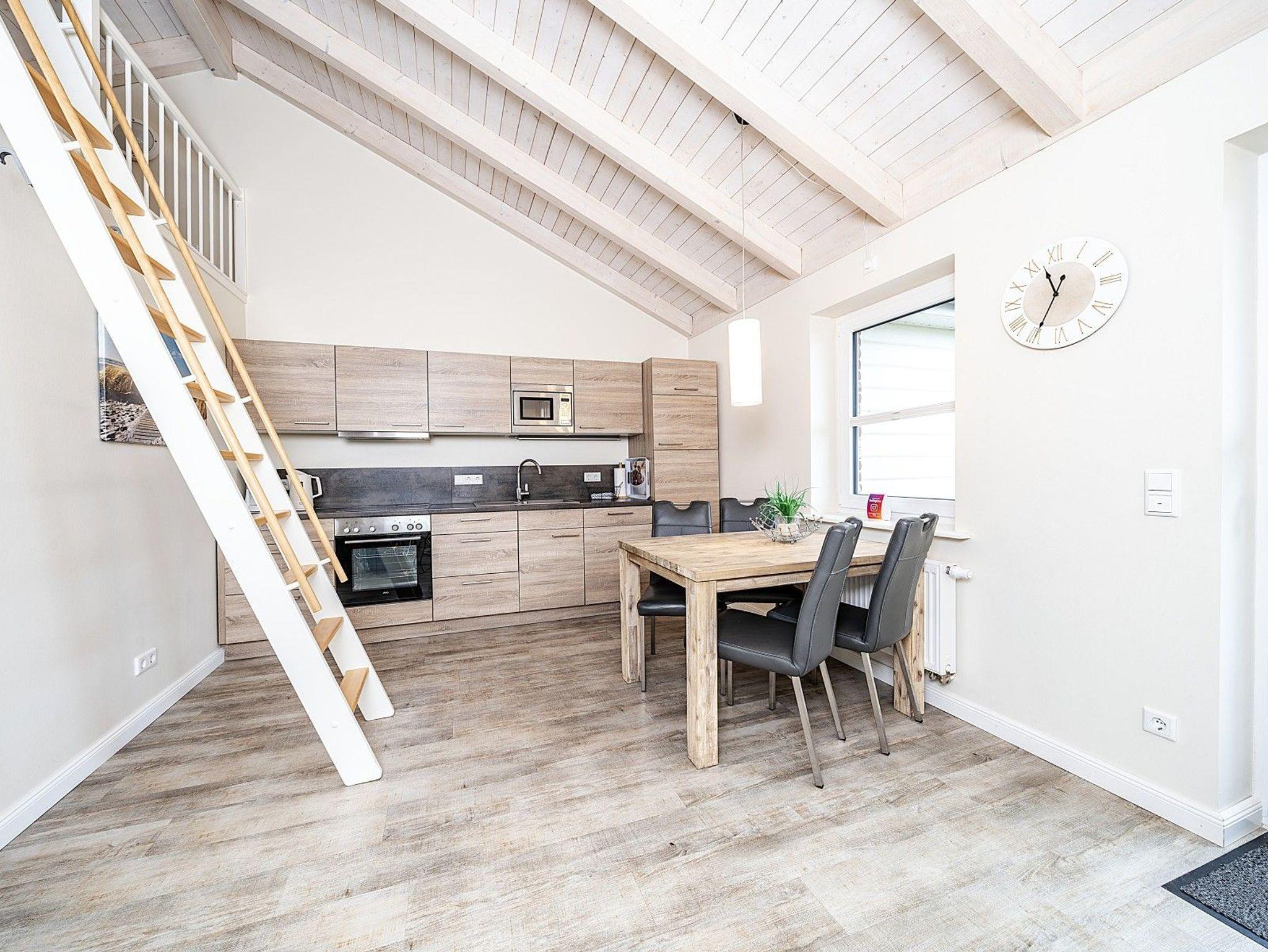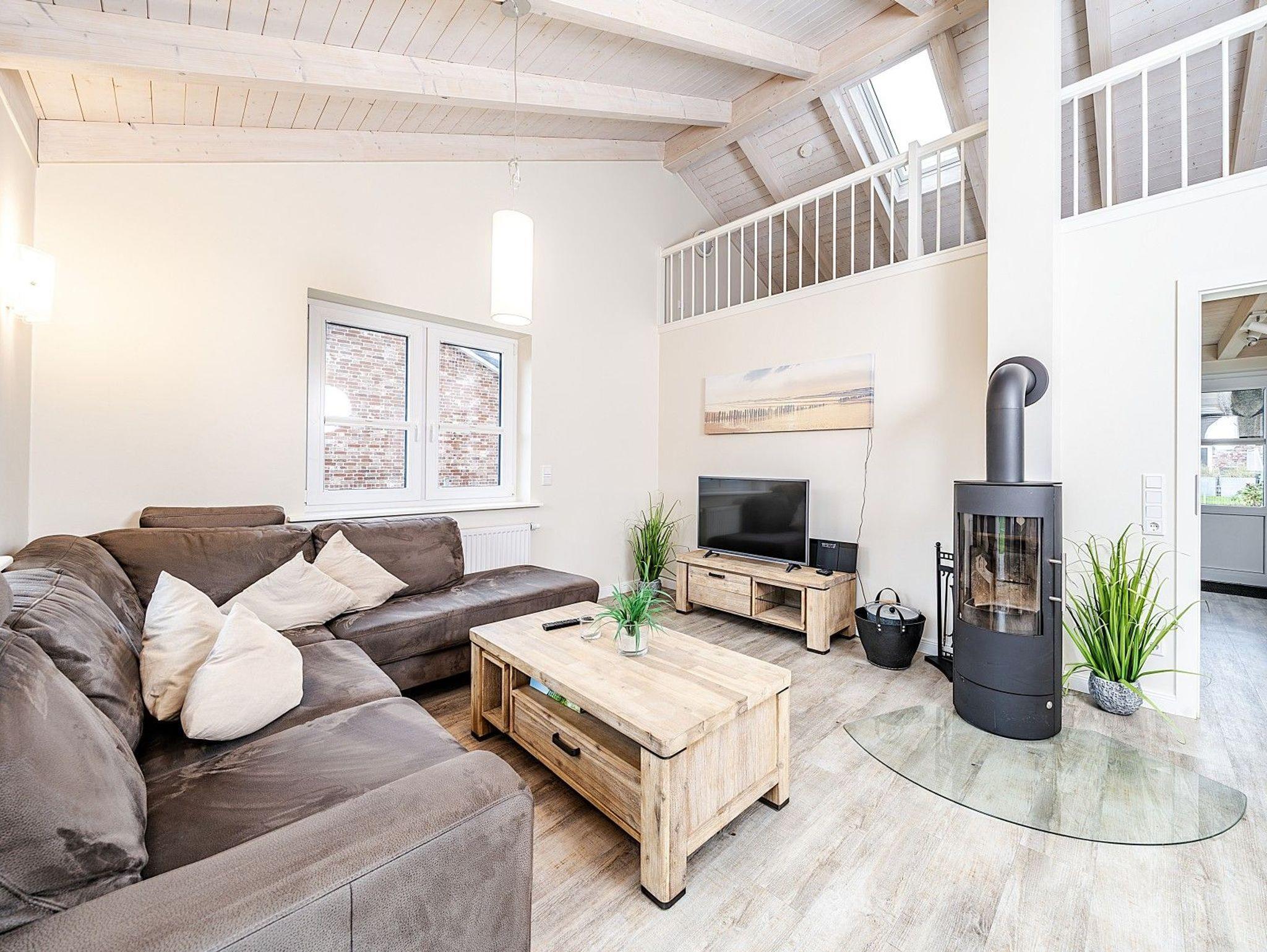 Die moderne, 50 m² große Doppelhaushälfte bietet alle Voraussetzungen für einen entspannten Urlaub an der Nordsee. Der lichtdurchflutete Wohn- und Essbereich mit offener Küche, gemütlicher Sofaecke und Kaminofen lädt zu entspannten Stunden ein. Das Schlafzimmer ist mit einem Doppelbett ausgestattet, und das Badezimmer verfügt über Fußbodenheizung für zusätzlichen Komfort.