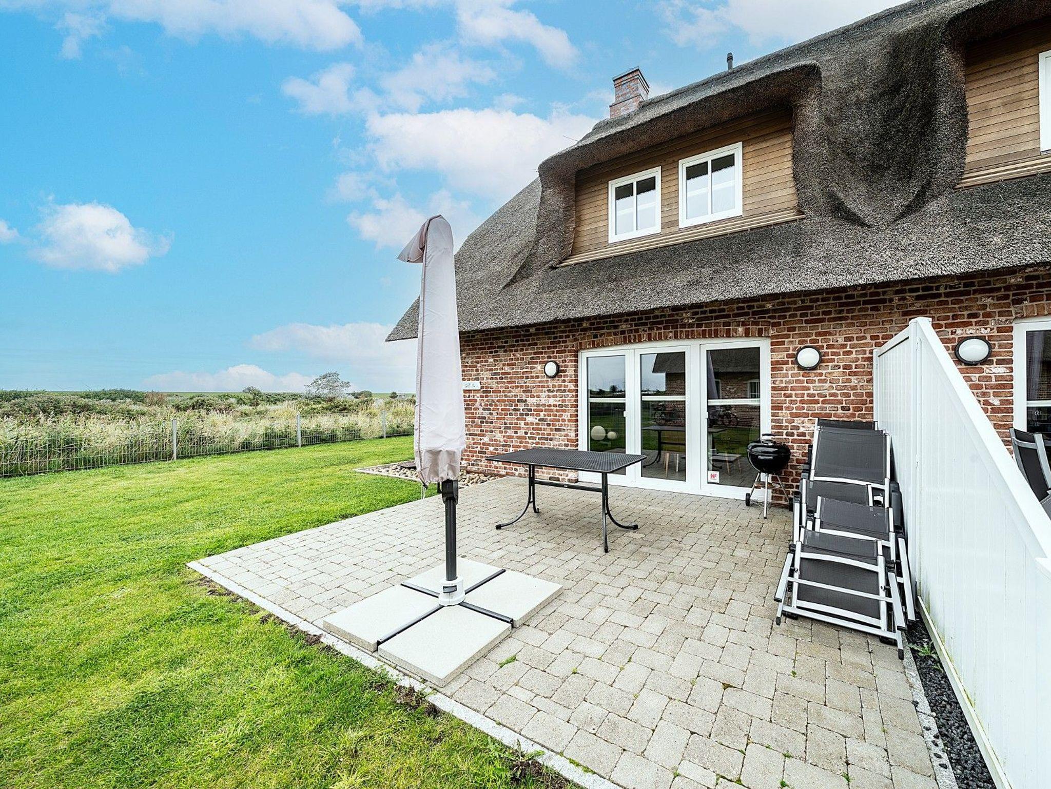 Der liebevoll gestaltete, eingezäunte Garten mit Terrasse, Grill und hochwertigen Gartenmöbeln bietet Raum für erholsame Momente im Freien. Zwei Haustiere sind willkommen. In ruhiger Lage hinter dem Deich und dennoch nur wenige Gehminuten vom Strand, Hafen und den Fährverbindungen nach Amrum und Föhr entfernt, ist das Haus ein idealer Ausgangspunkt für Ausflüge in die Umgebung. Auch Sylt und die Halligen lassen sich bequem erreichen. Einkaufsmöglichkeiten, Restaurants und ein Fahrradverleih befinden sich in der Nähe.