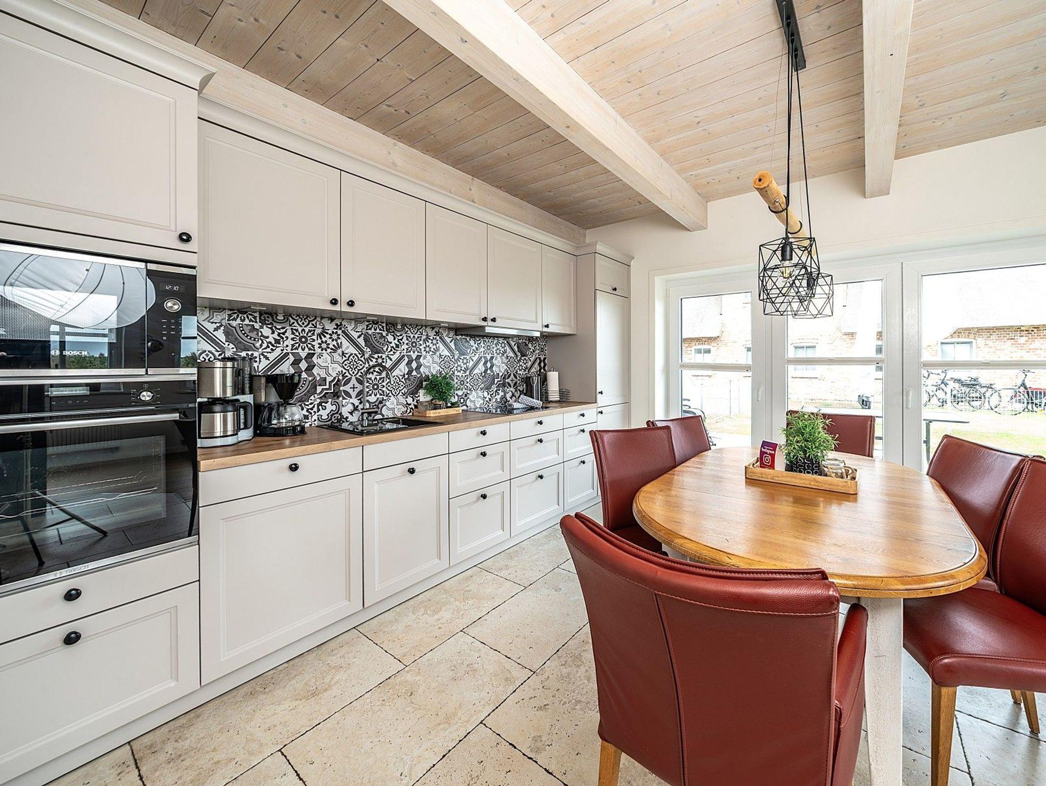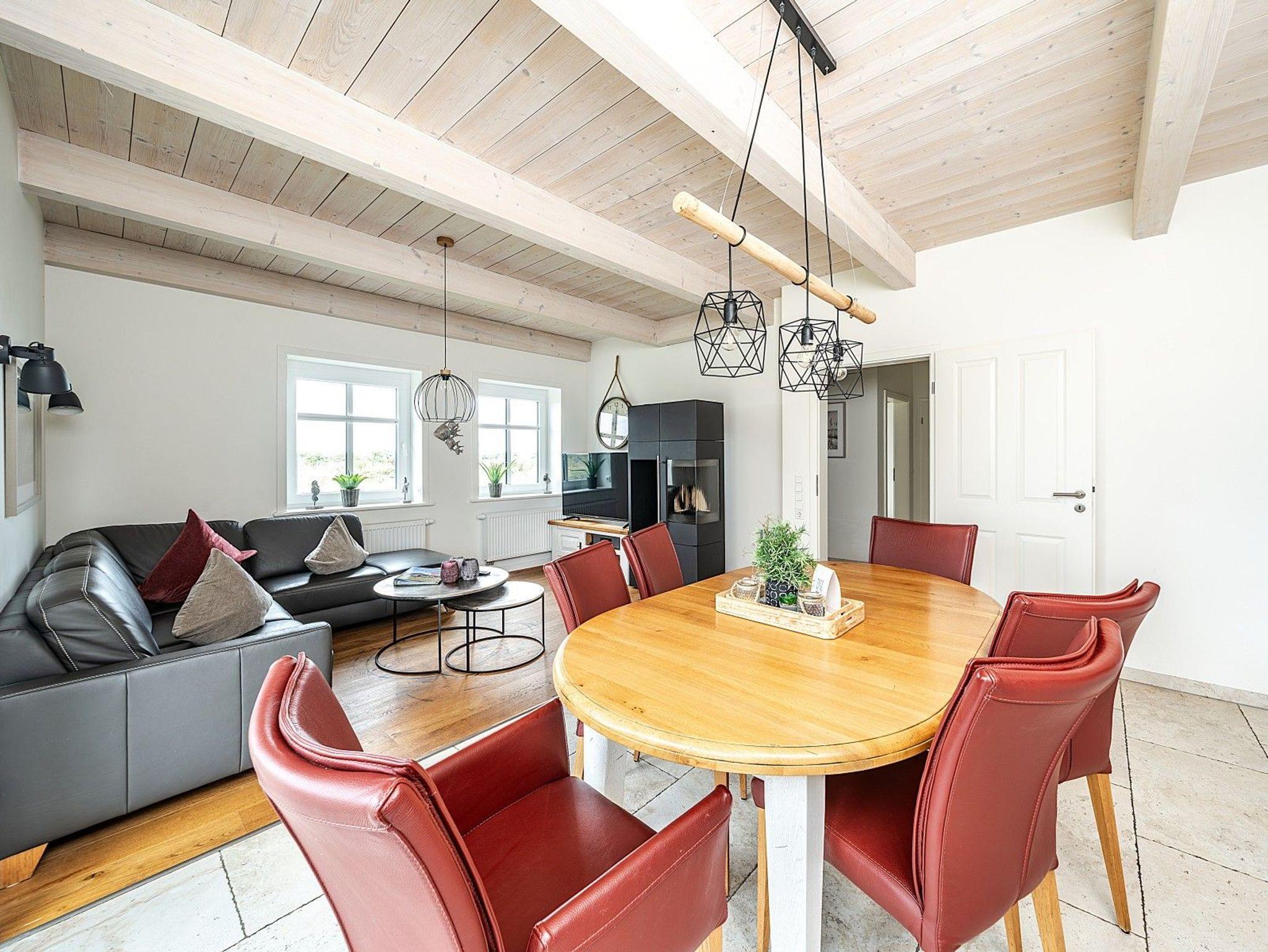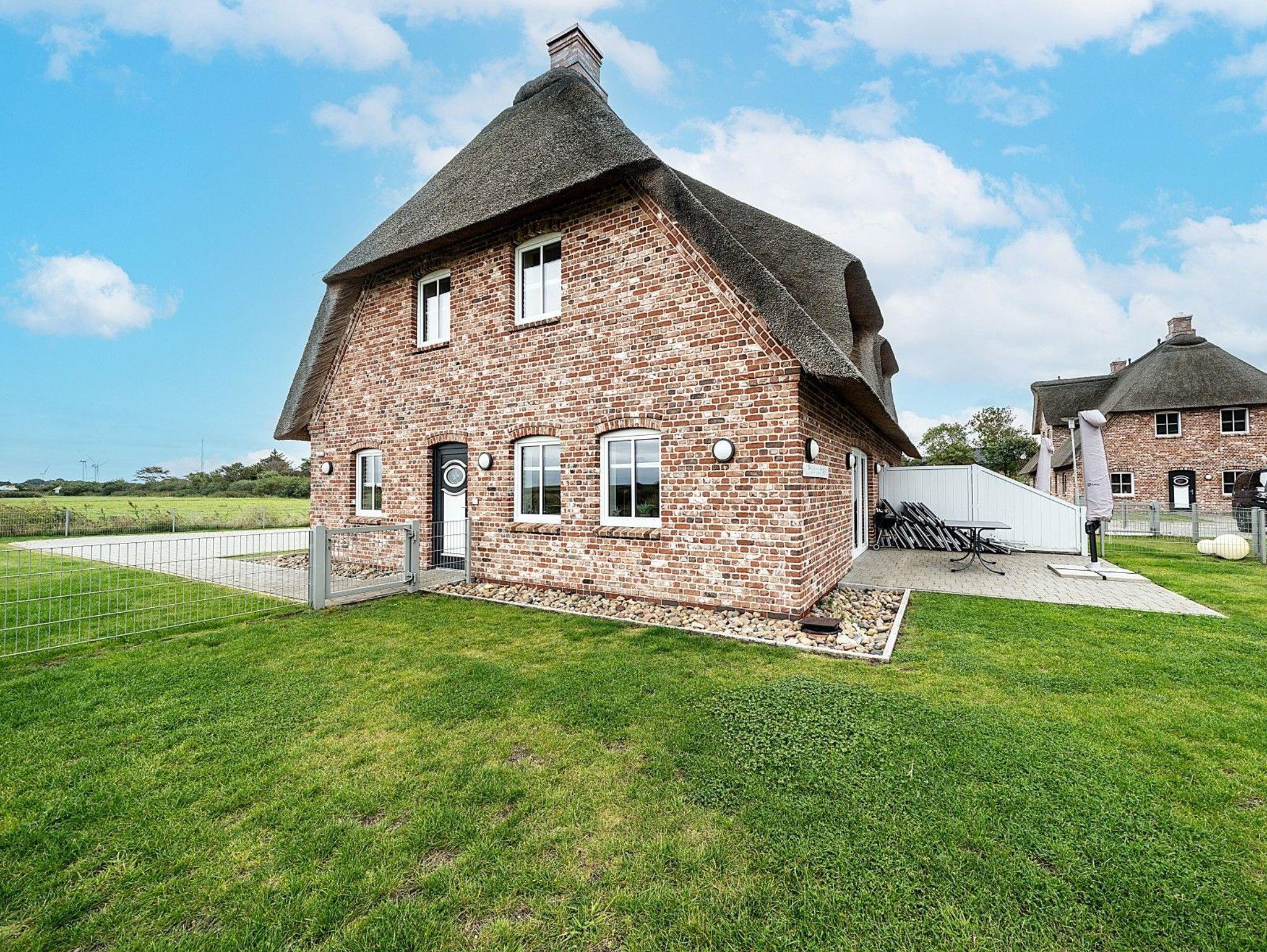 Diese reetgedeckte Doppelhaushälfte vereint traditionellen Charme mit modernem Komfort und bietet auf rund 90 m² Platz für bis zu fünf Personen. Drei Schlafzimmer, zwei Badezimmer und ein großzügiger Wohnbereich mit offener Küche schaffen ein helles und harmonisches Ambiente. Nach einem Tag an der Nordsee laden Sauna und Kaminofen zu entspannten Stunden ein.
