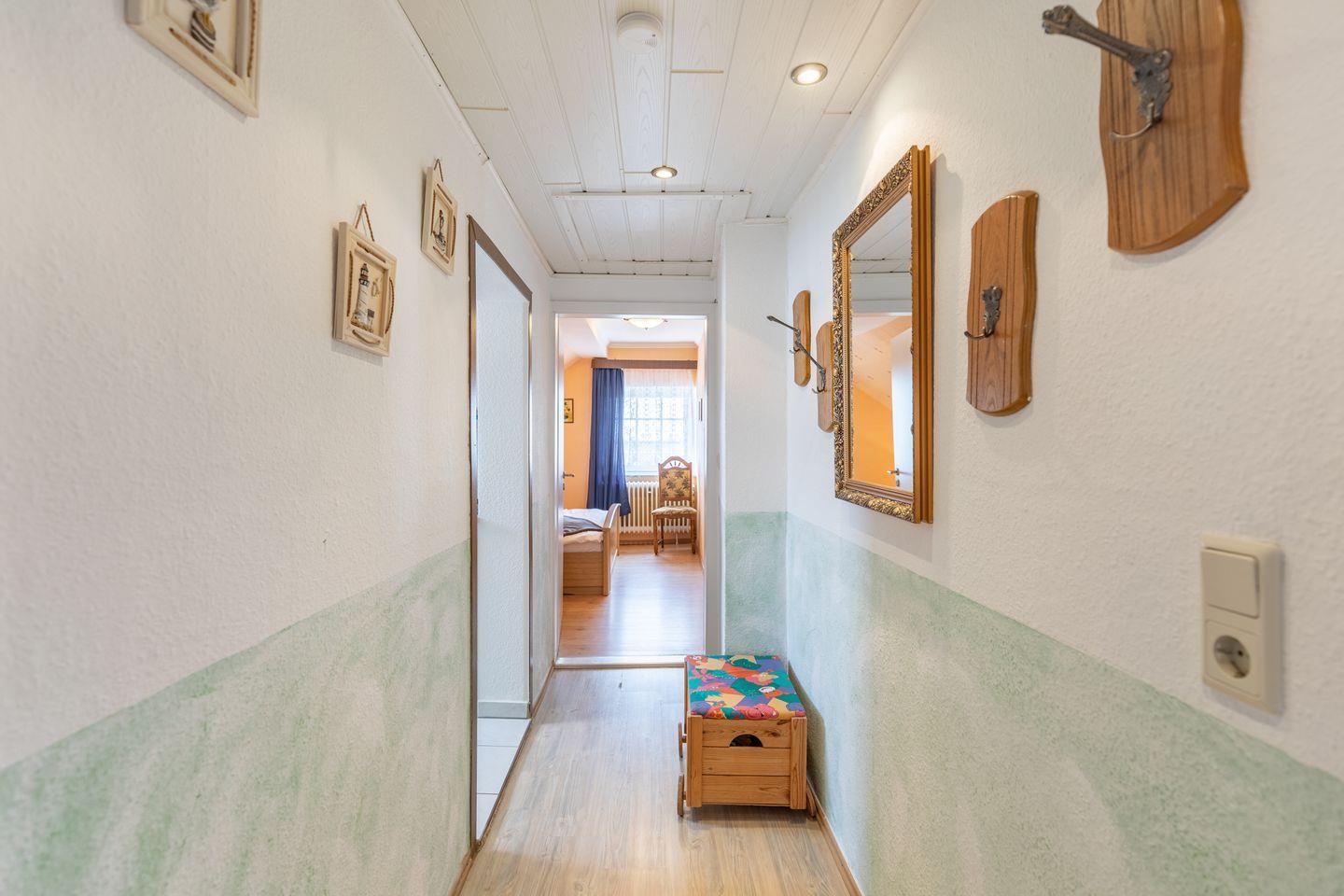 Die Ferienwohnung befindet sich direkt am Badedeich im 1. Obergeschoss des familiär betriebenen Hauses "Seeblick".