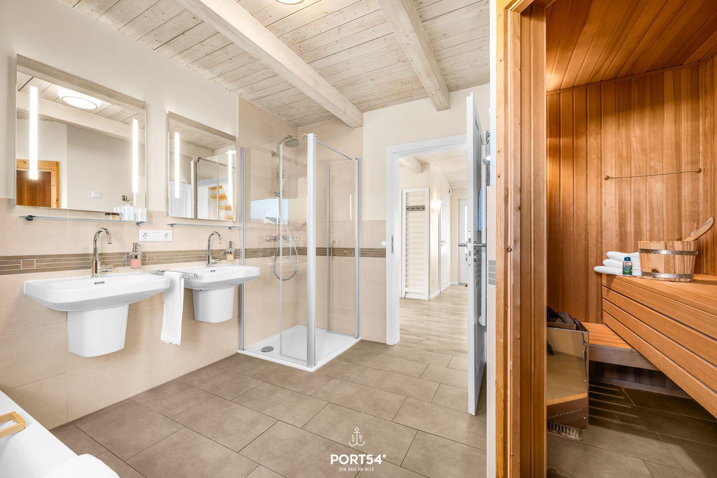 Im Haus stehen Ihnen zwei Schlafzimmer mit Laminatboden und Doppelbetten zur Verfügung. Zwei Klappmatratzen auf der Galerie bieten 2 weitere Schlafmöglichkeiten. Damit auch kleine Gäste komfortabel wohnen, sind ein Babybett und ein Kinderhochstuhl vorhanden. Das Badezimmer ist hochwertig ausgestattet und bietet sowohl eine Dusche als auch eine Badewanne, ein Waschbecken sowie Fenster für Tageslicht. Zusätzlich steht Ihnen ein Gäste-WC zur Verfügung. Für Ihren Komfort finden Sie außerdem eine Waschmaschine mit Eigennutzung vor.