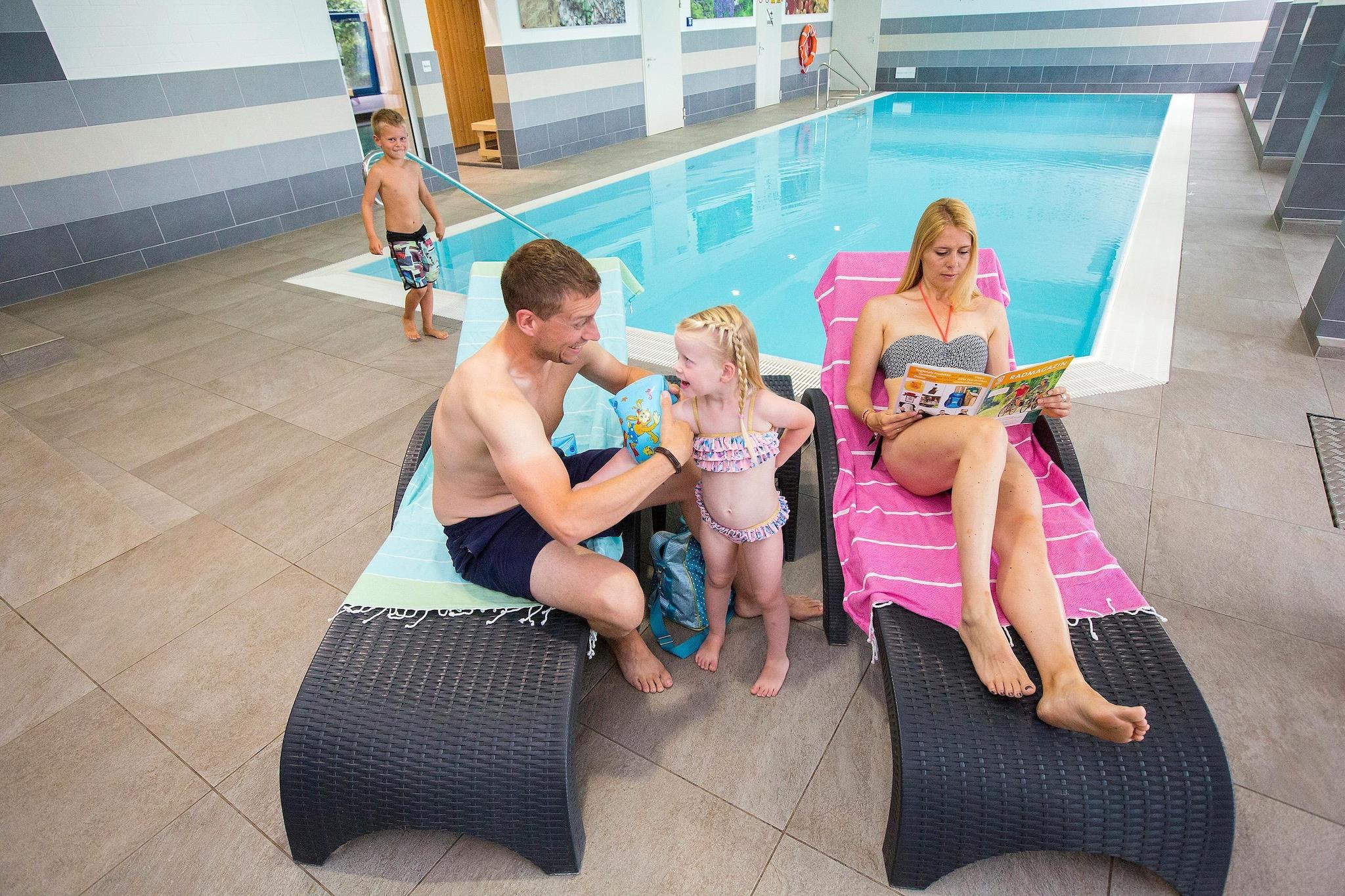 Denna semesterpark erbjuder ett brett utbud av boende som passar alla typer av gäster. Från enkla men mysiga 4- och 6-personers bungalower till större lyxvillor, alternativen är mångsidiga och tillgodoser olika behov. De lyxiga rummen har privata bastur, och villan för 6 personer har till och med bubbelbad och solarium för ultimat avkoppling. Varje sovrum i de lyxiga alternativen har sitt eget badrum, som erbjuder komfort och avskildhet. En rymlig veranda med trädgårdsmöbler ger en utmärkt plats att njuta av den hisnande utsikten över dalen och sjön. Semesterparken ligger i ett naturskönt område, nära en rad attraktioner. Gästerna kan utforska de vackra omgivningarna, med pittoreska parker och vandringsleder bara en kort bit bort. Lokala kaféer och marknader erbjuder en chans att njuta av äkta regional mat och handla lokala produkter, vilket ger området charm. Oavsett om du föredrar utomhusaktiviteter eller kulturella upplevelser finns det något för alla på denna fridfulla, naturfyllda plats. Boendet har olika praktiska bekvämligheter för att säkerställa en bekväm vistelse. Varje villa och bungalow är utrustad med ett fullt fungerande kök, så att du kan laga mat när det passar dig. Tvättrummen är moderna och välutrustade. De rymliga trädgårdarna är perfekta för utomhuslek, särskilt för barnfamiljer. Kombinationen av natur, avkoppling och gott om faciliteter gör denna semesterpark till ett utmärkt val för alla resenärer. (Obs: Reservoaren kommer att vara stängd för rekreation fram till sommaren 2025. Därför är gäster inte tillåtna att simma, fiska eller delta i vattensporter.)