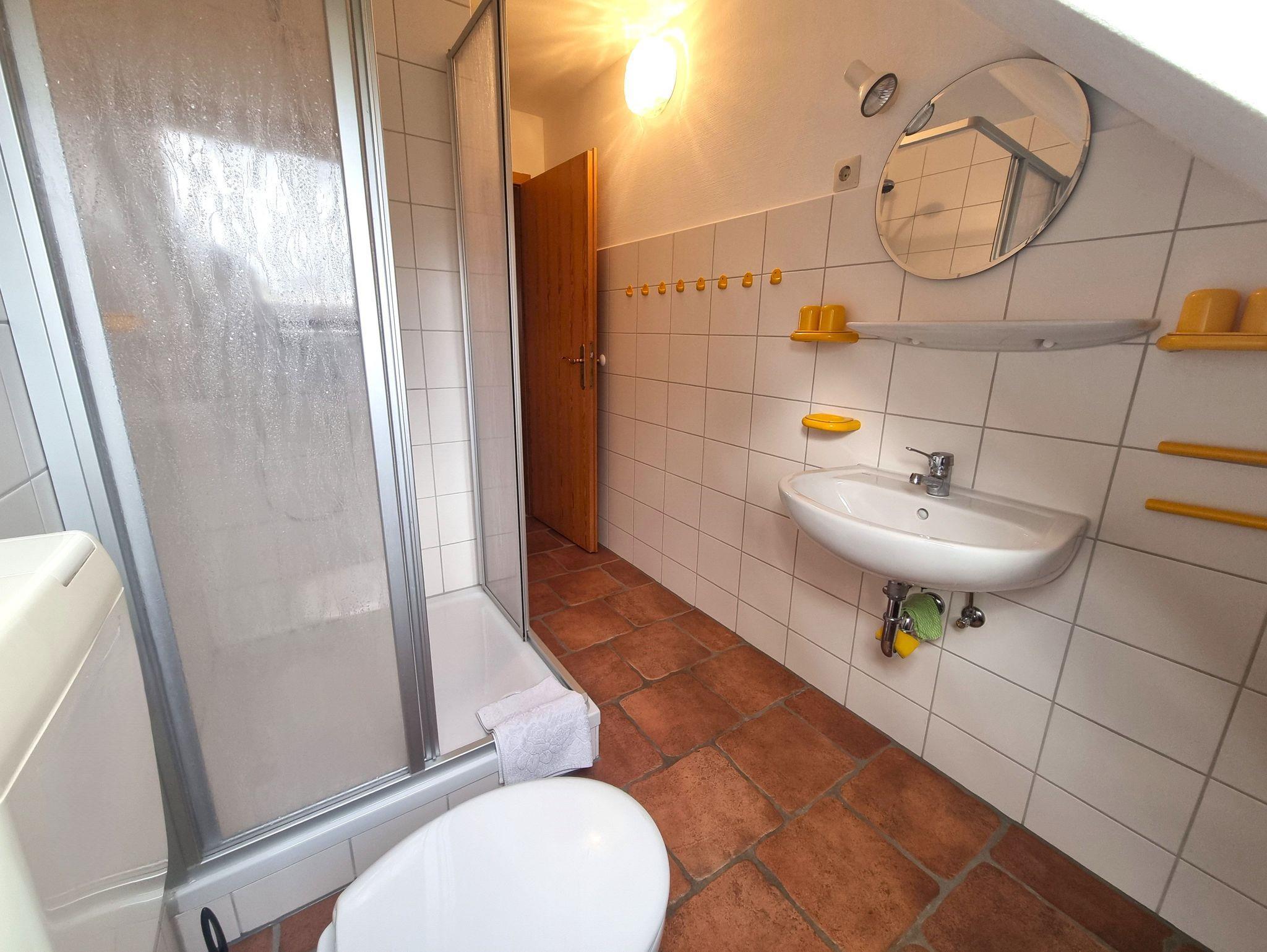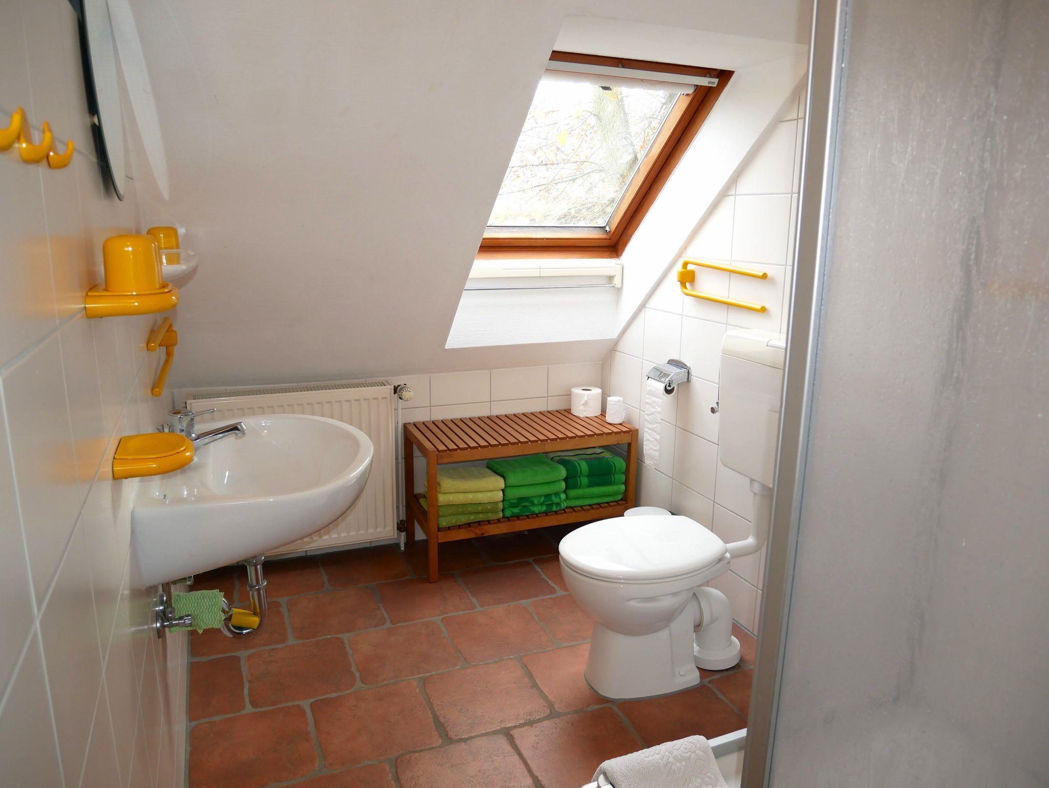 Das Tageslicht Badezimmer verfügt über Dusche und WC.