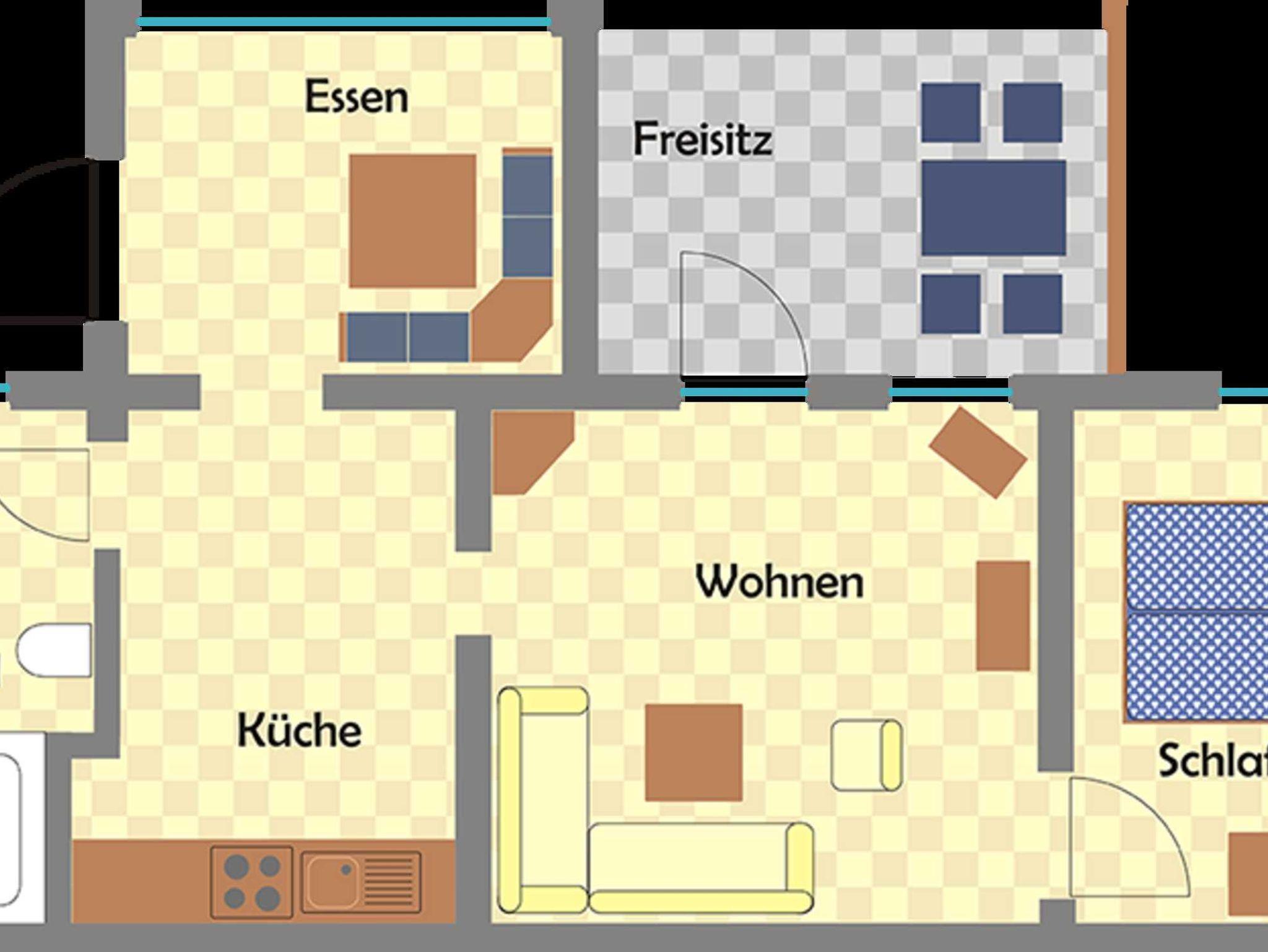 Die Fewo befindet sich im EG in einem Ferienhaus mit insgesamt 3 Fewo. Sie ist ganzjährig zu mieten und für bis zu 4 Personen geeignet. Sie verfügt über ein Wohnzimmer, eine sep. Küche mit einer Einbauküche, einem Schlafzimmer mit Ehebett, ein sep. Esszimmer, Dusche/WC, Terrasse, TV und Radio. Die Aufbettung für 2 Personen ist im Wohnzimmer möglich. Ein Kinderbett und ein Hochstuhl können auf Anfrage bereitgestellt werden. Eine Waschmaschine und ein Trockner können gegen Gebühr genutzt werden. Sitzecke im Garten und Grillmöglichkeiten vorhanden. Auf dem Grundstück befindet sich ein kostenloser PKW-Stellplatz. Handtücher und Bettwäsche sind nicht im Preis enthalten. Entweder bitte selbst mitbringen oder vor Ort für 8,00 Euro/Person mietbar. Haustiere nach Absprache, pro Haustier 7,00 Euro.