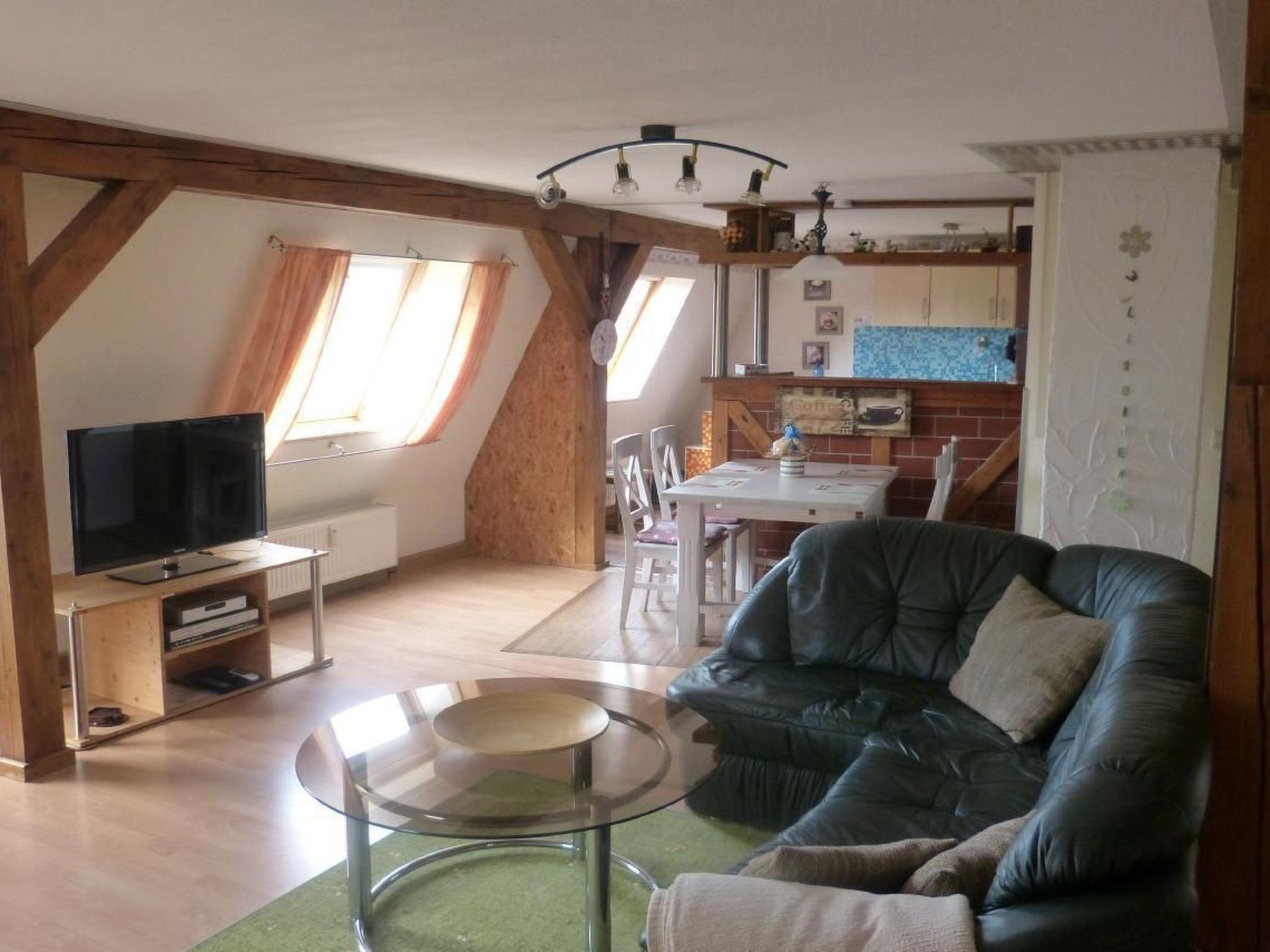 Category: Apartment 3 roomsSize in m²: 80Information about the object: The apartment is completely furnished and renovated with partly new furniture (2023). It has its own entrance and is located on the 1st floor.living room with kitchen-living room (fully equipped), 1 bedroom with double bed, 1 bedroom with 2 single beds (extra bed possible), 1 bathroom with tub and shower and toilet. Information about the location: The apartment is located on the outskirts of Demmin at the confluence of the rivers Peene, Trebel and Tollense. A playground and bus connection to the town are 15 metres from the property. Shopping facilities approx. 10 min walk.leisure facilities: Canoe hire, riding stable, horse riding, bowling alley, indoor swimming pool. Ideal for water sports enthusiasts, anglers and cyclists. Over 100 km of waterways, passenger boat trips on the Peene and Lake Kummerow. Excursion destinations such as the island of Usedom, Rügen, the Hanseatic cities of Rostock, Stralsund and Greifswald are in the immediate vicinity.bed linen and towels on request, but if possible please bring your own. Your holiday in Demmin Number of kitchens : 1 Living room : TV, CD radio Bedroom 1 Bedroom furniture : TELEVISION Surroundings Rental facilities : Car rental in Demmin, Boat rental in Demmin, Bicycle rental in Demmin Sports facilities in the area : Fishing, Football ground, Golf course, Hunting possibilities, Canoeing, Cycling tours, Riding stables (guests), Riding hall, Riding arena / Riding possibilities, Rowing, Sailing, Sports centre, Squash, Tennis Garden and outdoor facilities Leisure facilities at the property : Playground Garden equipment : Barbecue