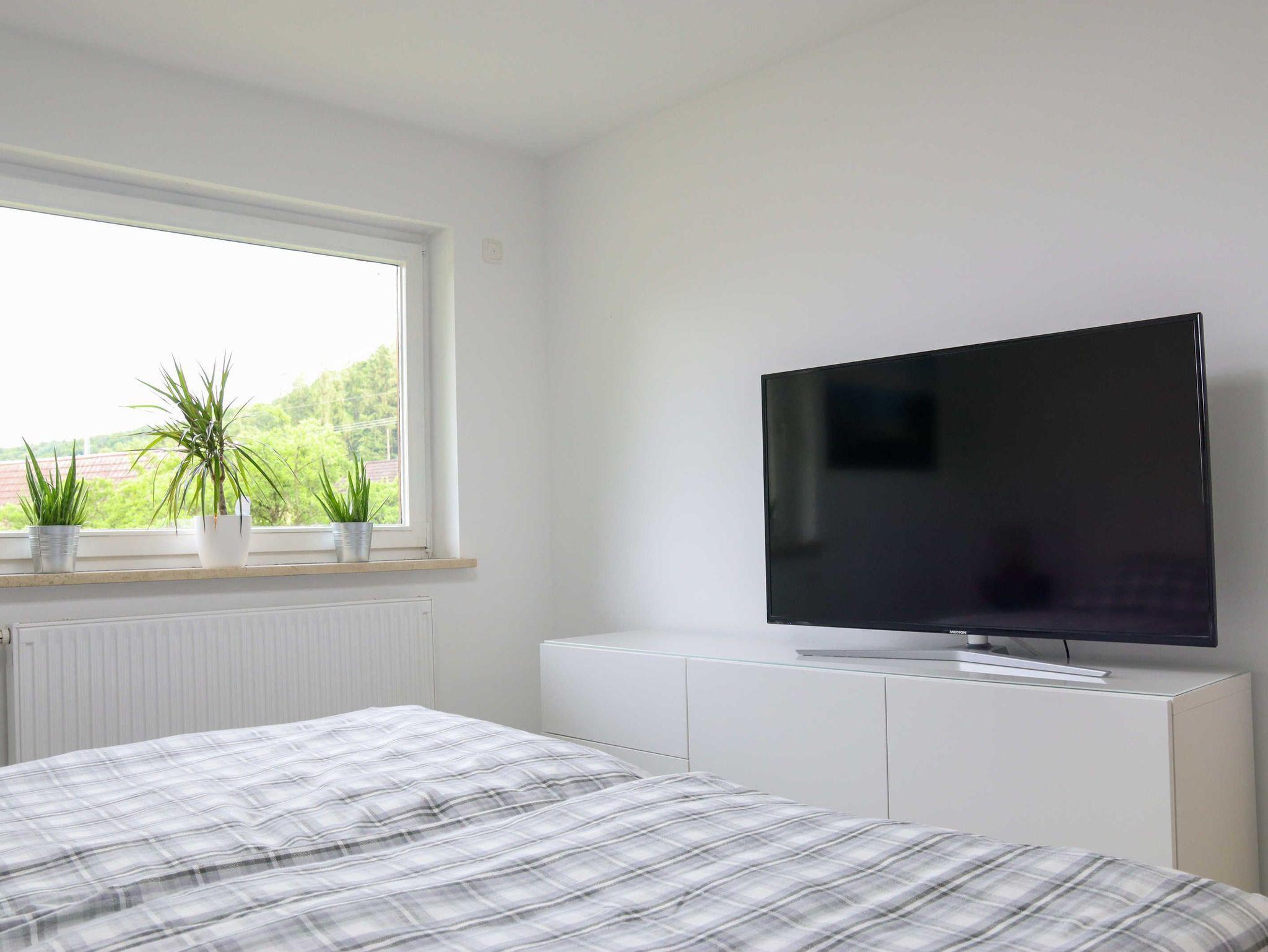 Das Ferienhäusla hat zwei separate Schlafzimmer mit je einem Doppelbett (1,80x2,00 m), Smart TV sowie zwei Nachttische mit Leselampe.