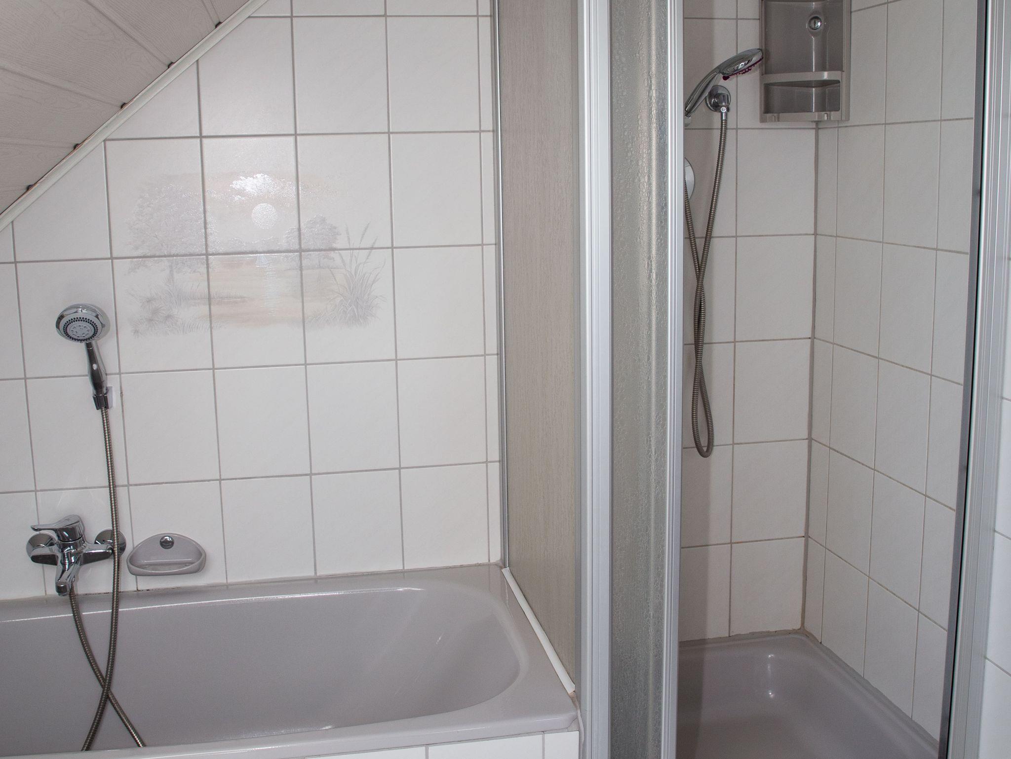 Unsere Dachgeschosswohnung hat 3 Schlafräume mit 6 Betten, ein geräumiges Wohnzimmer, eine voll eingerichtete Wohnküche sowie ein ein Bad mit Wanne, Dusche und 2 WC. Freies W-LAN sowie SAT-TV und Radio sind vorhanden.