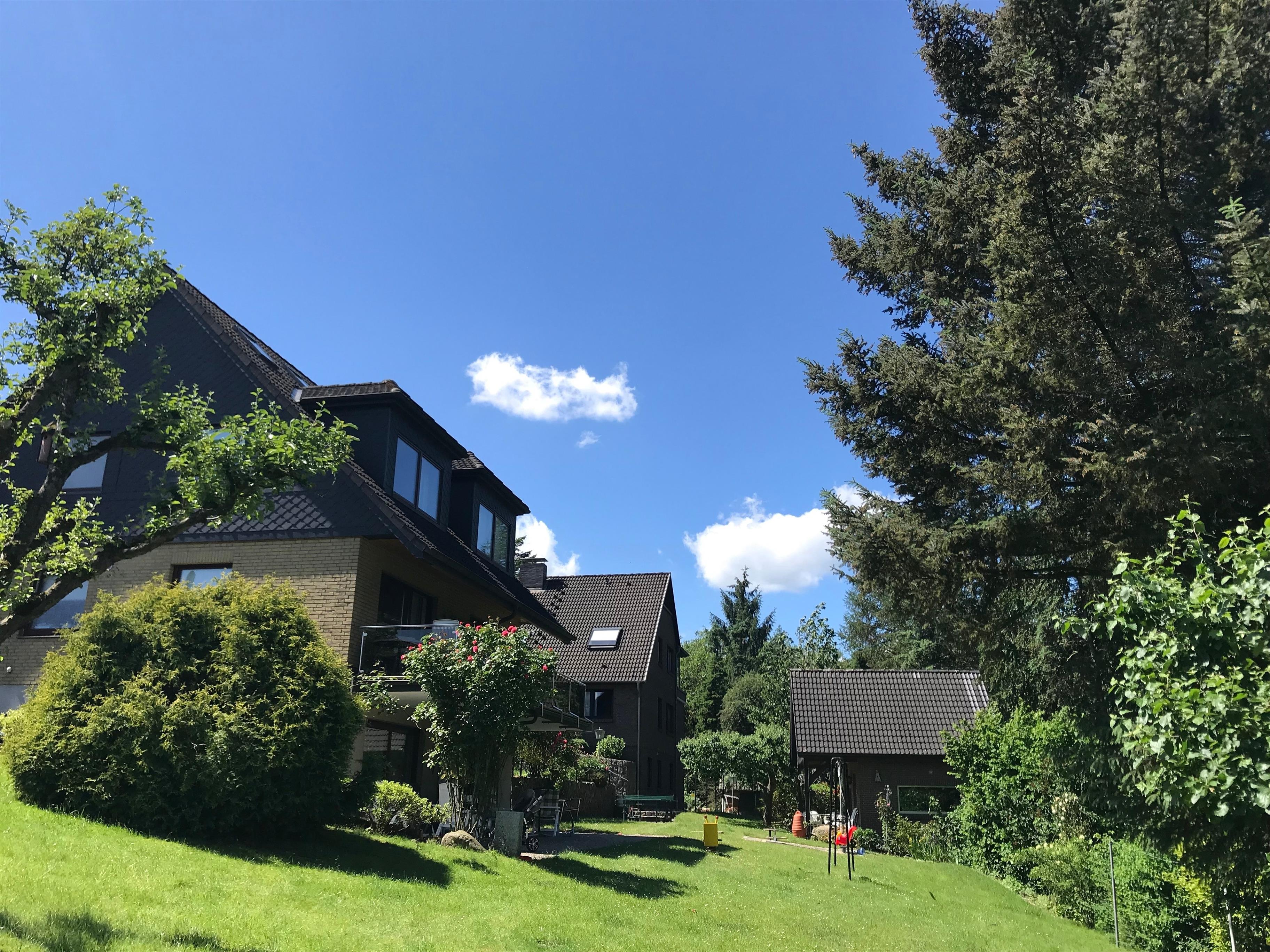 Unser Grundstück grenzt direkt an Wald- und Wiesenflächen, durch die der Lachsenbach fließt - wir blicken in die Natur, oft kommen uns Rehe und Eichhörnchen in unserem Garten besuchen.