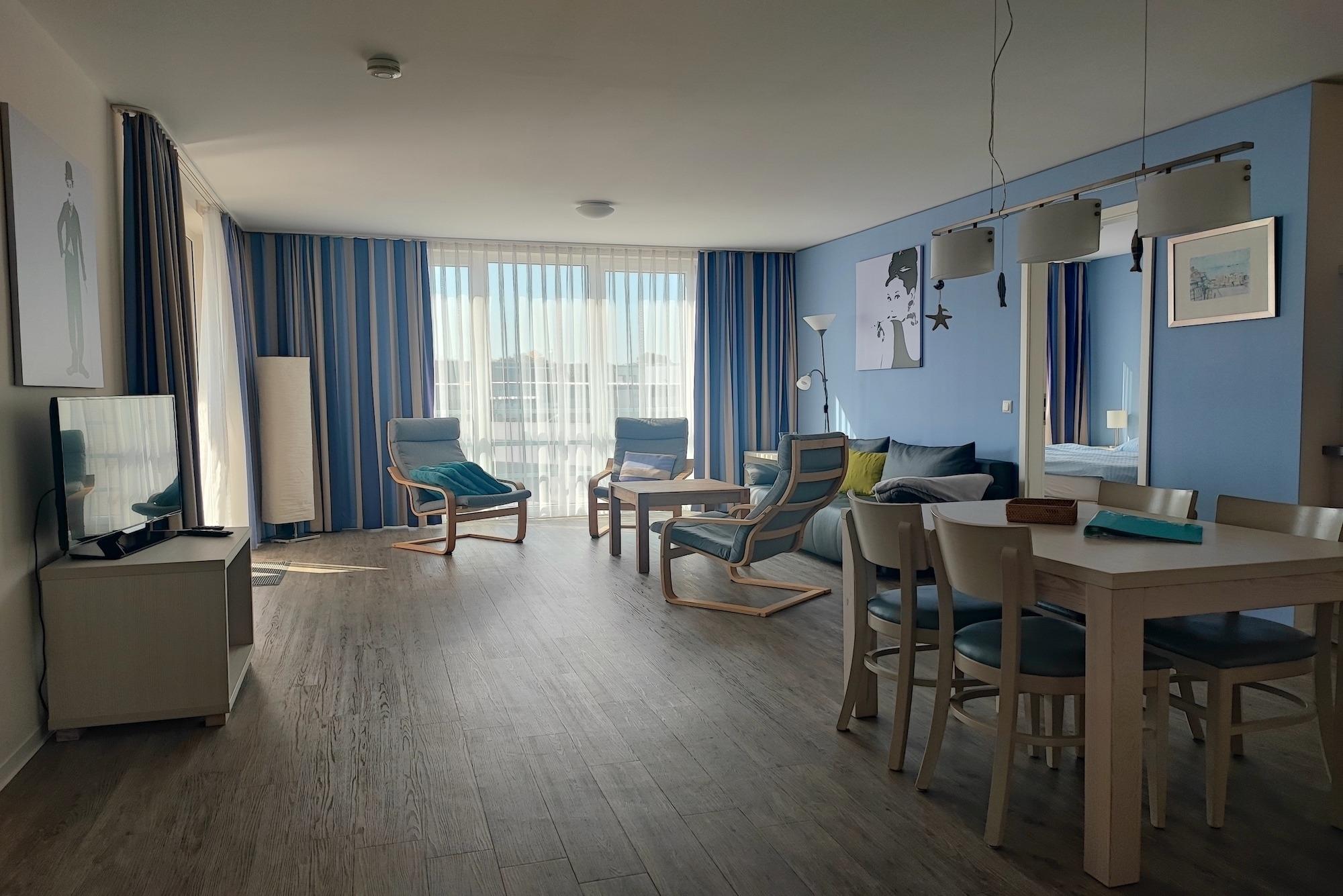 Die Ferienwohnung "Boje 27" (Bj. 2014, 4-Sterne) liegt nur 25m von der Hafenpromenade entfernt, auf der einen Seite schließen sich der Strand und seine lange Promenade an, auf der anderen Seite können Sie das Stadtzentrum und die naheliegende Gastronomie in wenigen Minuten erreichen.