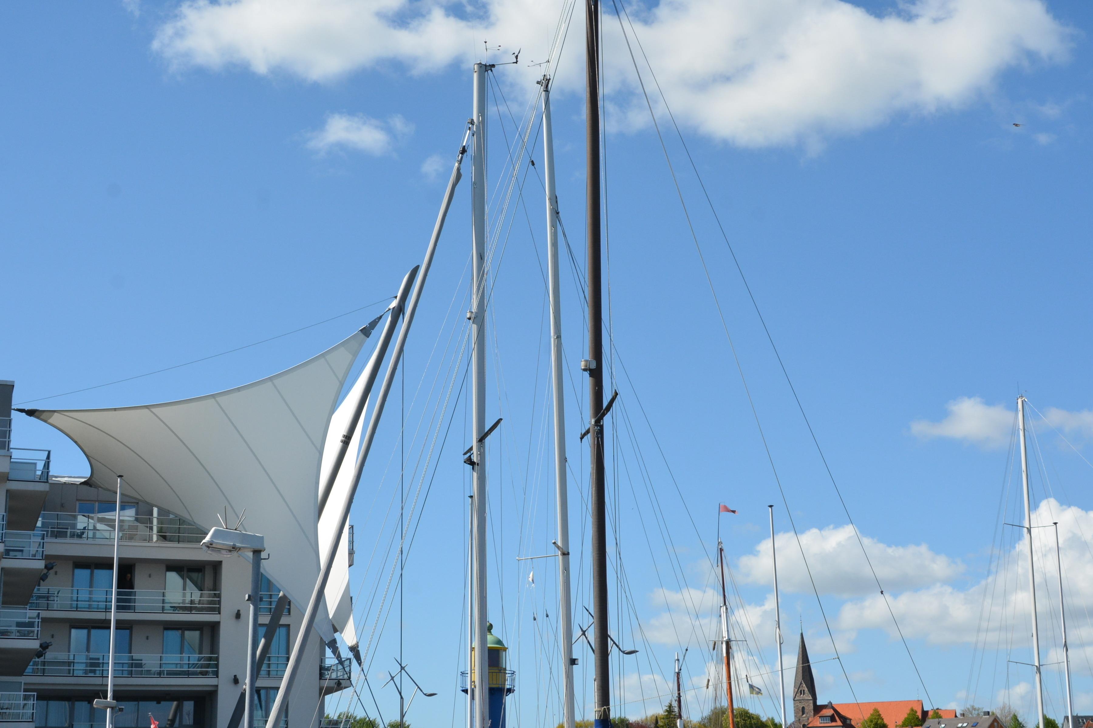 Genießen Sie das maritime Ambiente des Apartments 38 mit Blick über die Dächer der Hafenspitze.