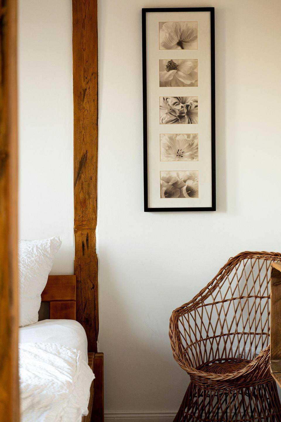 Diese einzigartige Wohnung im Obergeschoss besticht durch die vielen Holzelemente und das aufeinander abgestimmte Design und verleiht den Gästen ein ruhiges und angenehmes Wohngegühl.