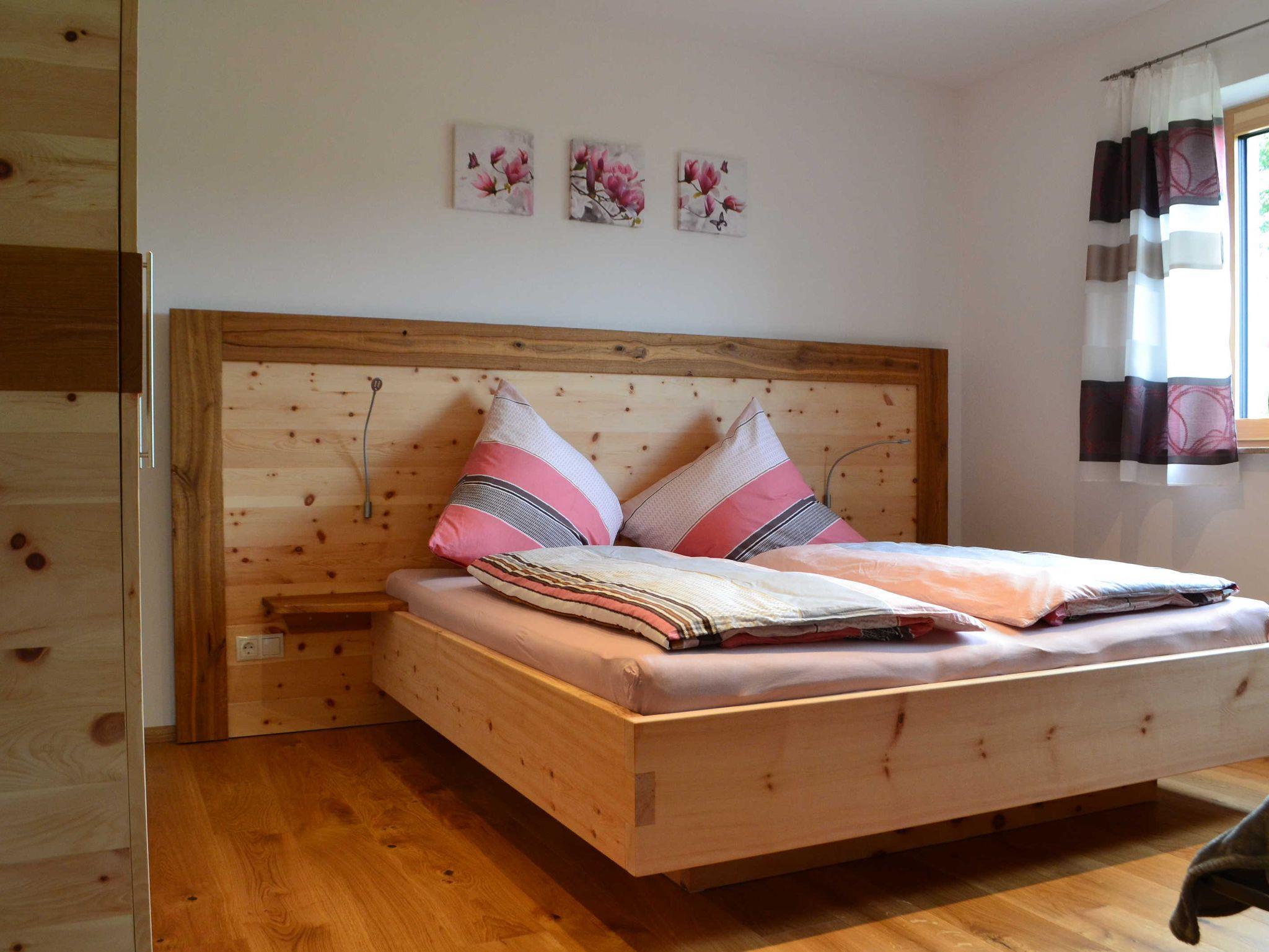 Bei den Schlafzimmermöbeln wurde das Holz unbehandelt belassen, damit sich der Duft der Zirbe entfalten kann.