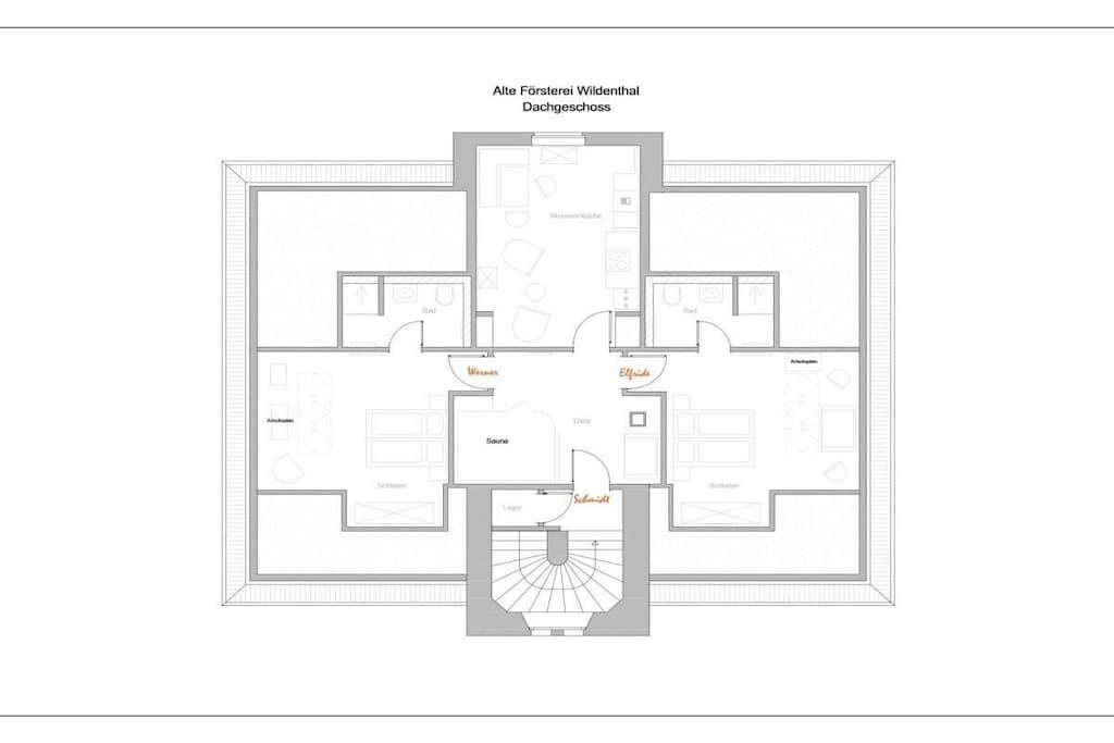 Välkommen till Old Forester's Lodge i Eibenstock. Våra semesterlägenheter ligger mitt i naturen. Denna lägenhet på översta våningen, med två sovrum, två badrum och ett rymligt vardagsrum med ett fullt utrustat kök, är perfekt för en familjesemester. Bekvämt möblerad med stor omsorg om detaljer, är det den perfekta platsen att lämna vardagen bakom sig. Du är också välkommen att använda den stora bastun för avkopplande stunder.