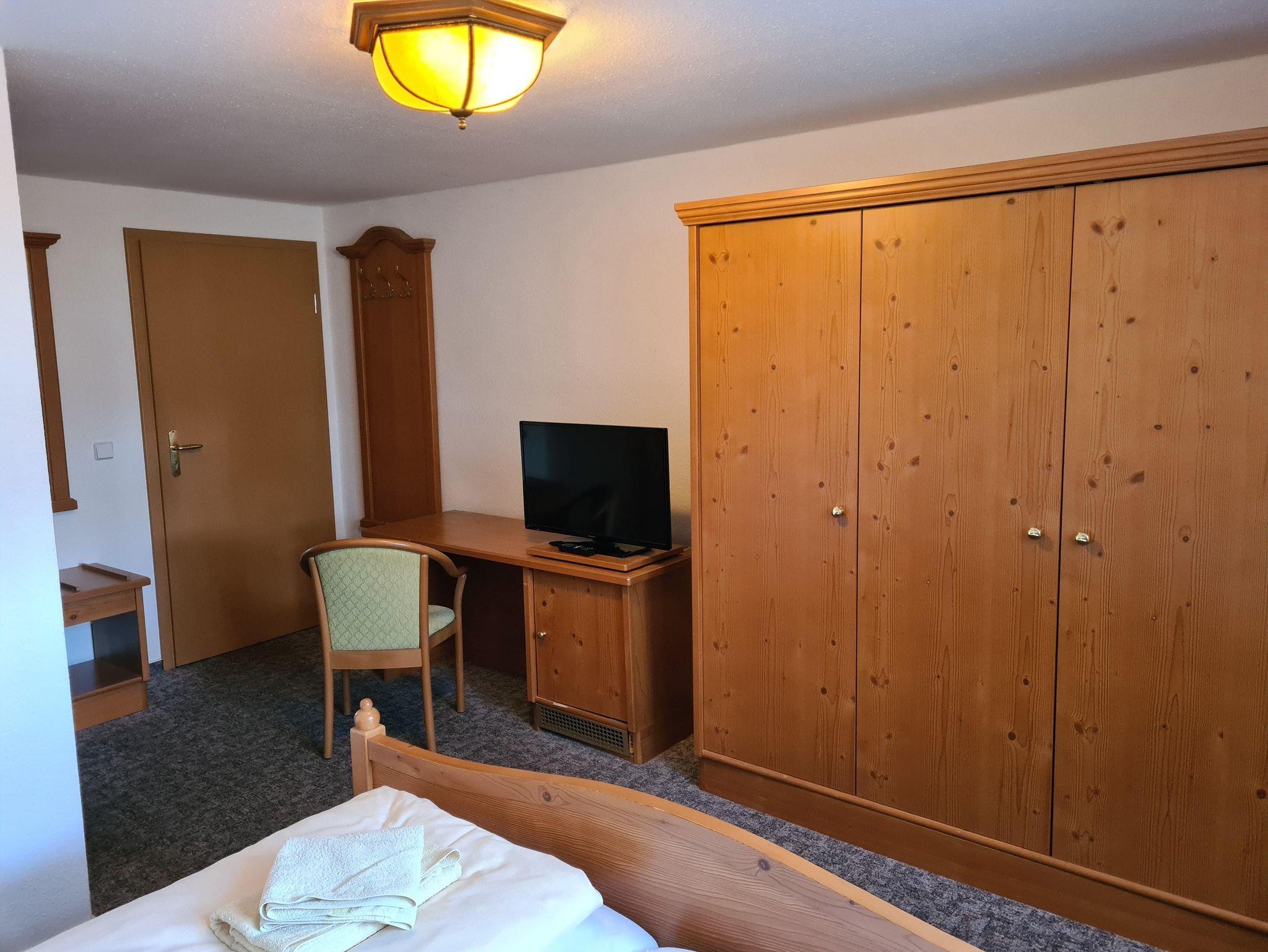 Pensionszimmer (Nichtraucher, OG Hauptgebäude) mit DU/WC/TV/Minibar, tw. 2 Aufbettungen möglich.