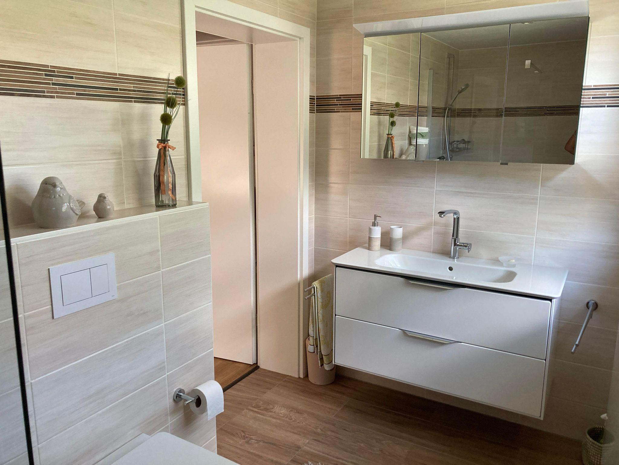 Neu renovierte, 80 m2 große, modern eingerichtete, behindertengerechte EG-Wohnung (Nichtraucher), bietet reichlich Platz für 1-4 Personen. Das gemütliche Wohnzimmer mit SAT-TV lädt zum Entspannen ein. Die komplett ausgestattete Küche mit Geschirrspüler, Kühl-Gefrierschrank, Cerankochfeld, Toaster, Eierkocher, Esstisch mit 5 Stühlen, Wasserkocher, Kaffeevollautomat und Microwelle lassen keine Wünsche offen. Das geräumige Badezimmer mit ebenerdiger Dusche, Waschtisch mit großem Spiegelschrank, incl. Kosmetikspiegel und Steckdosen, sowie Handtuchtrockner und Duschhocker runden das Gesamtbild ab. Unsere Gartenanlage mit Teich und Pavillon können sie gerne zum Verweilen nutzen (Haustiere nach Absprache). WLAN, Pkw- und Fahrrad-Abstellplatz kostenfrei vorhanden.