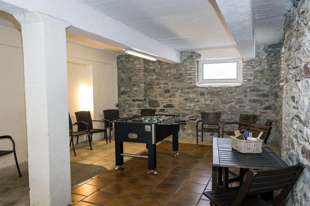 På våning 1: (Matsal(TV, matbord), Kök(, , , Öppet kök, matbord, Kokplattor, vattenkokare, brödrost, kaffebryggare, ugn, mikrovågsugn, diskmaskin, kylskåp, frys, frys), sovrum(, , enkelsäng, enkelsäng), sovrum(, , dubbelsäng, vagga), sovrum(, , dubbelsäng, vagga), sovrum(, , dubbelsäng), badrum(, WC, badkar, dusch, handfat), badrum(, WC, badkar, dusch, handfat), badrum(, WC, badkar, dusch, handfat), relaxavdelning(Koja, bastu)) Vindsvåning: (Vardagsrum(TV, stereo), sovrum(, , dubbelsäng), sovrum(, , dubbelsäng), sovrum(, , dubbelsäng), sovrum(, , dubbelsäng, vagga, spjälsäng)) , , , , Tillgång till Internet, torktumlare, tvättmaskin, värme, terrass(Grillplats, Bordtennis, grill, trädgårdsmöbler), parkering, strykbräda, strykjärn, torkskåp, telefon