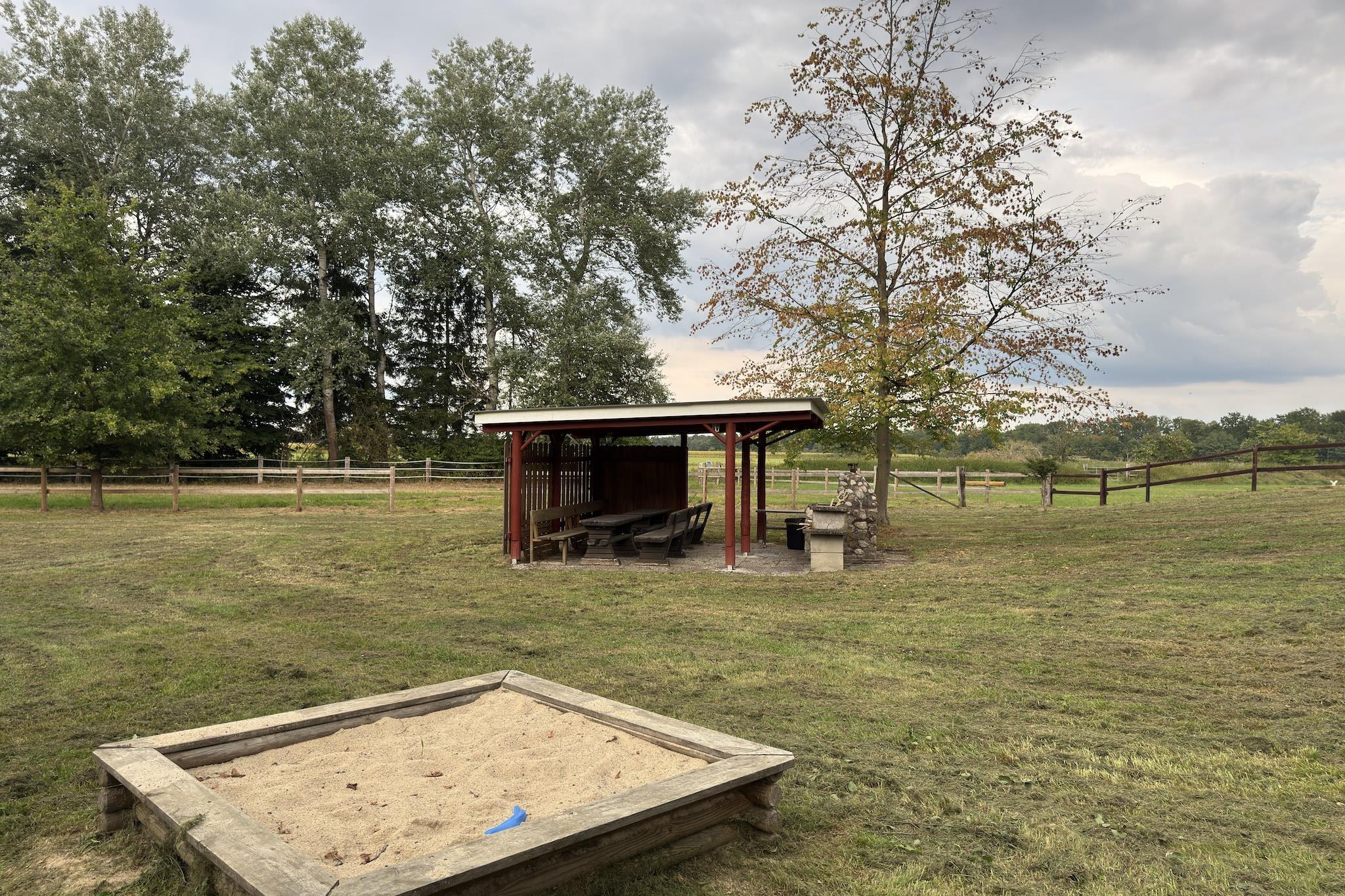 Denna timmerstuga i den idylliska byn Eschede erbjuder en bekväm vistelse omgiven av skog och natur. Vardagsrummet är utrustat med en platt-TV med satellitkanaler och en sittgrupp, medan pentryt har spis, mikrovågsugn, kylskåp, kaffebryggare, brödrost, vattenkokare och matbord – perfekt för avkopplande självhushåll. Ett sovrum med dubbelsäng och ett barnrum med våningssängar gör boendet perfekt för familjer. Badrummet har dusch, toalett och handfat, och värmen säkerställer komfort året runt. Utomhus hittar du en privat terrass och tillgång till den stora gemensamma trädgården med damm, lekplatsutrustning, sandlåda, grillplats, möbler och solstolar. Inbäddat i hjärtat av naturparken Südheide finns totalt 10 timmerstugor tillgängliga – en idealisk utgångspunkt för ridning, vandring eller cykling. Gästerna kan ta med egna hästar (14 gästplatser finns tillgängliga), och barn kan njuta av ponnyridning efter överenskommelse. Den stora ridanläggningen erbjuder lektioner för nybörjare och avancerade ryttare, samt ridning och vagnturer direkt på tomten. Den rymliga, lugna tomten, med lekplats och grillplats, är perfekt för både familjer och naturälskare. Shoppingmöjligheter finns i Eschede, och värda dagsutflykter inkluderar Celle (15 km), fågelparken Walsrode och Heidepark Soltau.