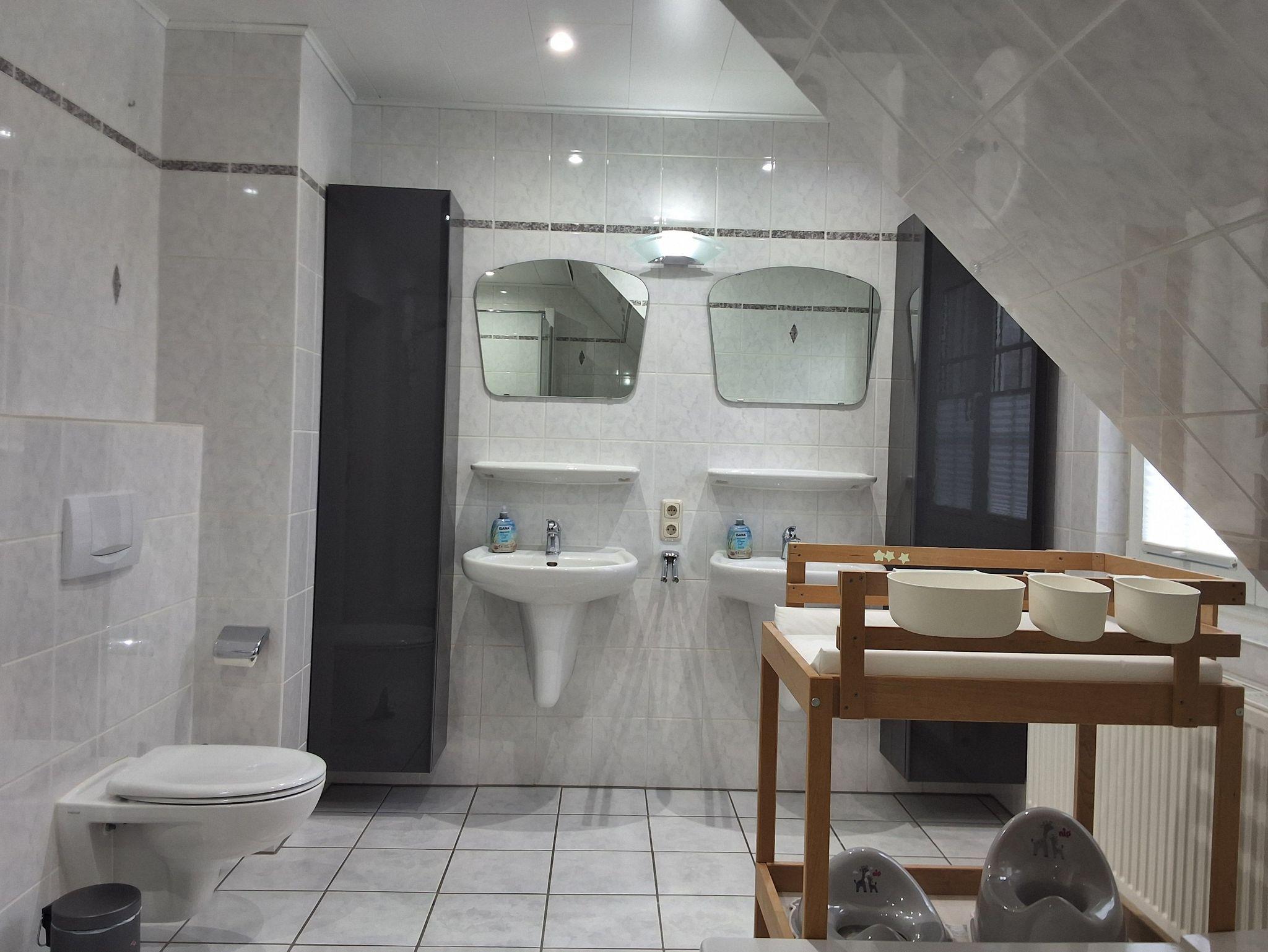 Vollbad mit Dusche und Badewanne, separates Gäste-WC