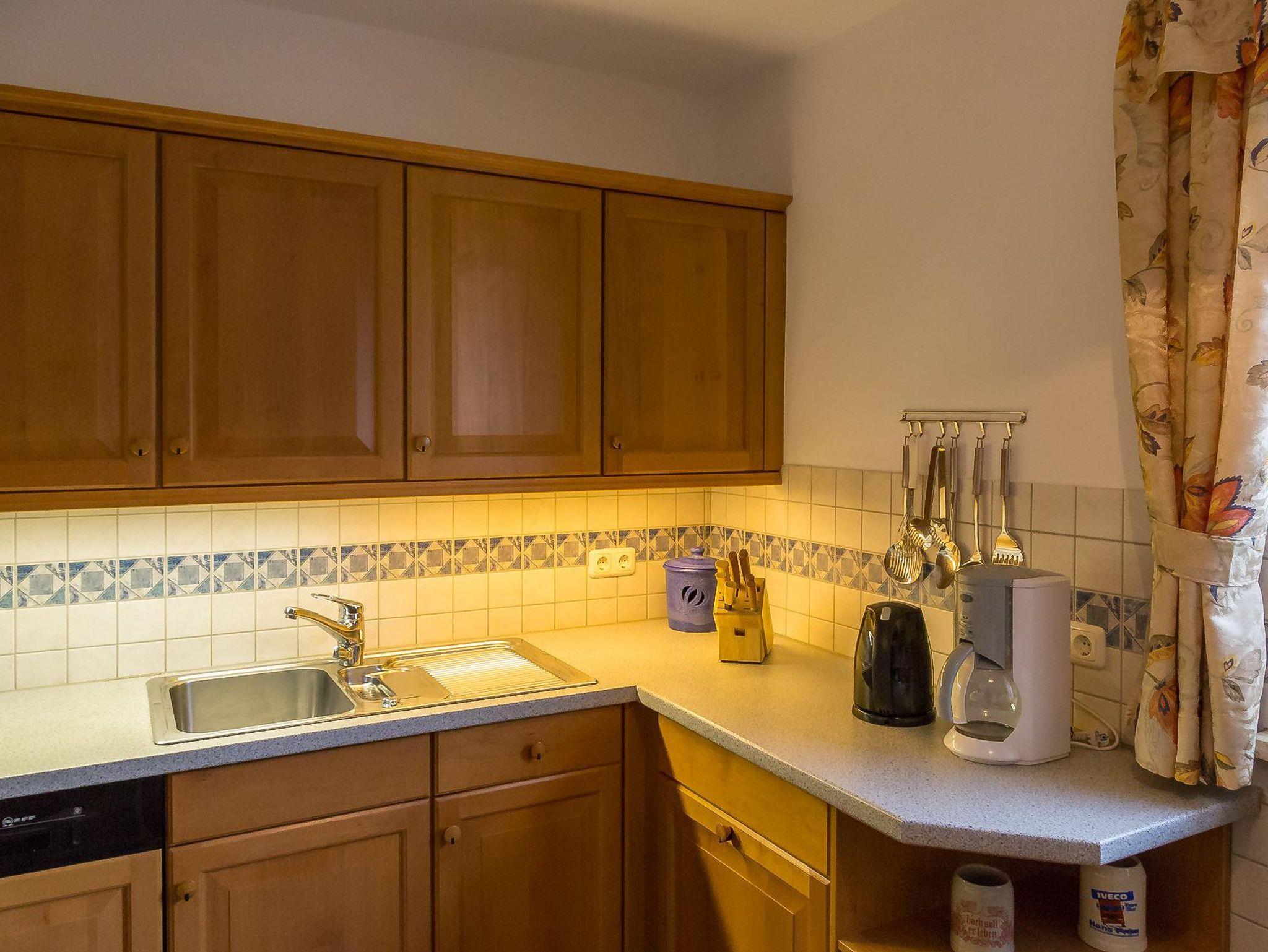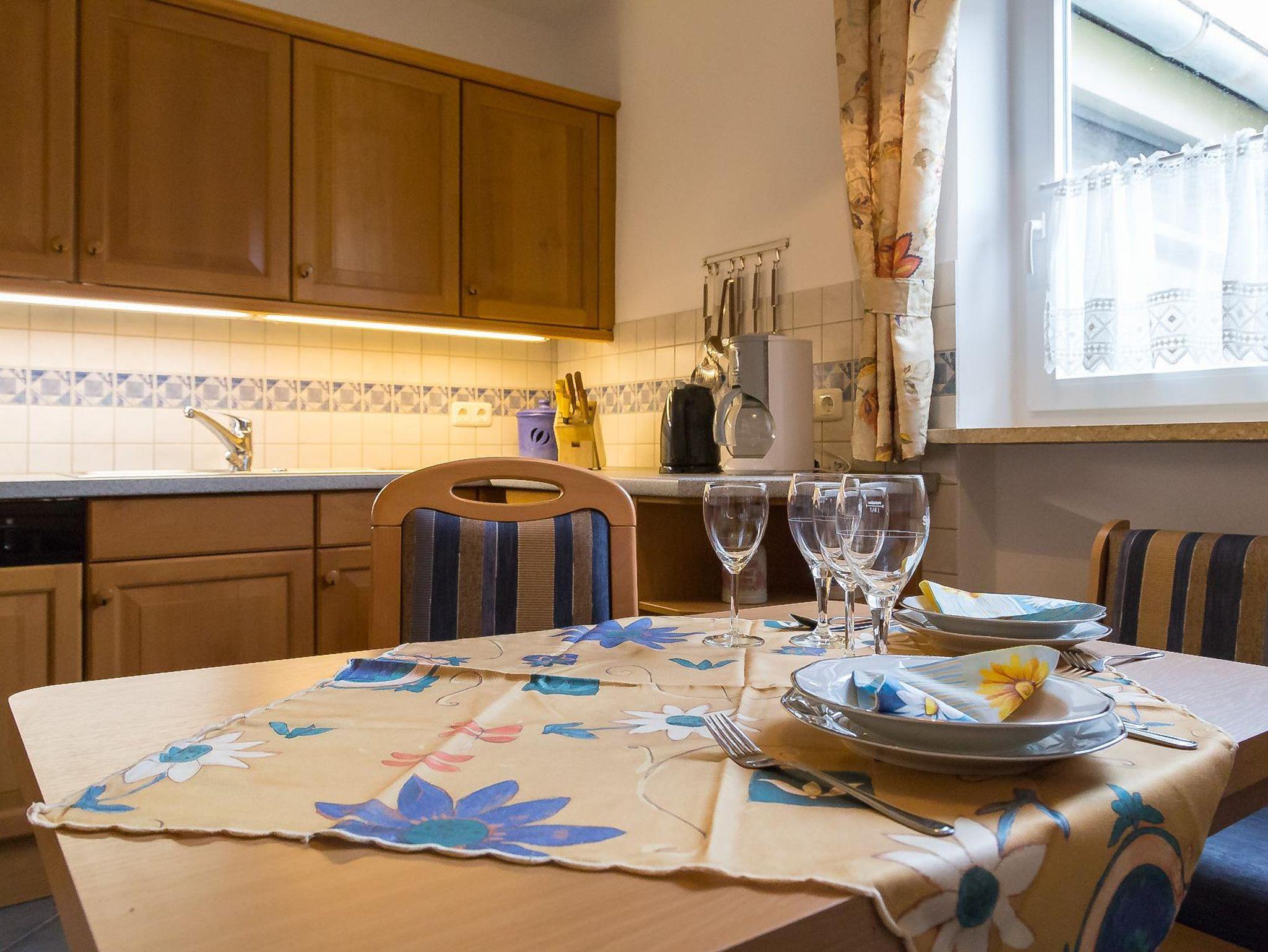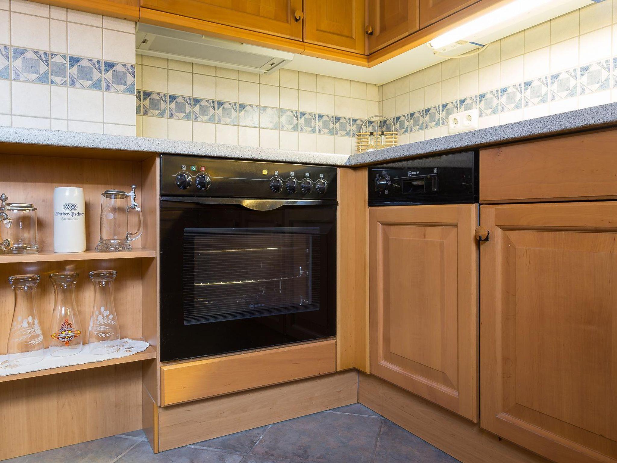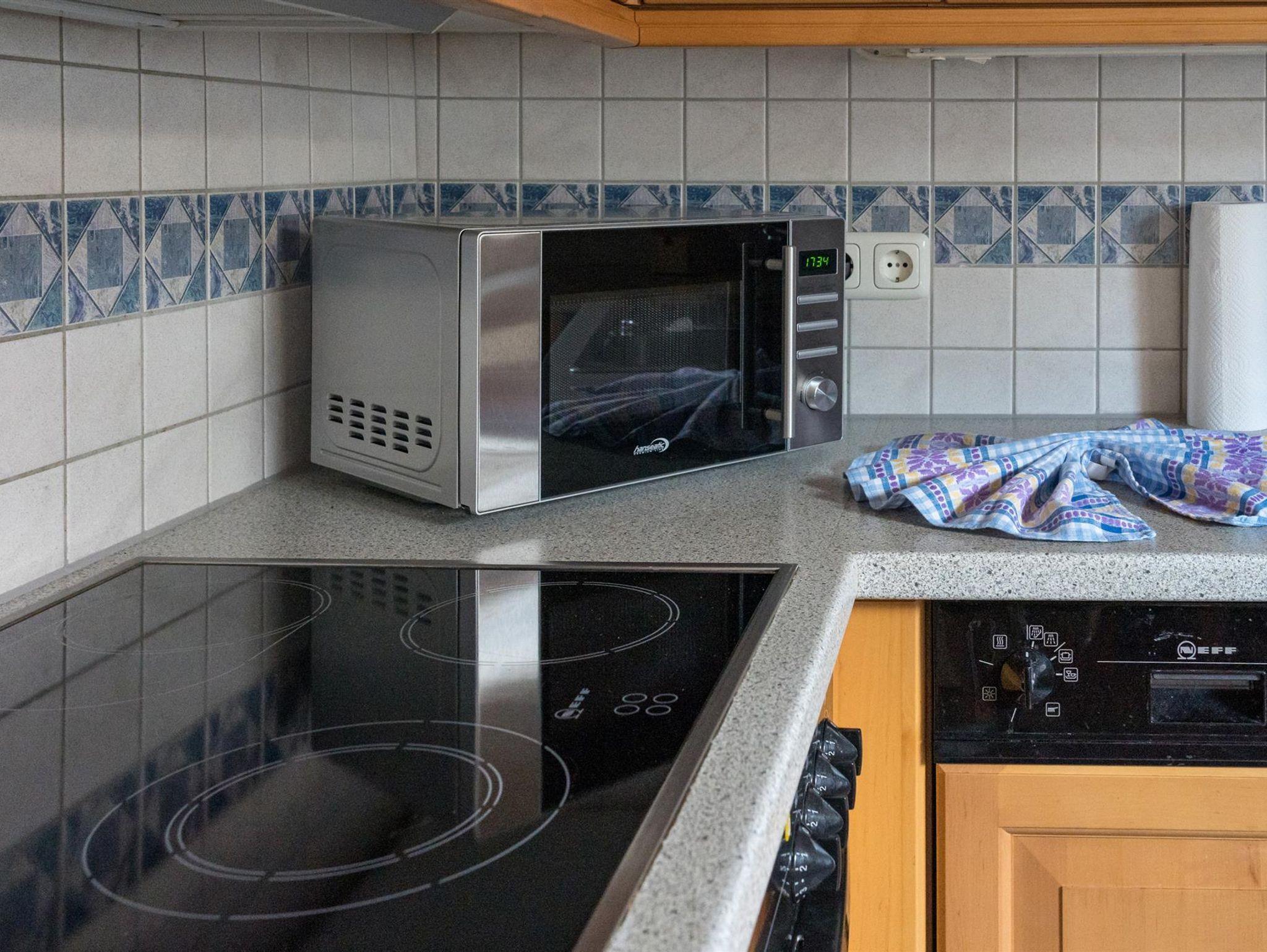 • 1 Küche mit Spülmaschine, Kühlschrank mit Gefrierfach, Backofen, Mikrowelle und gemütlicher Sitzecke