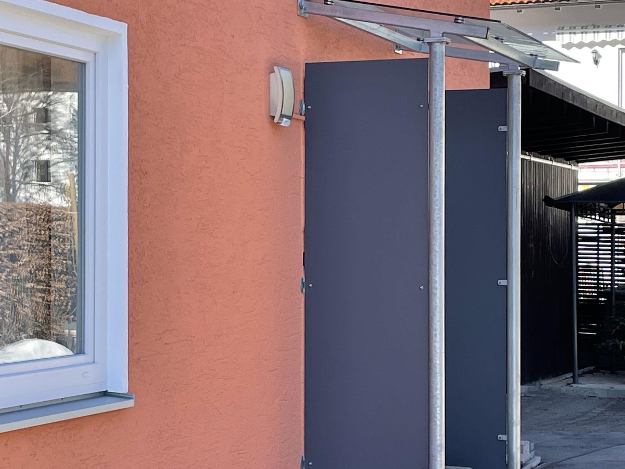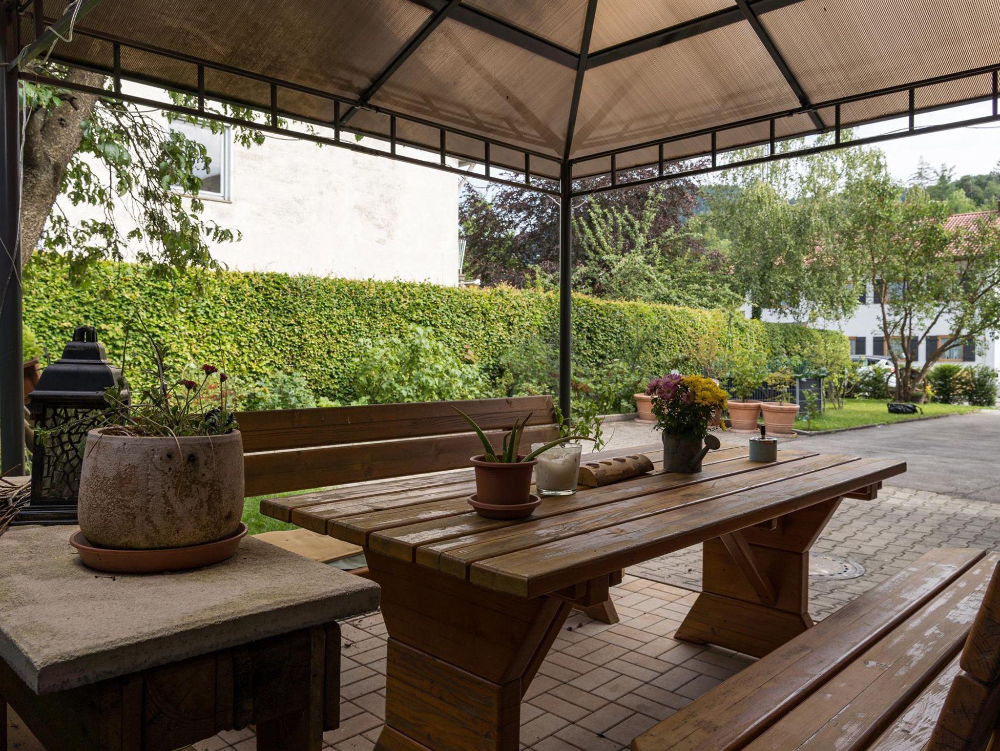 • 1 Terasse mit Gartenmöbel teilweise überdacht