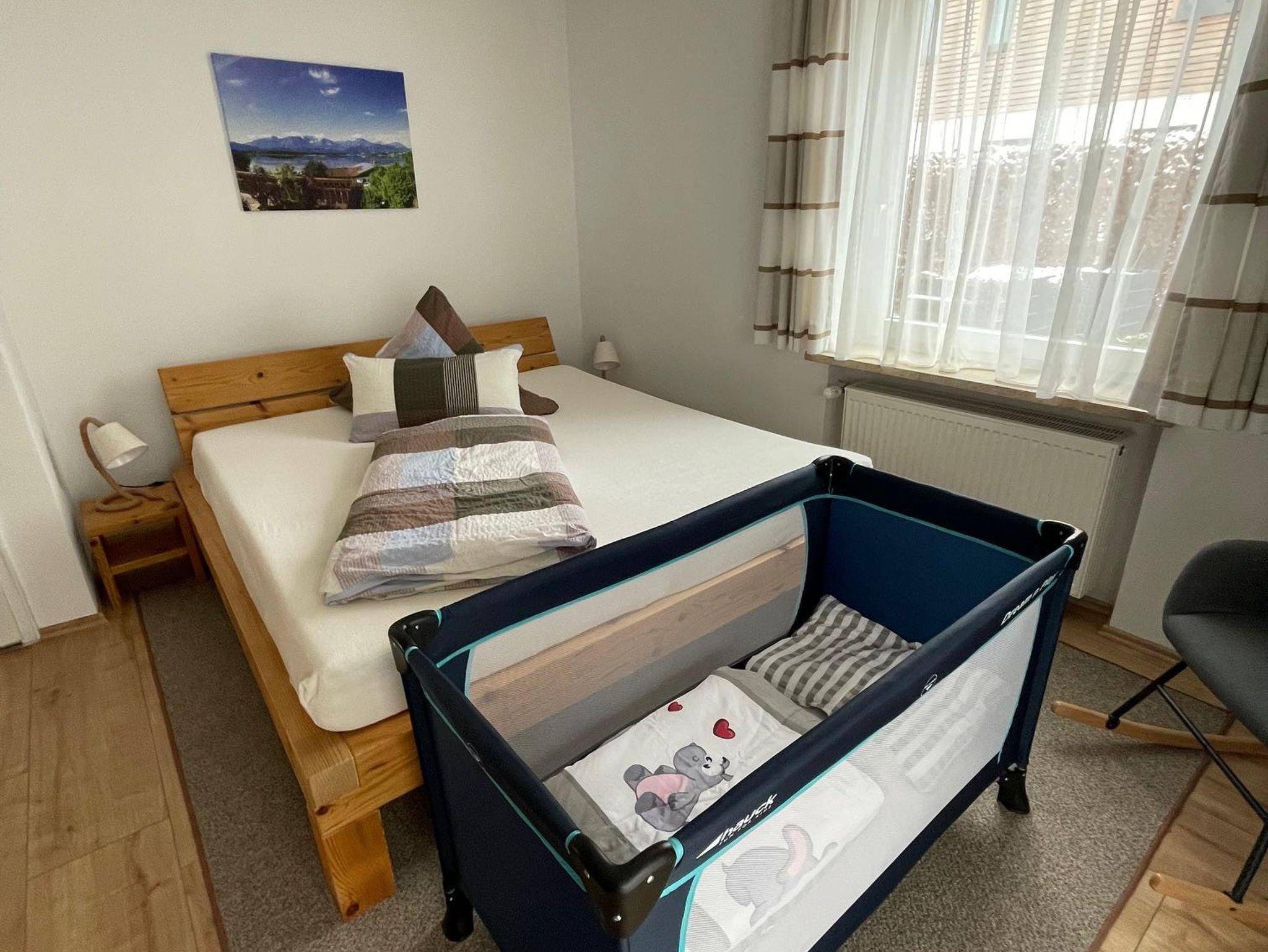 Die lebendige und traditionsreiche Altstadt ist über 700 Jahre alt und lädt zum Flanieren ein. Von unserer Ferienwohnung haben Sie einen wundervollen Ausblick auf die Bergkette mit den Hausbergen Tegelberg und Säuling.