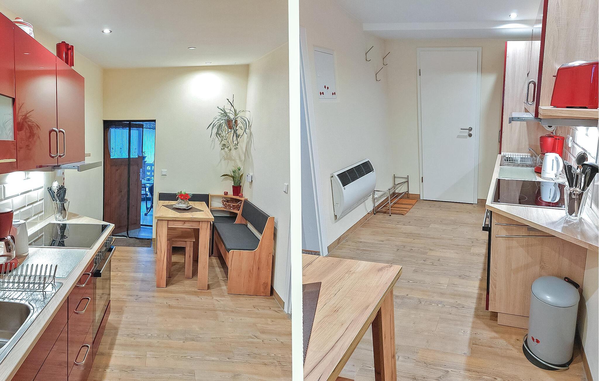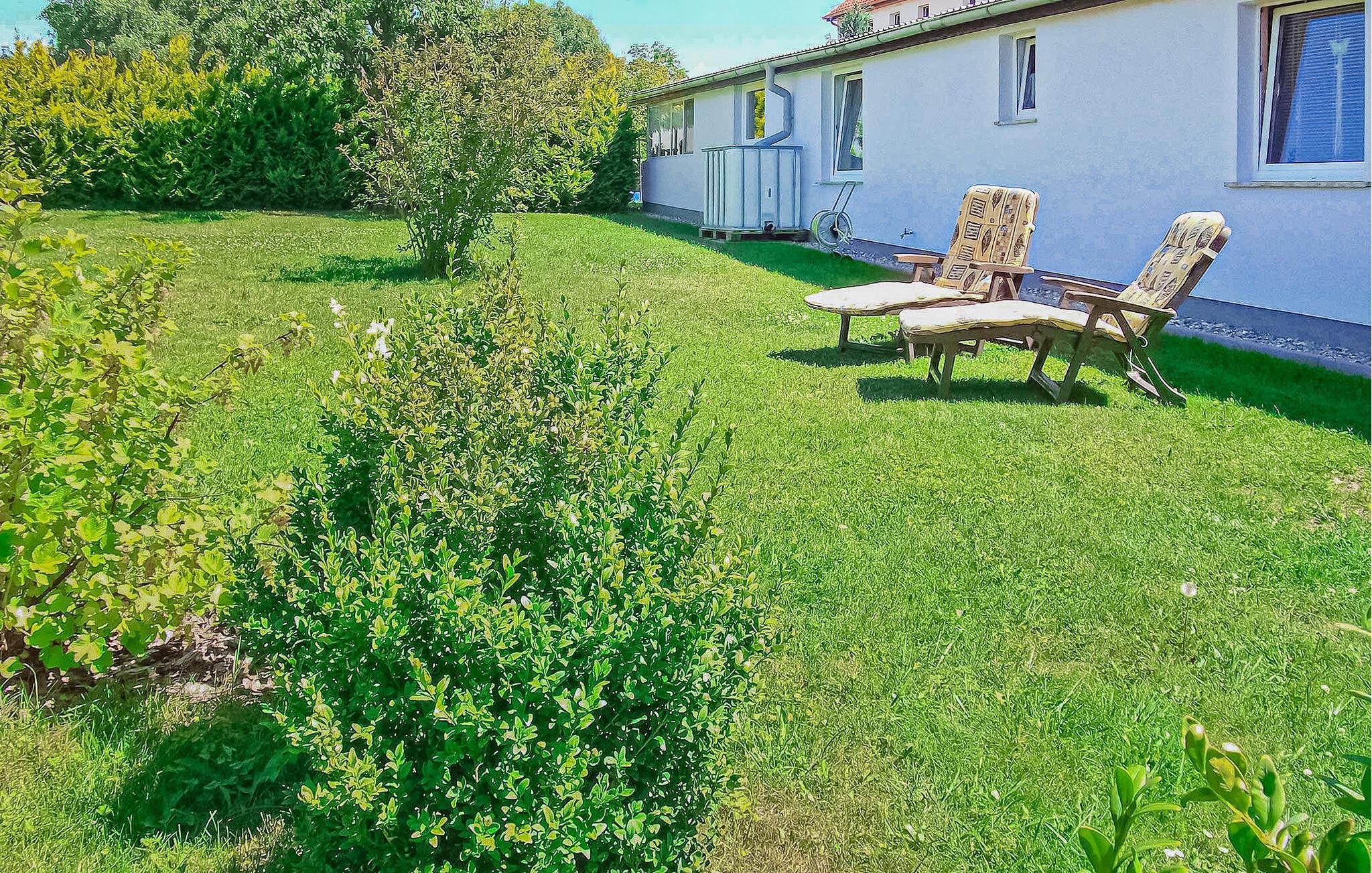 Semesterhuset för upp till 2 vuxna och 2 barn, som senast renoverades 2020, ligger i ett lugnt och lantligt läge, bara ca 1,5 km från sjön Dolgen, på ägarnas ca 2 500 m² stora bostadsfastighet. Det är ca 9 km till Kneipp-kurorten Feldberg med shoppingmöjligheter, båtturer, kurortsträdgårdar, restauranger och caféer. Semesterhuset, som är en del av en separat uthusbyggnad, är utrustat med ett vardagsrum (bäddsoffa - extrasäng, platt-TV, radio), ett sovrum (dubbelsäng), ett kök renoverat 2022 (matplats, elspis med ugn, kyl/frys, diverse små köksmaskiner), ett badrum (även renoverat 2022, dusch, toalett, elektrisk handdukstork) och elektriska element. Det finns också en stor möblerad och täckt terrass, grill, solstolar i trädgården, cykelförråd, parkeringsplats, cyklar för uthyrning (mot en liten avgift) och gratis WiFi.det totala priset inkluderar slutstädning, vatten- och energiförbrukning och sängkläder. Vänligen ta med egna handdukar. Husdjur är inte tillåtna i denna fastighet.