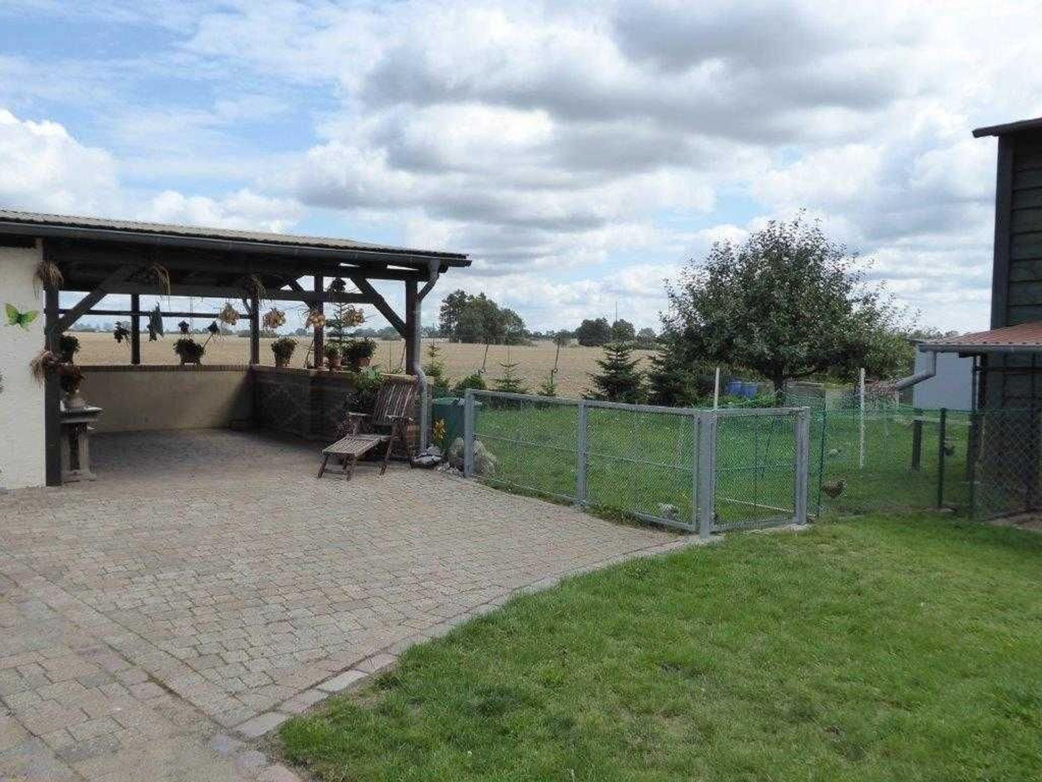 Das große Grundstück mit Nebengelass, Garten und Tieren (Hühner, Hund und Katze) liegt direkt am Ortsrand und ist umgeben von Feldern. Im Erdgeschoss des Einfamilienhauses befinden sich zwei Ferienwohnungen und im Dachgeschoss wohnt die Vermieterin.