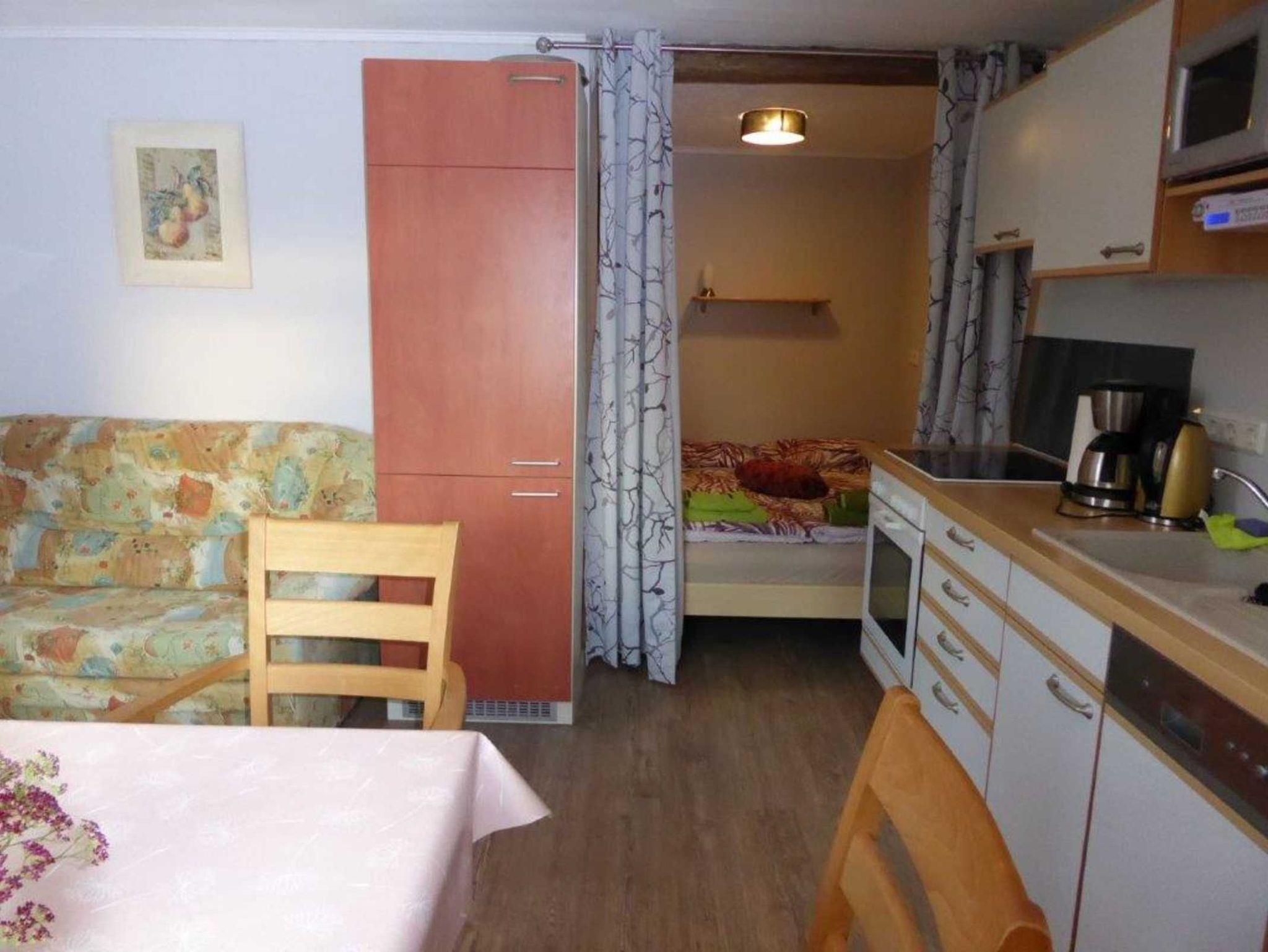 Die FeWo „Garten“ besteht aus einer Wohnküche mit Schlafnische (Futonbett: 1,40m x 2,00m x 0,40 m; Einstieg nur von vorne möglich) und das Bad. Das Bad ist mit Dusche, WC und Fön ausgestattet. Die Küche ist modern ausgestattet mit E-Herd, Kühlschrank mit Gefrierfach, Geschirrspüler, Mikrowelle, Kaffeemaschine, Wasserkocher, Eierkocher und Toaster. Die Couch kann als Schlafsofa (1,20m x 2,00 m) umfunktioniert werden, falls getrennt geschlafen werden möchte. Dafür wird ein einmaliger Aufschlag von 10 € fällig und bitte teilen Sie das bei der Buchung mit.