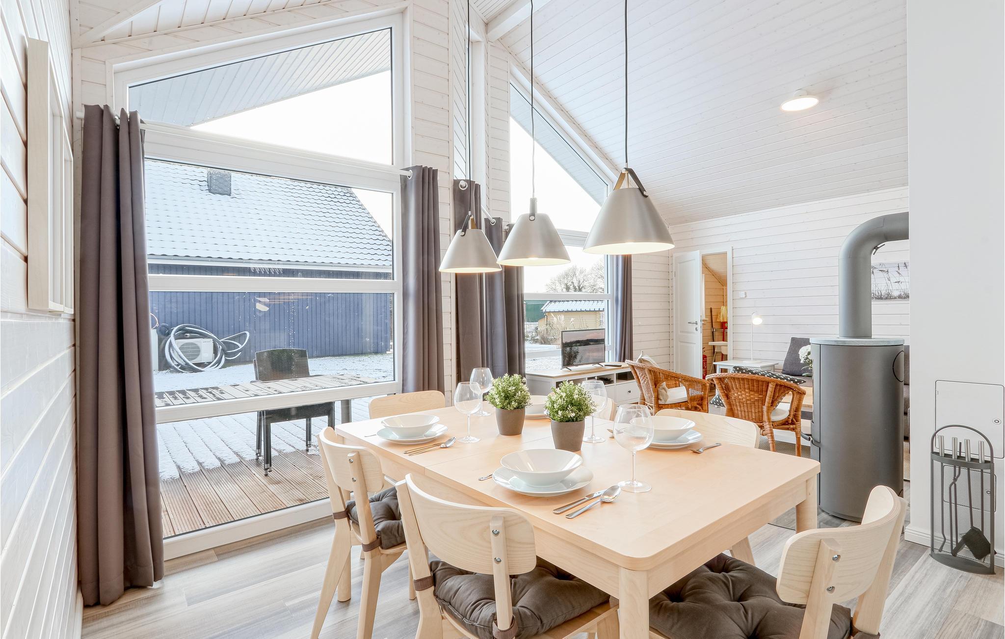 Tillbringa en avkopplande semester i detta inbjudande och moderna semesterhus i trä i semesterbyn Wadersee. Koppla av i bastun eller mys vid den vedeldade kaminen i vardagsrummet när det är lite kyligt ute, den enkla och moderna inredningen i semesterhuset gör att du kan koncentrera dig på det väsentliga: en bekymmersfri tid med dina nära och kära! Huset har 3 sovrum. Det finns en dubbelsäng i det första sovrummet. Det andra sovrummet har två enkelsängar, som också kan skjutas ihop till en dubbelsäng. I det tredje sovrummet finns en utdragbar säng, som endast bör användas av en person för längre vistelser; för barn och korta pauser kan två personer också använda den. Bäddsoffan i vardagsrummet erbjuder ytterligare två sovplatser.