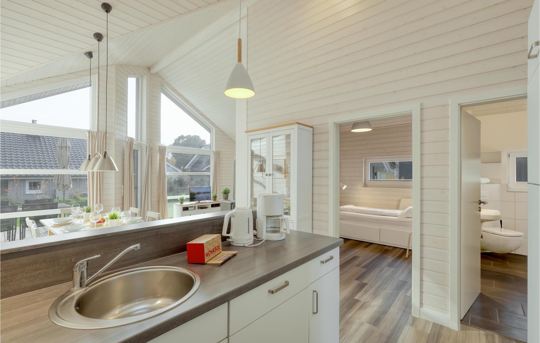 Det moderna semesterhuset Seezauber i trä imponerar med sin skandinaviska stil och erbjuder tillräckligt med utrymme för 6 personer. Här kan du njuta av en behaglig känsla av rymd och ljusa rum. De maritima möblerna i ljusa färger bidrar till den mysiga atmosfären.