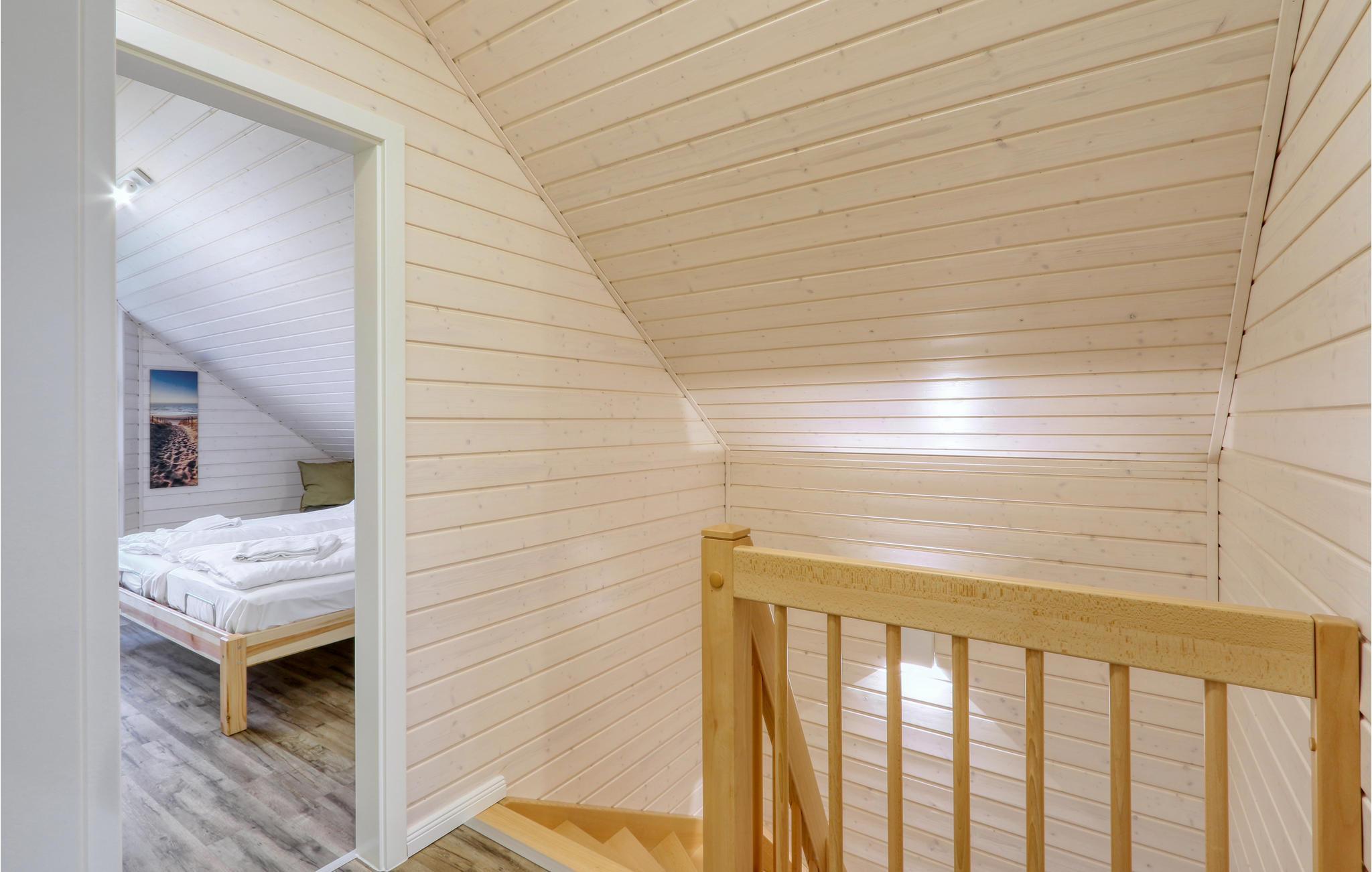 Detta rymliga trähus i skandinavisk stil erbjuder tillräckligt med utrymme för 8 vuxna och 1 barn på två våningar. Ni kommer att känna er som hemma här tack vare den rymliga inredningen och planlösningen på två våningar. De maritima möblerna i ljusa färger bidrar till den mysiga atmosfären.