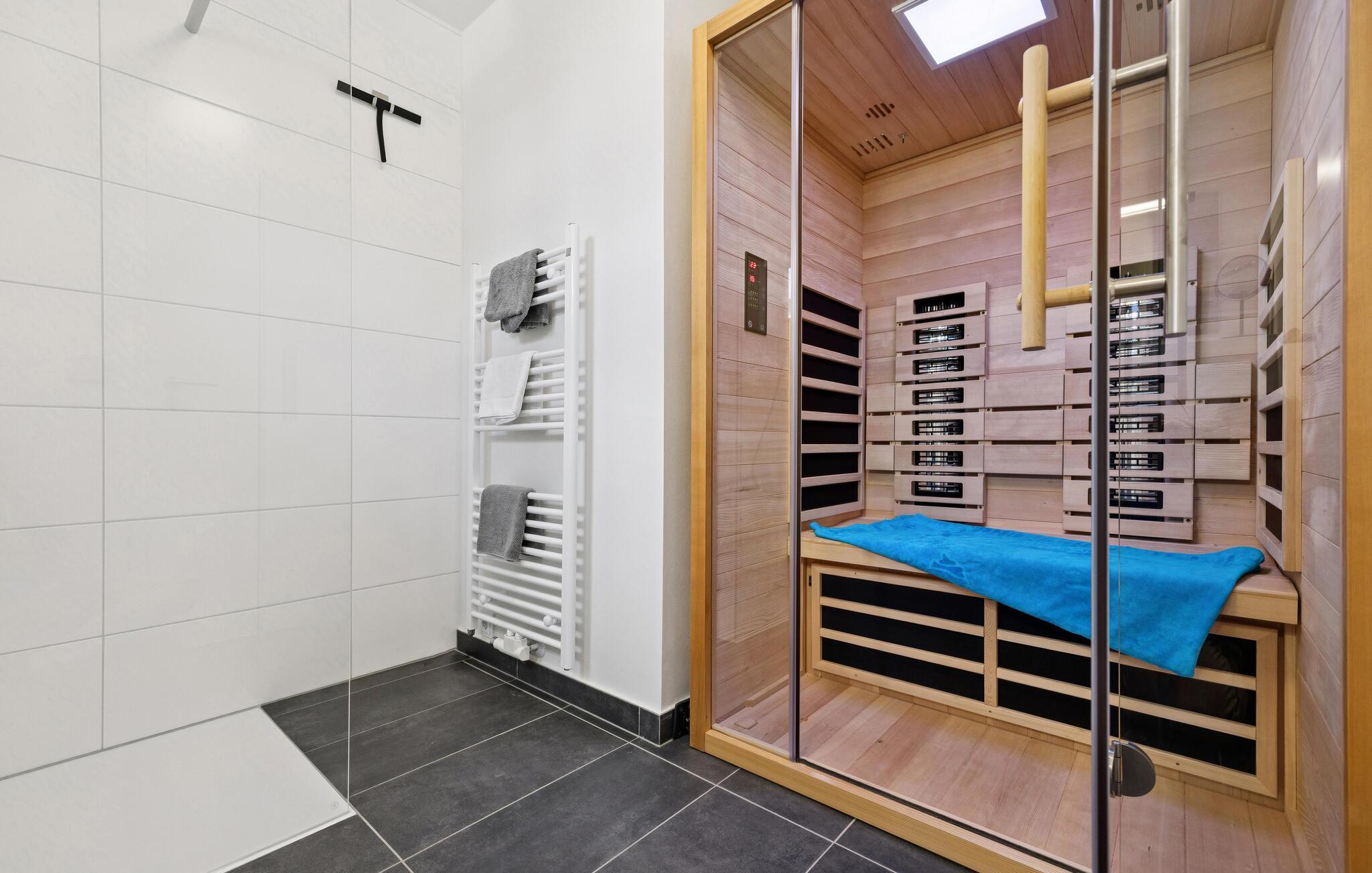 Boendet har två sovrum, alla kärleksfullt inredda. Ett sovrum har en mysig dubbelsäng, medan det andra är möblerat med två enkelsängar. Du hittar också en Smart TV i båda rummen så att du kan njuta av dina favoritprogram. I wellness-badrummet finns en dusch på golvnivå och en infraröd bastu. En plats att koppla av och varva ner efter en händelserik dag.