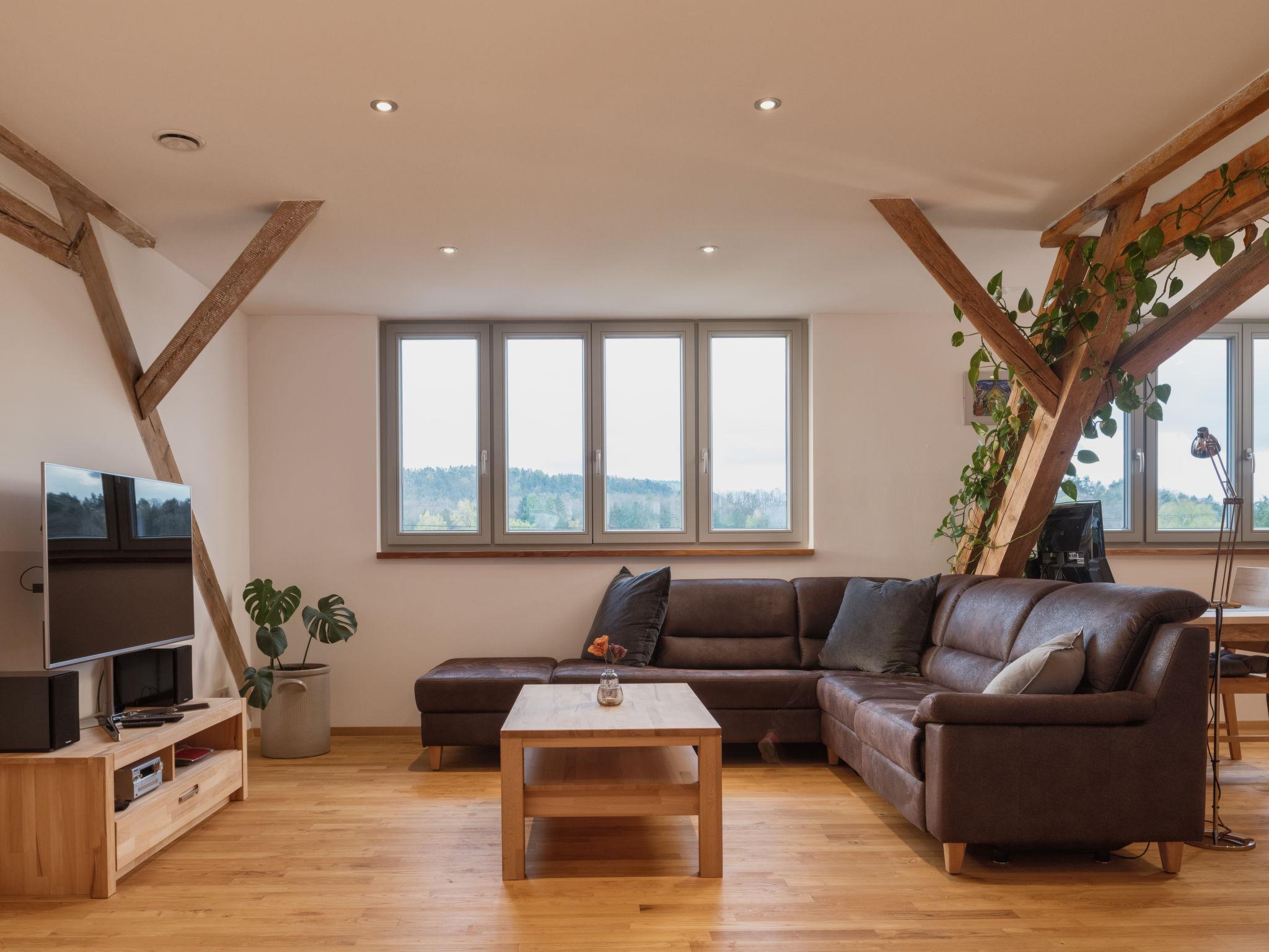 3-room Loft 130 m2 on 2nd floor. Bright, partly with sloping ceilings, fully renovated in 2018, comfortable and beautiful furnishings: open large living/dining room with dining table and cable TV (flat screen). Exit to the balcony. 1 room with 1 double bed (180 cm, length 220 cm). 1 room with 1 french bed (160 cm, length 200 cm). Open kitchen (oven, dishwasher, 4 induction hot plates, toaster, kettle, electric coffee machine). Sep. WC, bath/shower/WC. Underfloor heating. Solar power. Balcony. Balcony furniture. Facilities: Internet (WiFi, free). Parking (roofed, 1 car). Please note: non-smokers only. Smoke alarm. Bookings accepted for holiday purposes only. DE6696.100.3