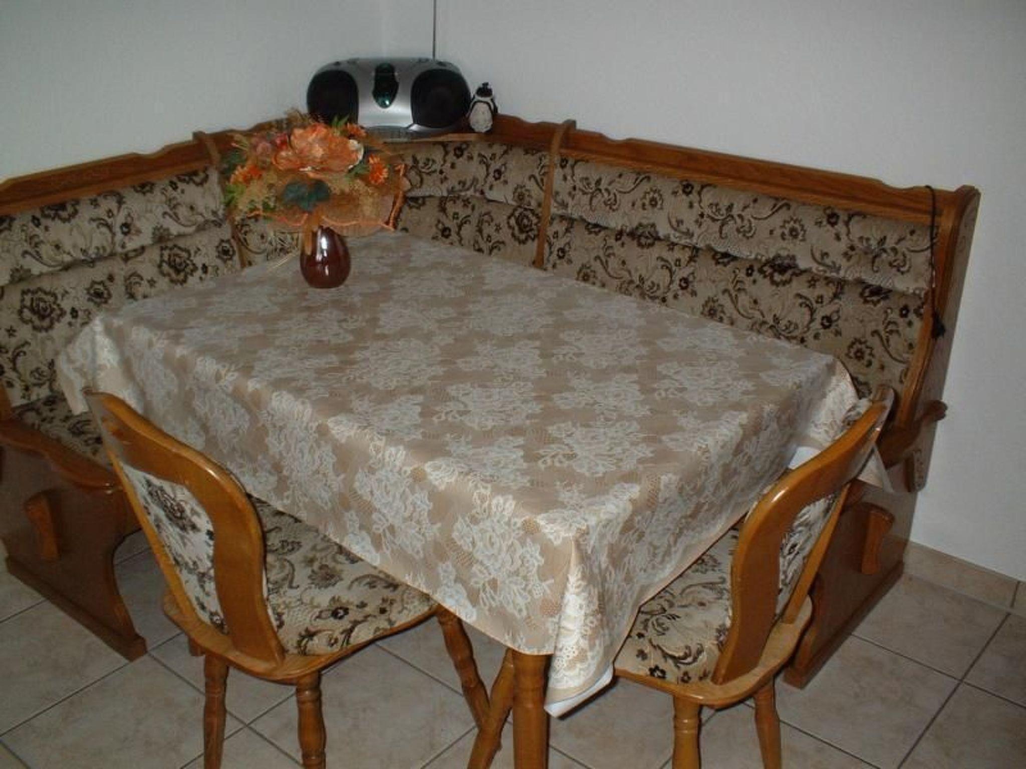 The interior is furnished in a cosy country house style. Two large bedrooms with comfortable double beds, extensive wardrobe space and various seating options ensure a restful night's sleep. A spacious bathroom with shower, WC, bathtub and two washbasins as well as underfloor heating leaves nothing to be desired. The living area invites you to linger with a large upholstered corner, a dining table and chairs, TV and radio/CD. The fully equipped kitchen with upholstered seating area and the hallway with wardrobe and shoe cupboard round off the offer.